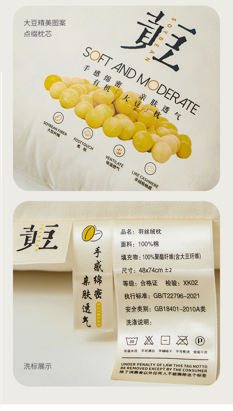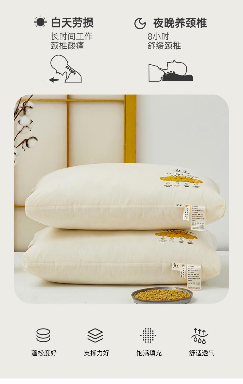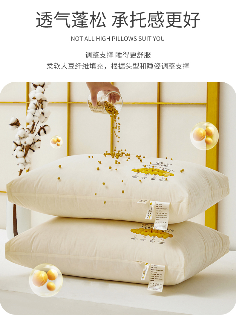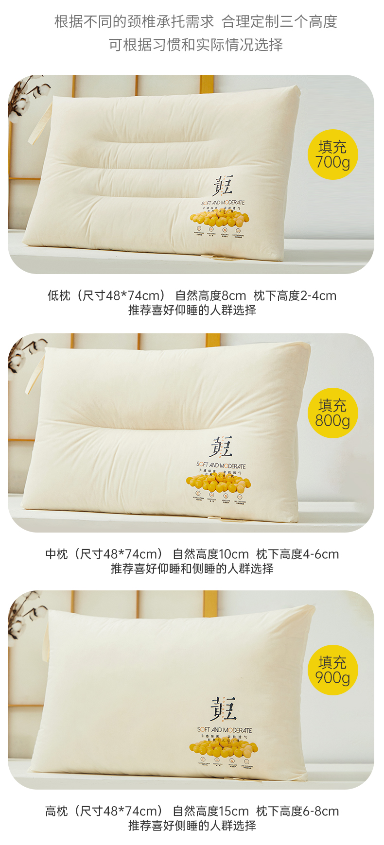 【A类全棉大豆纤维黄豆枕-高中低款】