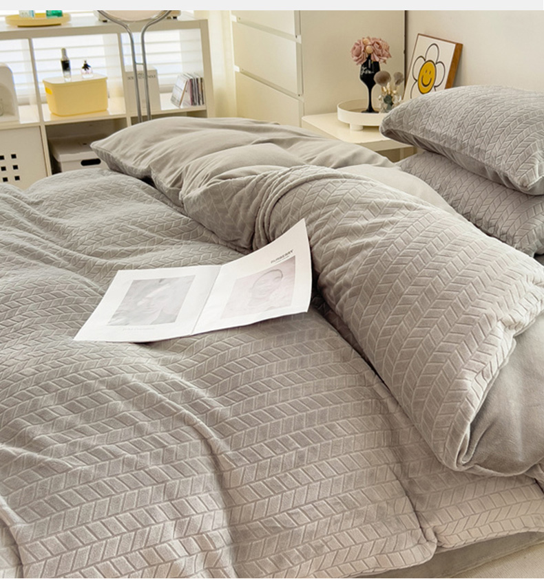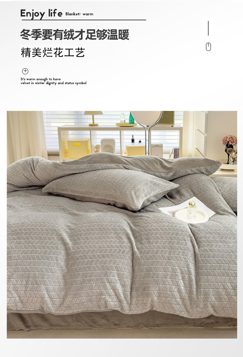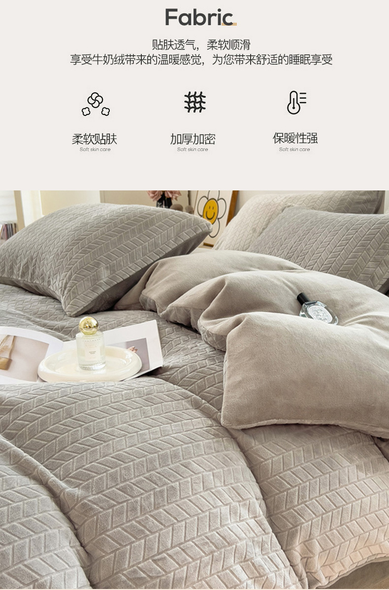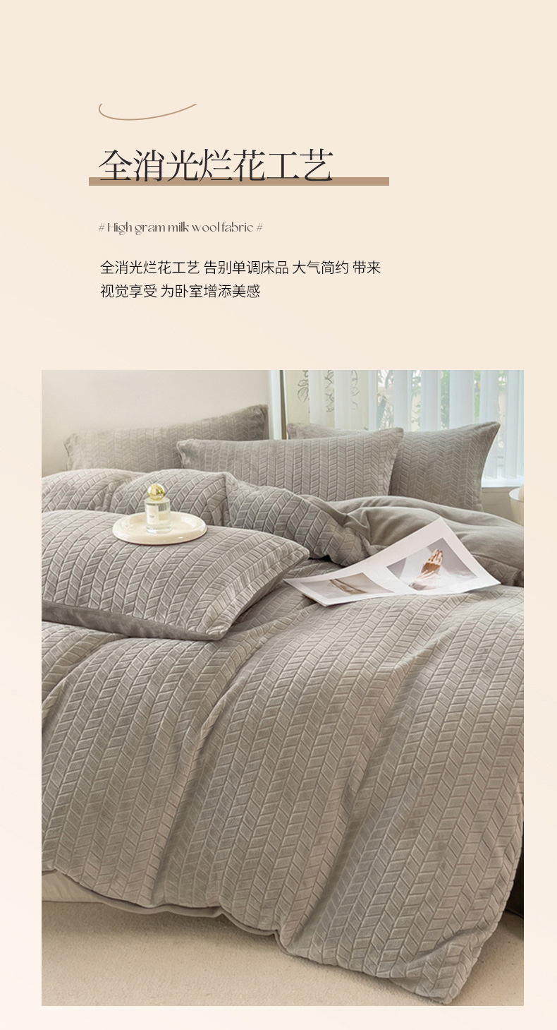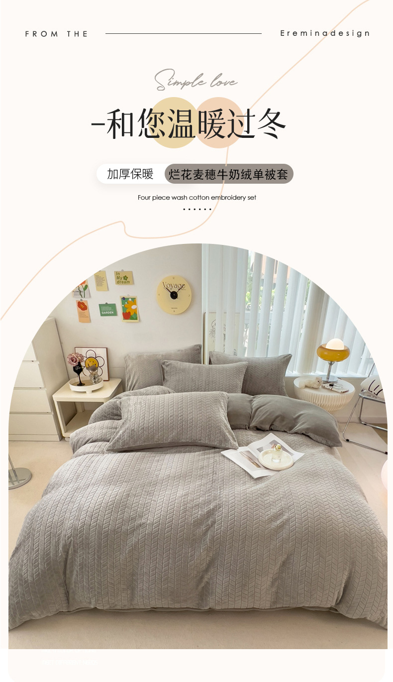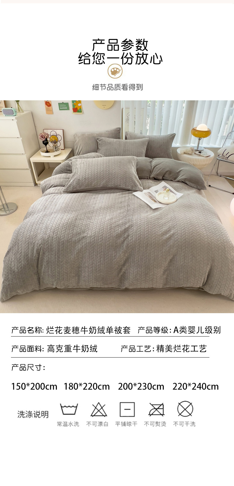 商品名称:全季家居 2023新款小清新A类高克重加厚印花牛奶绒被套单件 浅灰