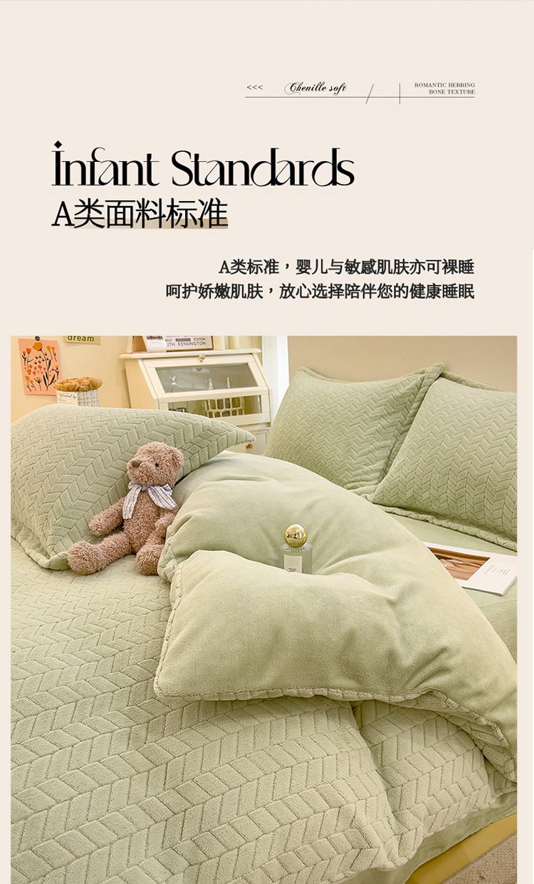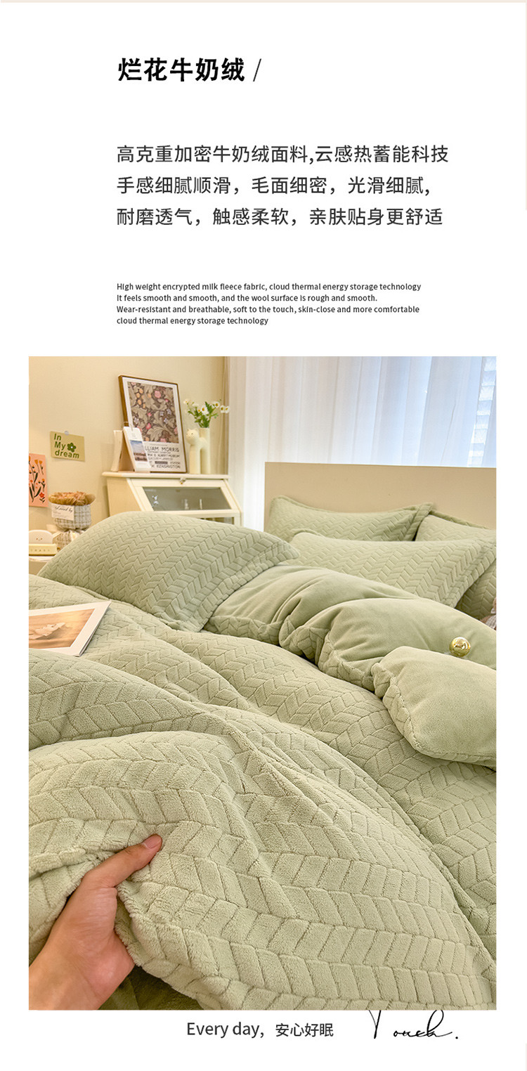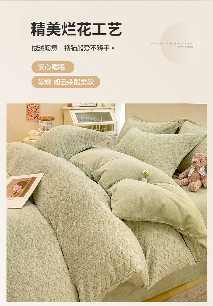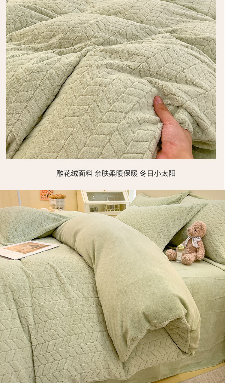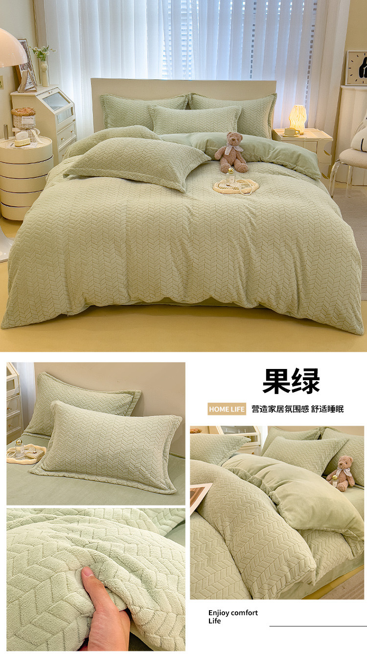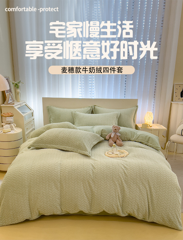 全季 2023新款麦穗纹高克重牛奶绒色织提花四件套 果绿