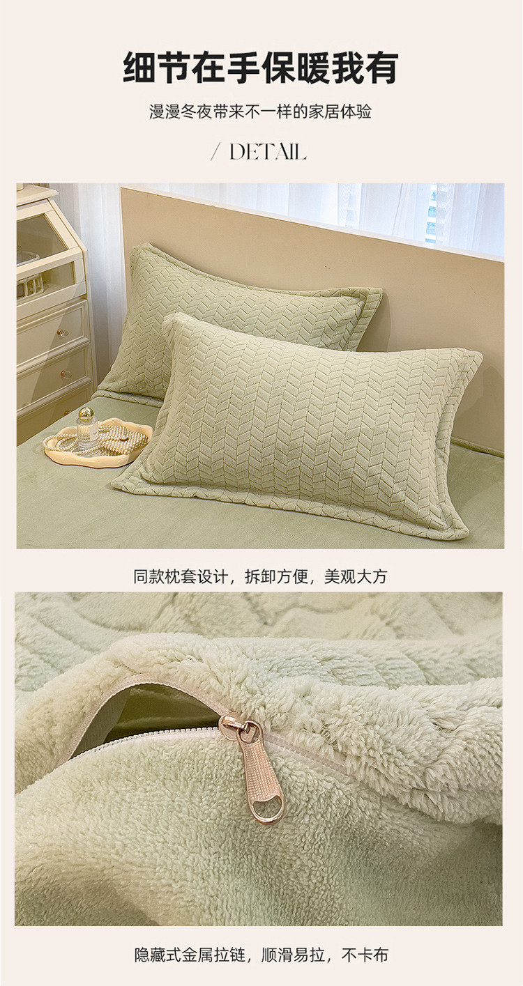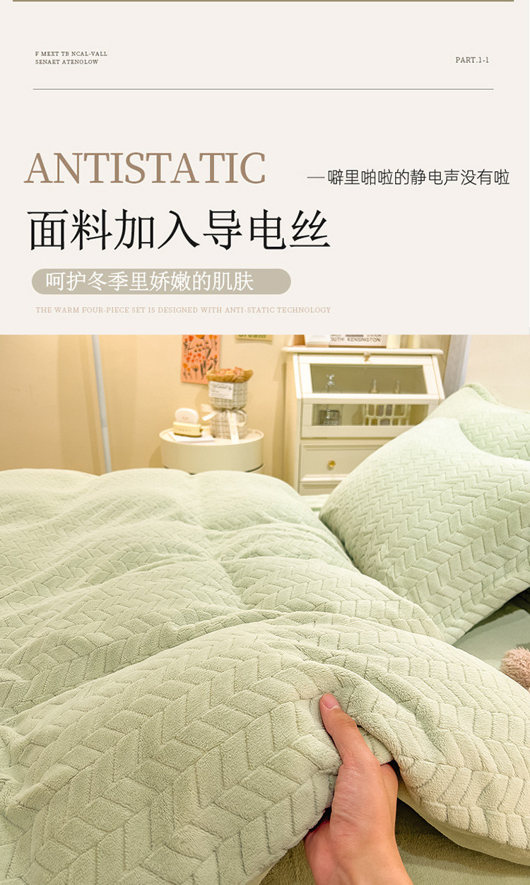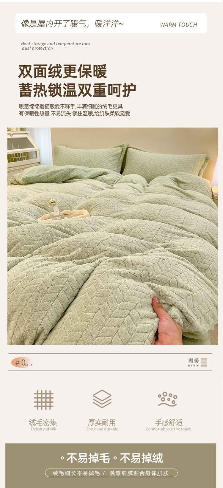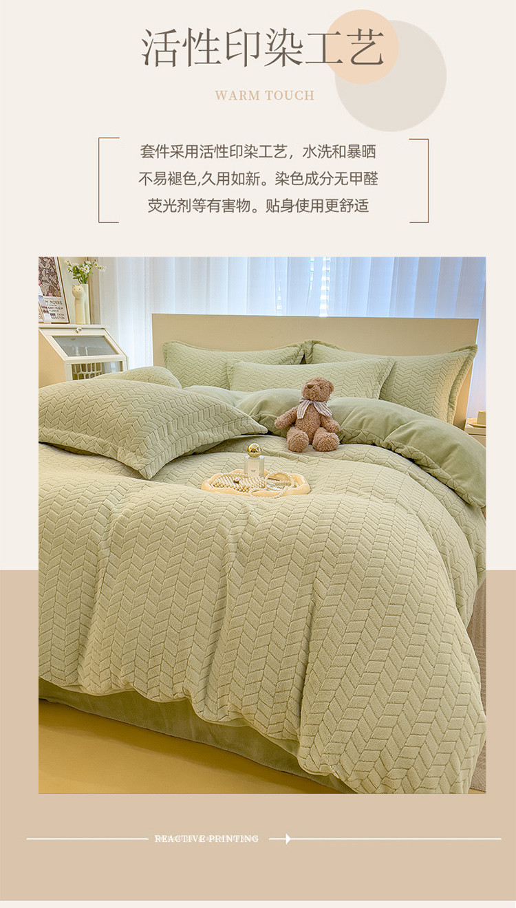 商品名称:全季 2023新款麦穗纹高克重牛奶绒色织提花四件套 果绿