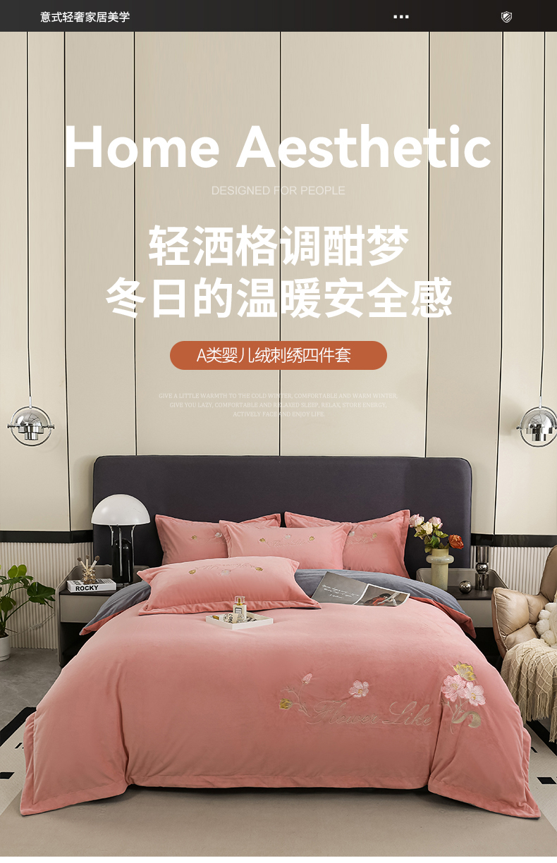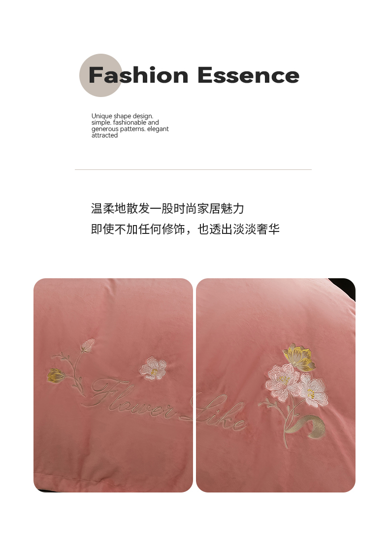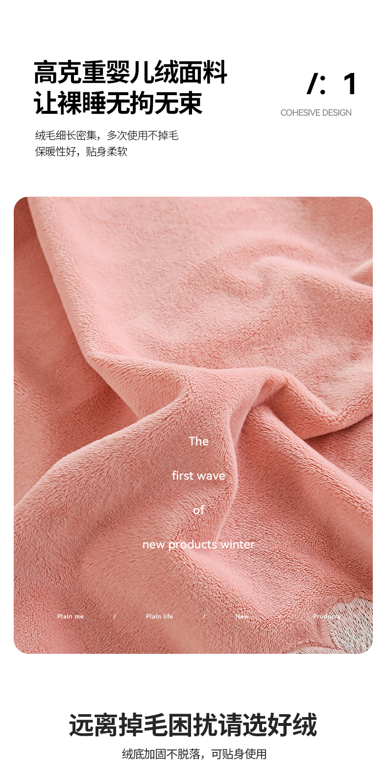 商品名称:银石 2023新款高克重婴儿绒宝宝绒轻奢绣花四件套 倾城 倾城(粉)