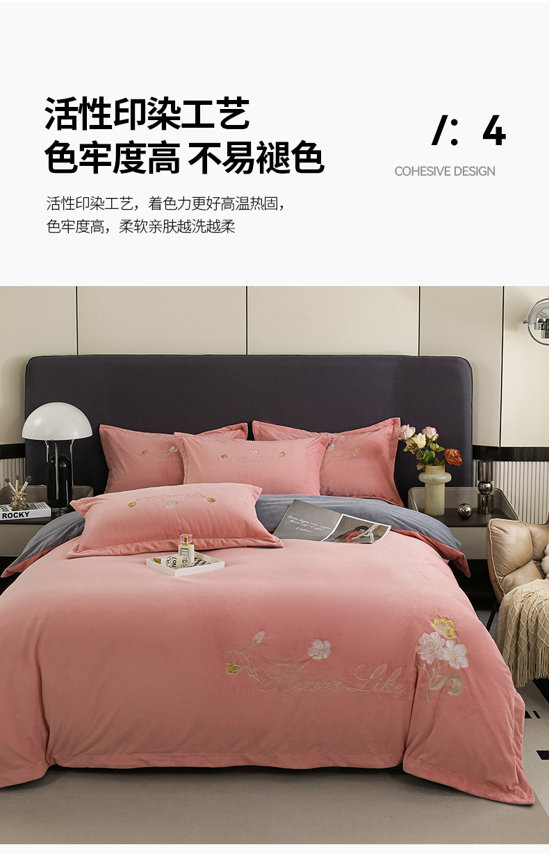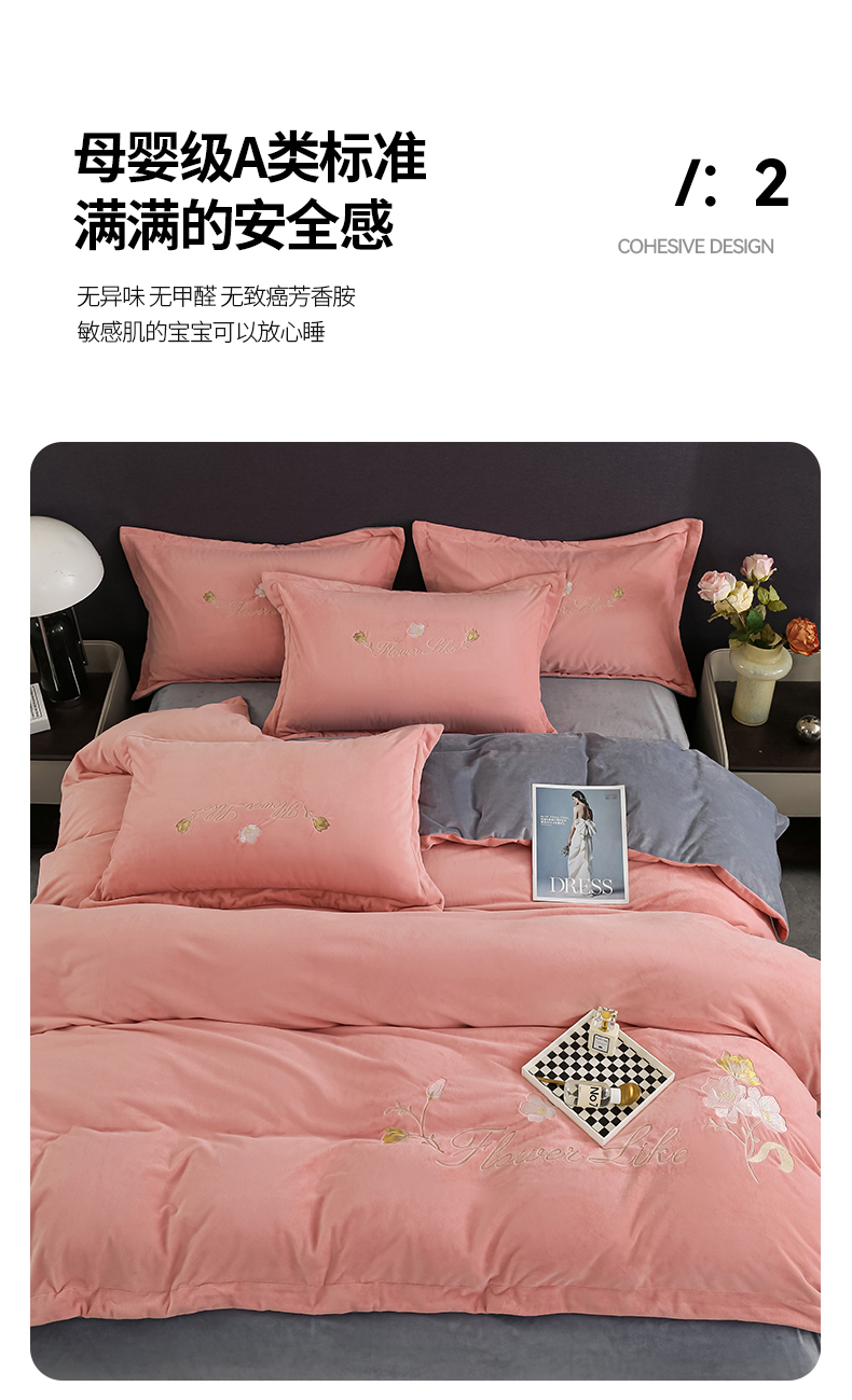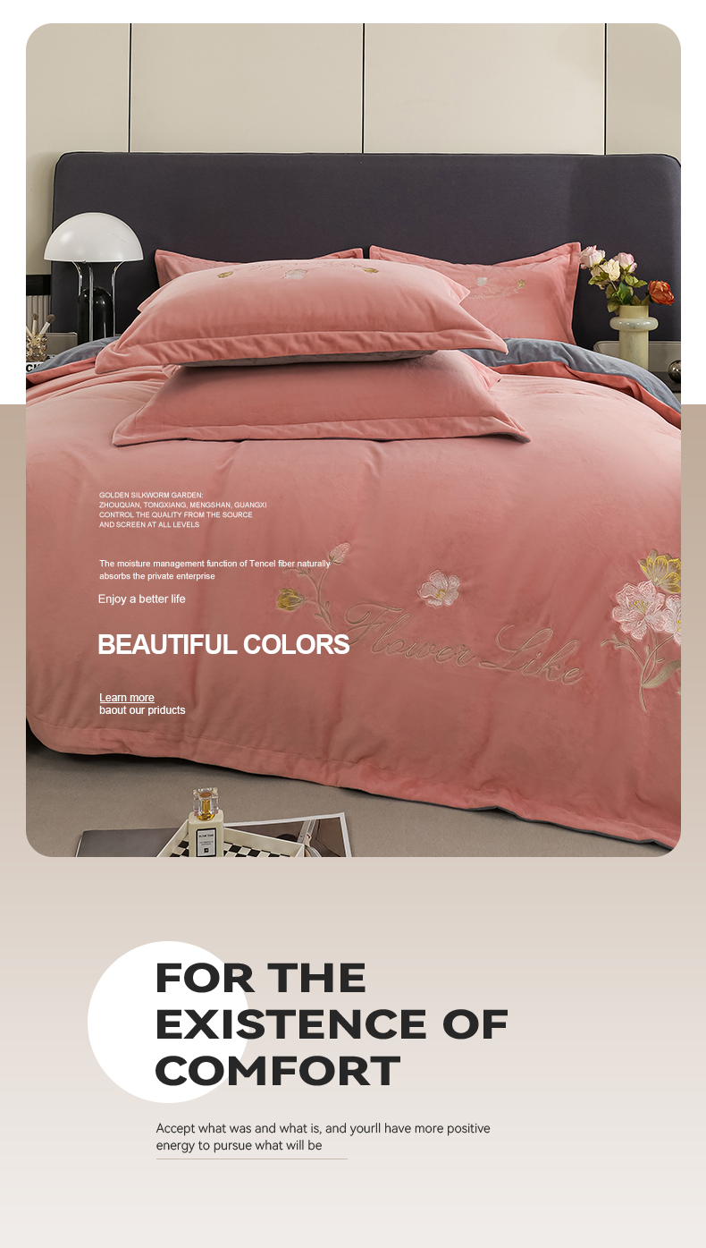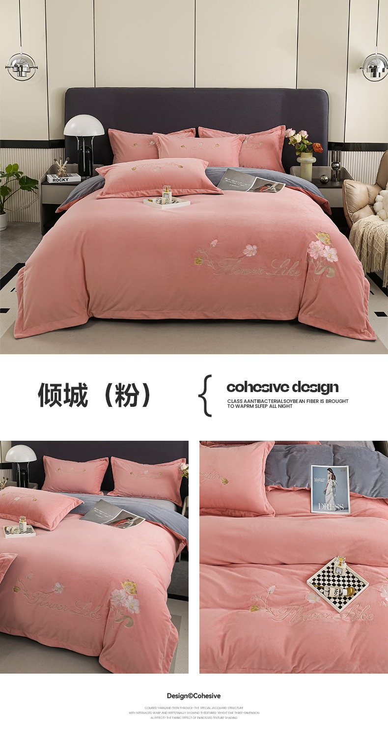 银石 2023新款高克重婴儿绒宝宝绒轻奢绣花四件套 倾城 倾城(粉)