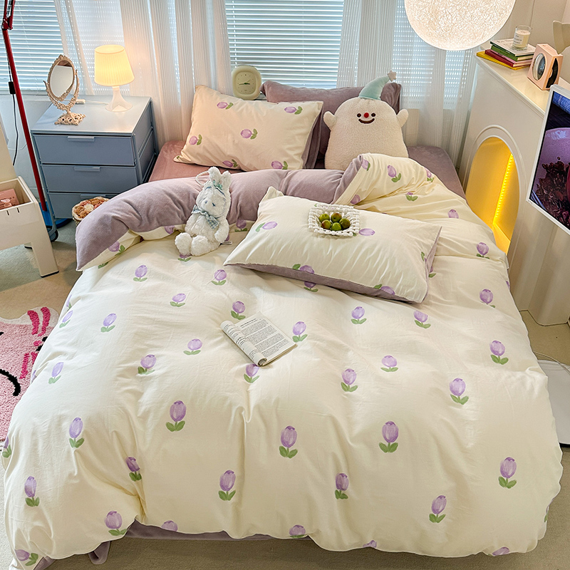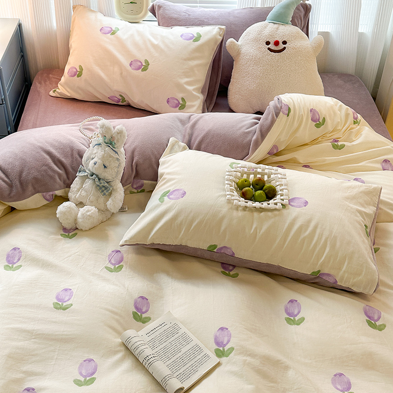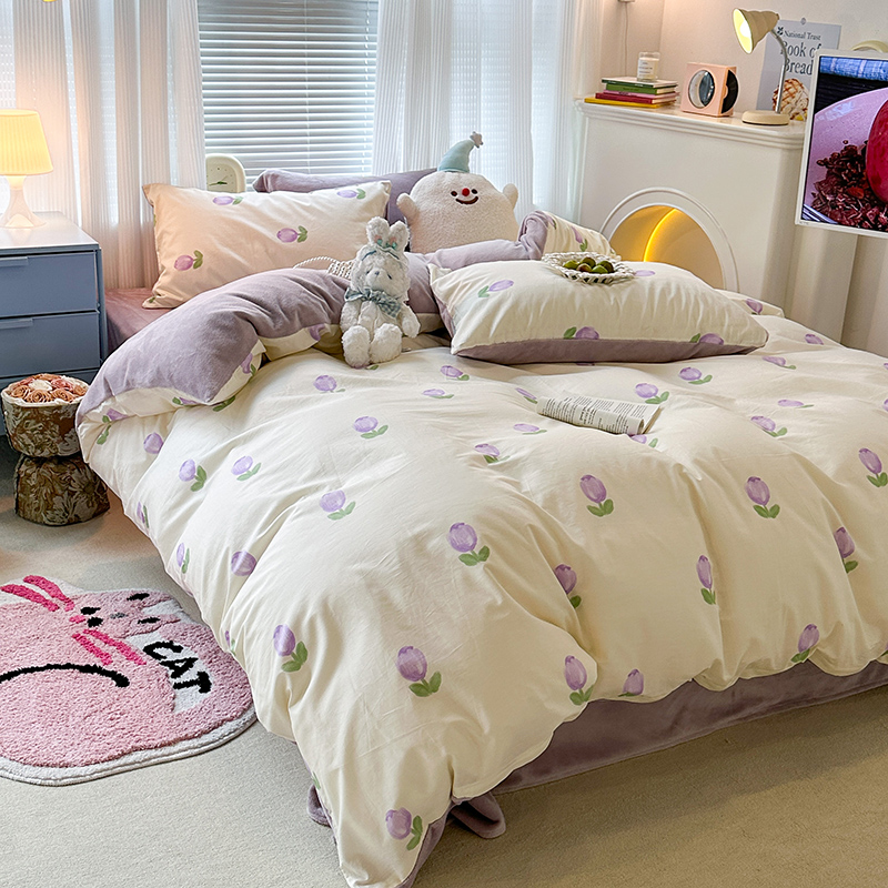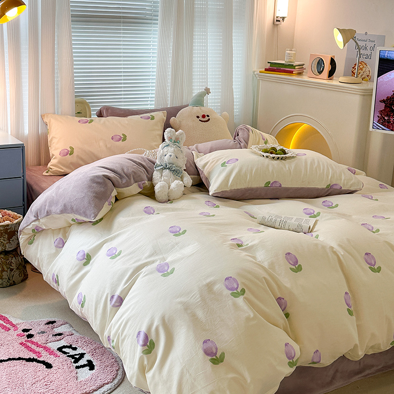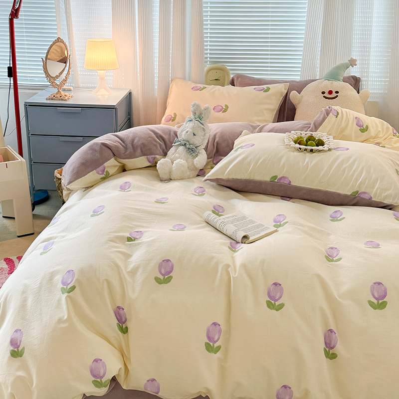 昔可家纺 2023新款y2k卡通印花系列棉加绒四件套 紫色郁金香