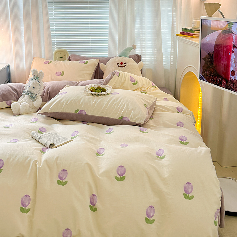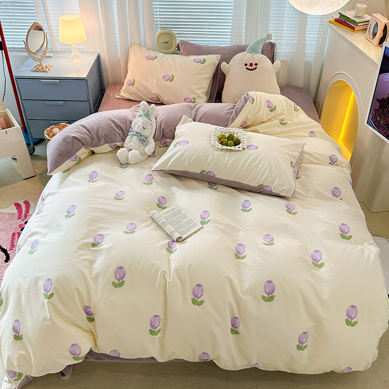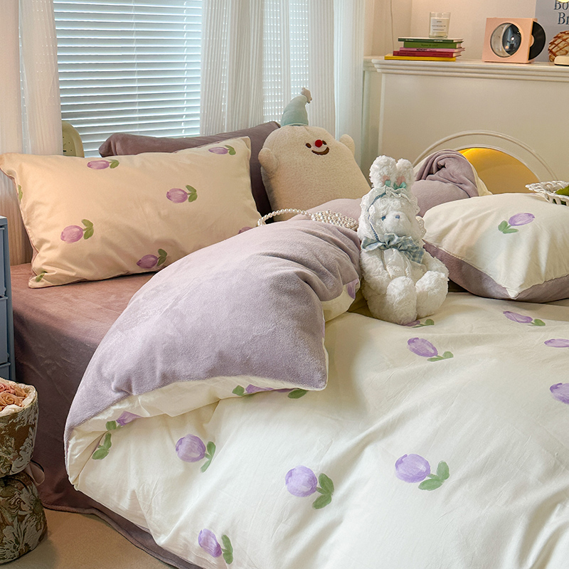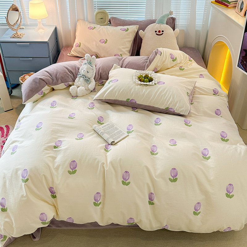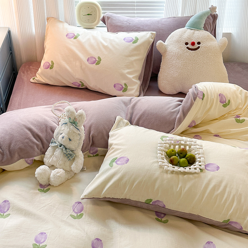 昔可家纺 2023新款y2k卡通印花系列棉加绒四件套 紫色郁金香