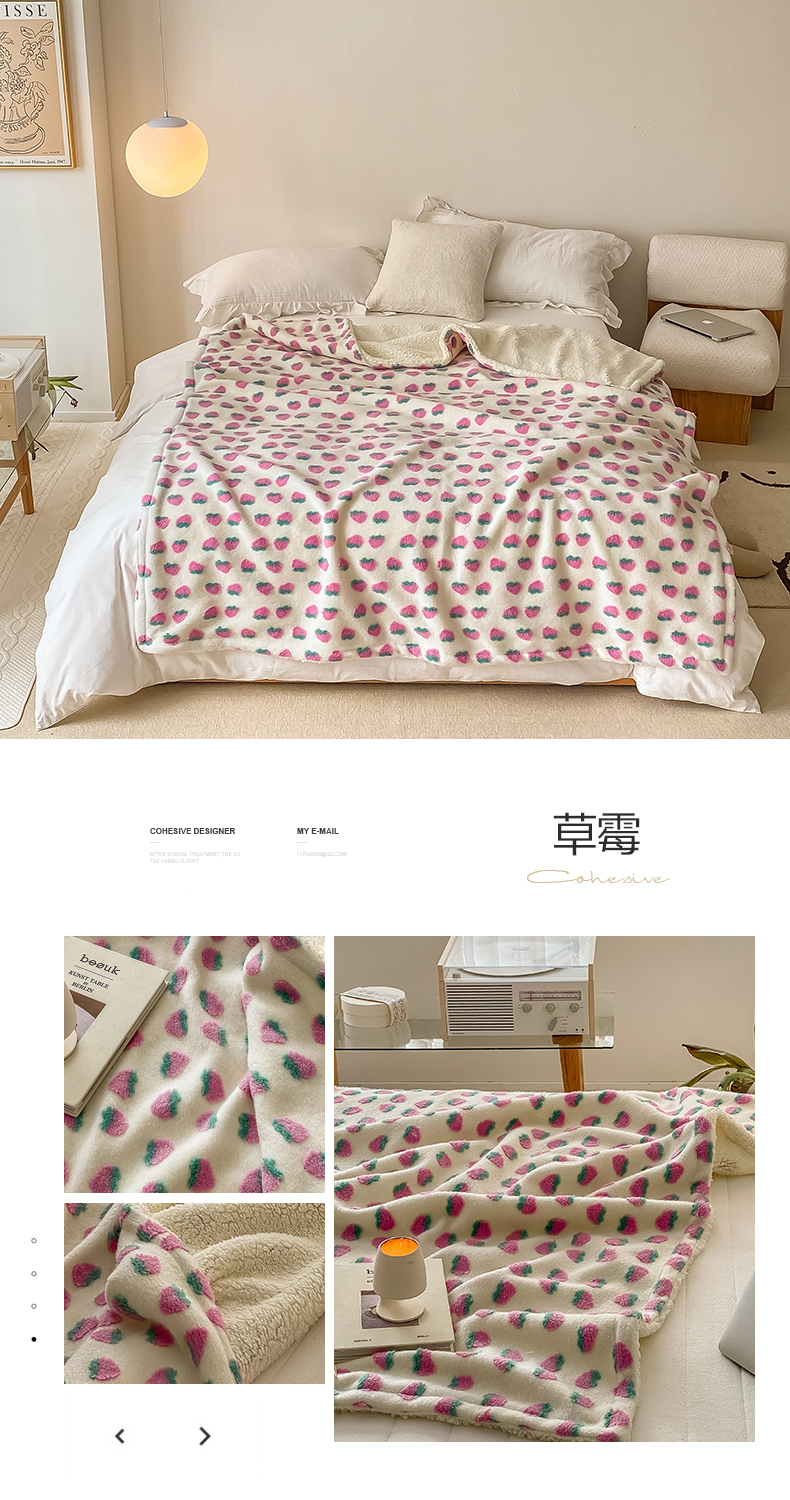 萝莉家纺 2023新款韩国订货热销款羊毛绒毯 草莓