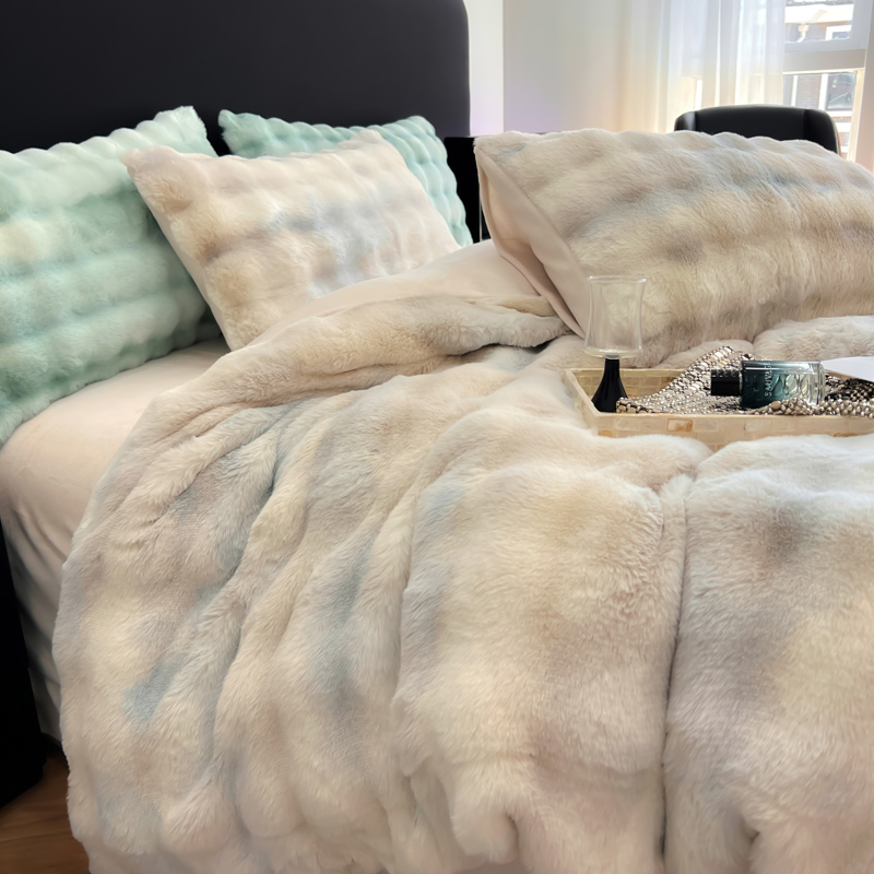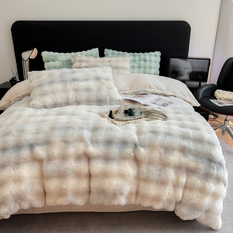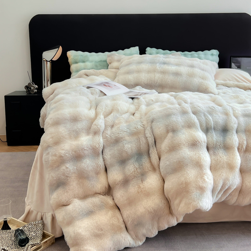 (总)满座2025新款高克重托卡斯仿皮草大泡泡兔兔绒牛奶绒四件套,清新绿,浅灰,柔粉 ,清新紫,纯咖,奶白,白咖