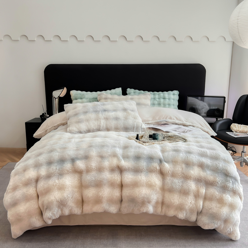 满座家居 2025新款秋冬爆款七彩大泡泡兔兔绒兔毛绒牛奶绒四件套 七彩白