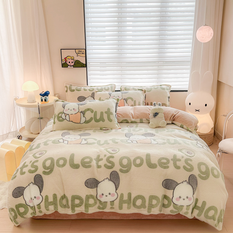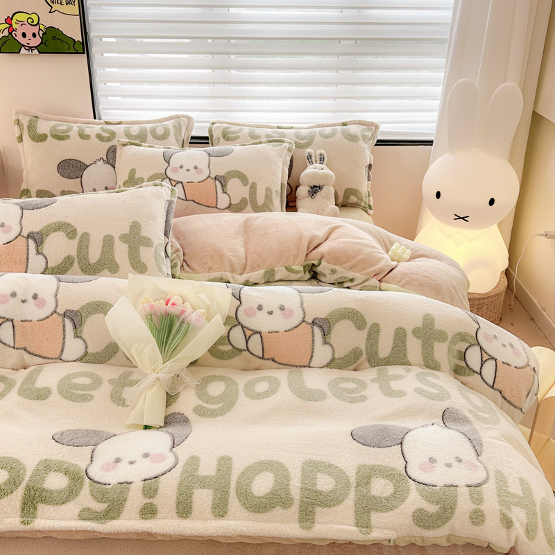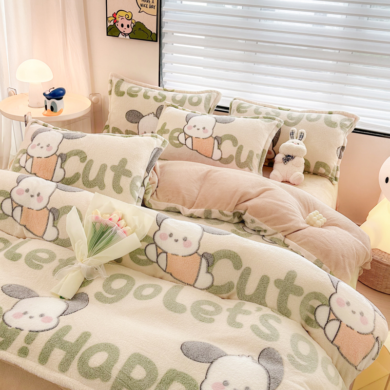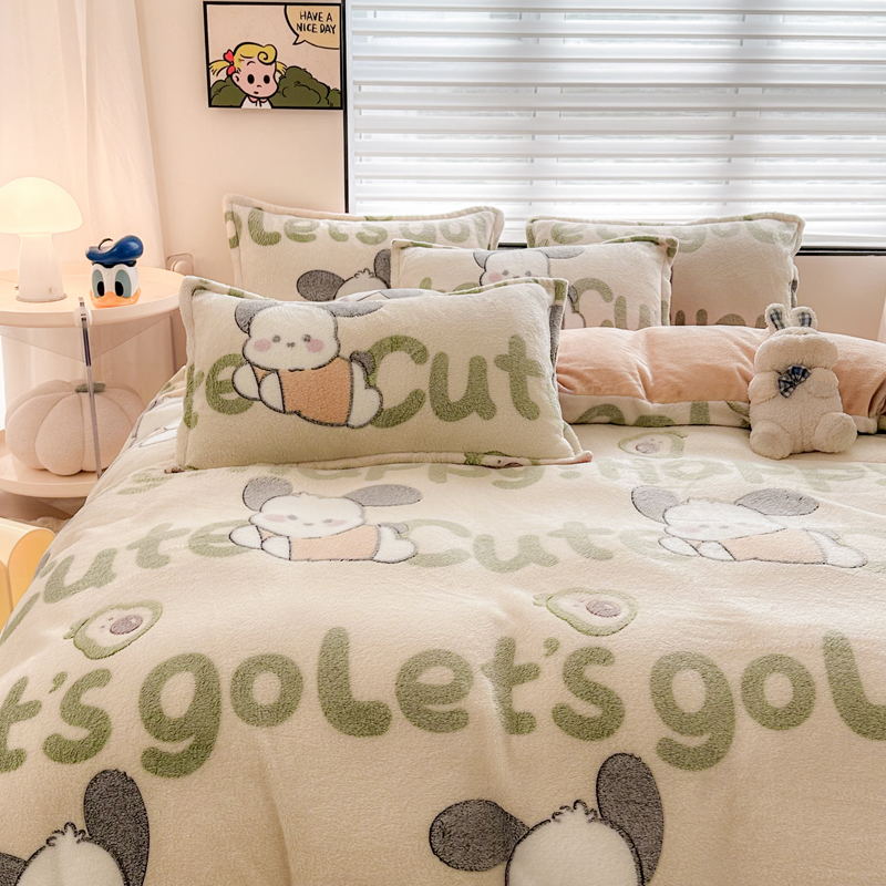 美莱 2023爆款雪花绒四件套法莱绒牛奶绒被套量大价格优惠 皮皮狗