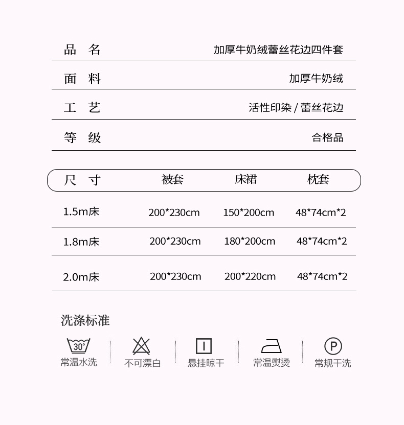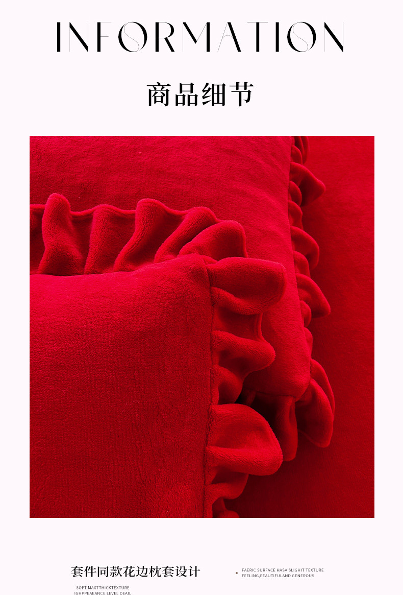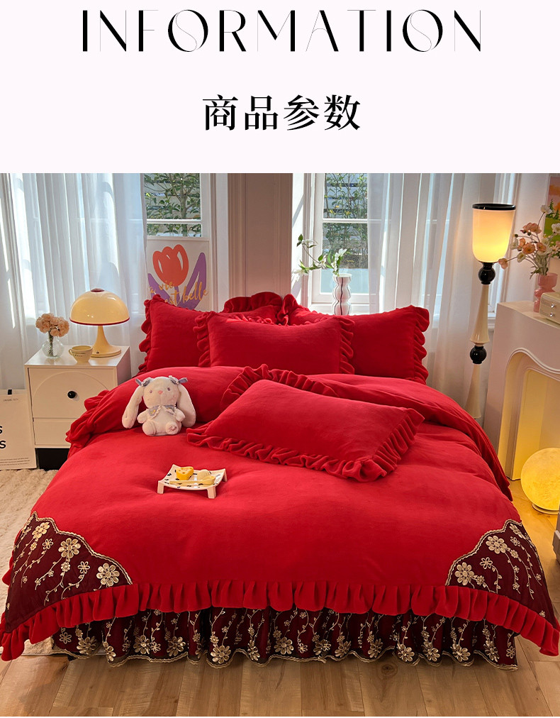 商品名称:唐人居 2025新款加厚牛奶绒蕾丝花边四件套-花颜 花颜-玫瑰红
