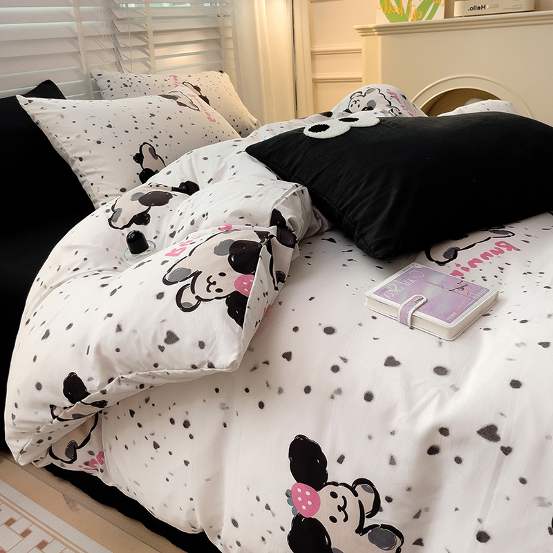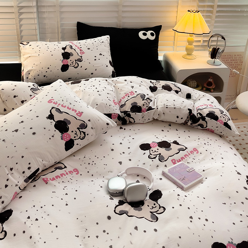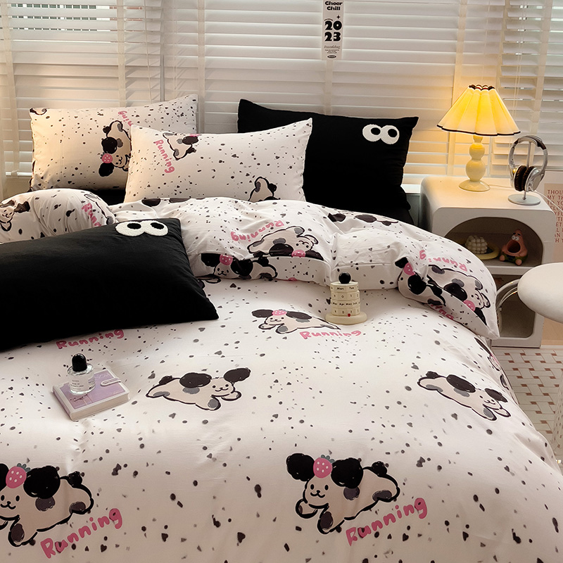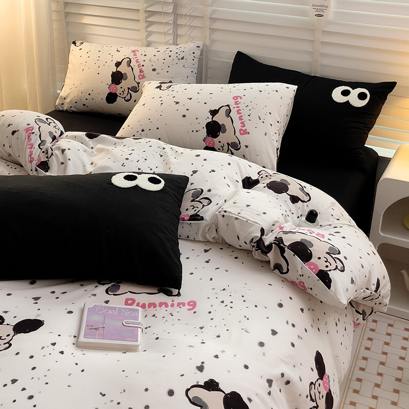 当前位置: 91家纺网 > 商品网购 > 床品套件 > 四件套 > 水洗棉四件套 > 奈颜 2023新款爆款水洗棉双层纱毛巾绣甜酷风四件套-大眼 甜酷可爱狗-黑