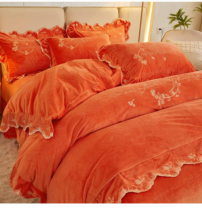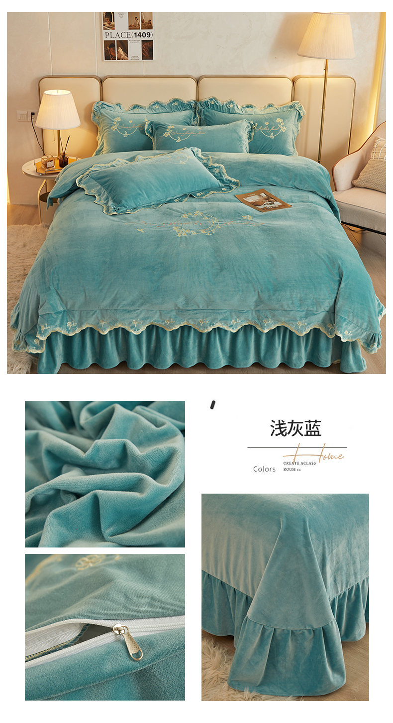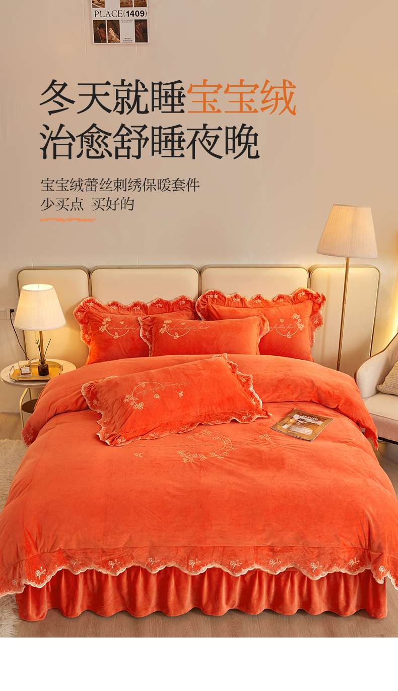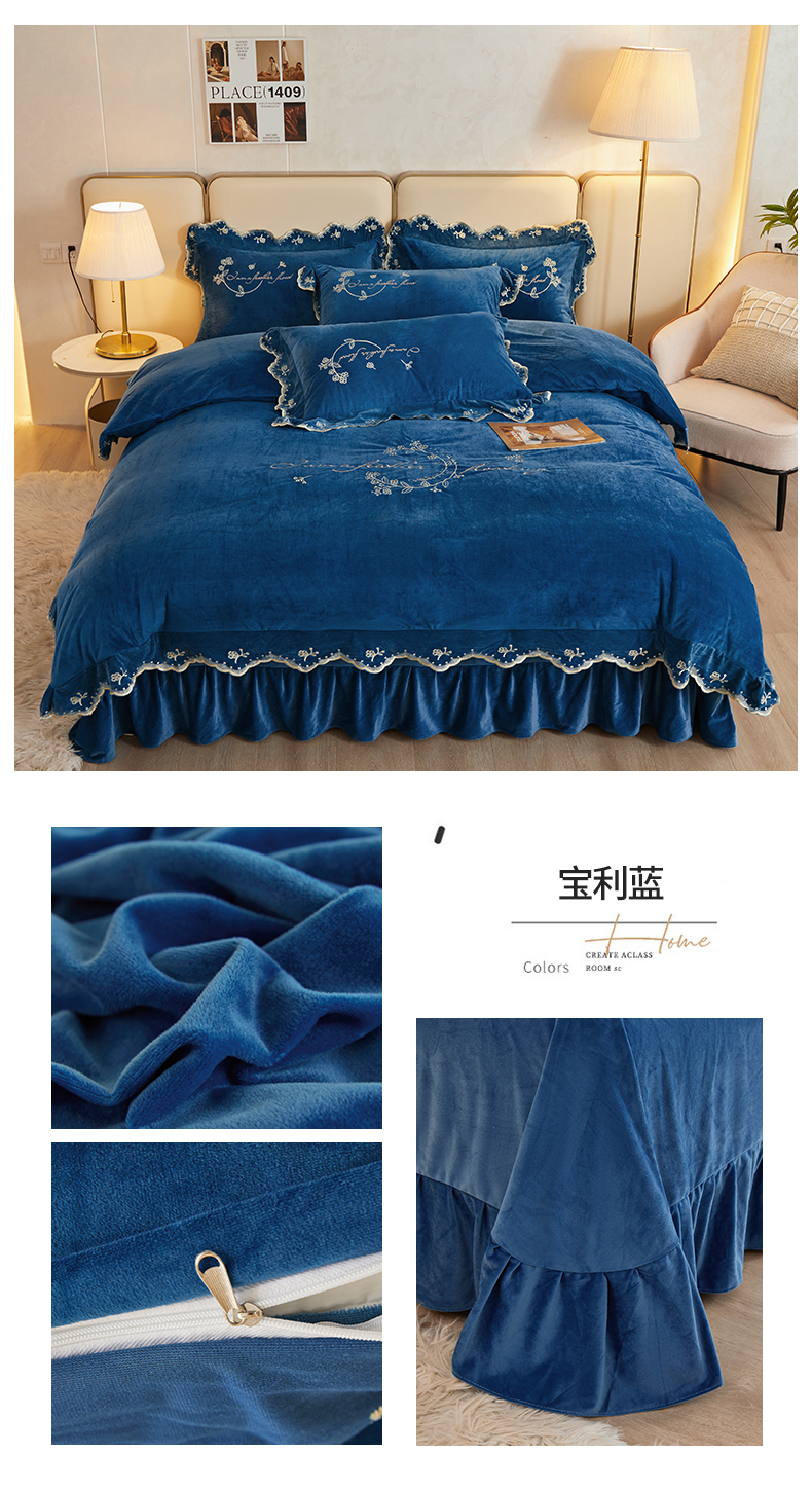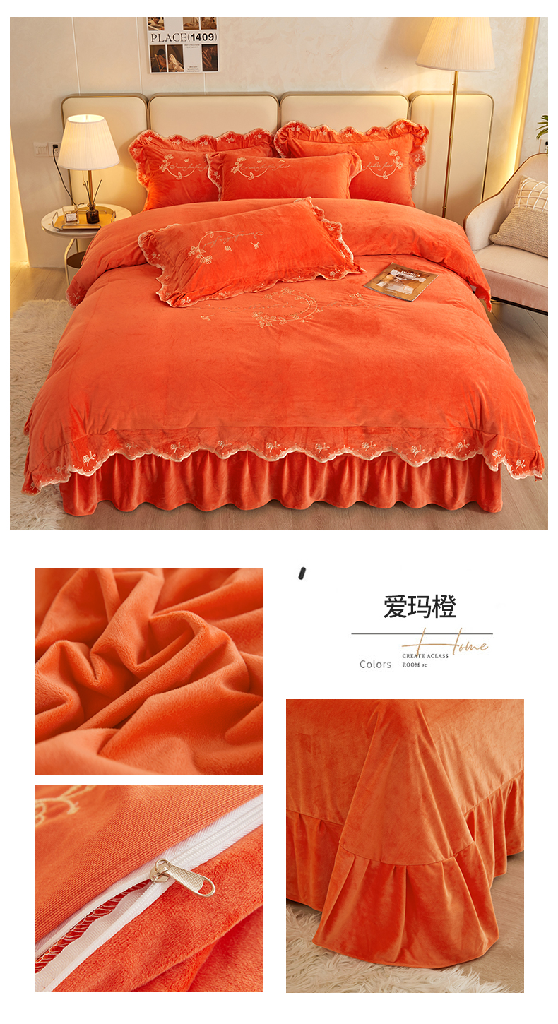 (总)恒爱 2022新款秋冬轻奢宝宝绒刺绣床裙款四件套,爱玛橙,宾利蓝,豆沙红,橄榄绿,高级灰,酒红,梦想粉,浅灰蓝,温馨粉,喜庆红,香妃粉,香芋紫