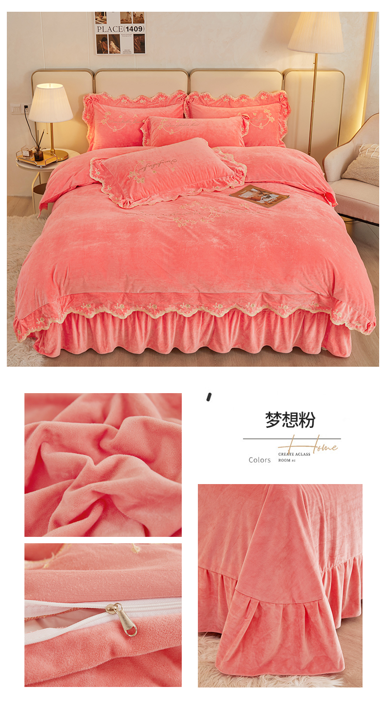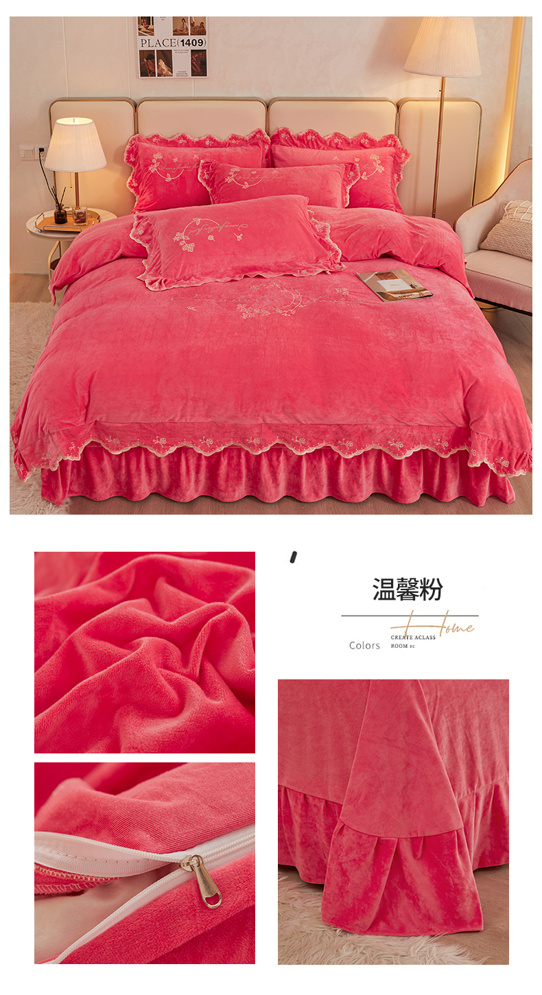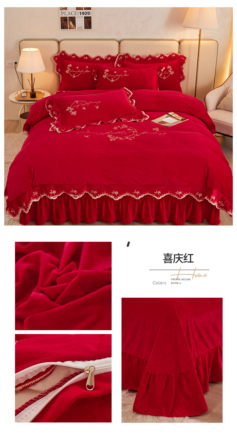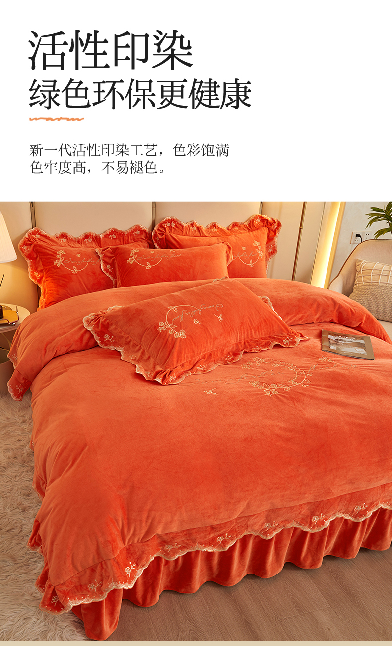 (总)恒爱 2022秋冬水晶绒翩翩花舞夹棉床裙四件套,大红色,豆沙红,橄榄绿,公主粉,桔色,咖啡色,孔雀绿,拉菲红,罗兰紫,玫红色,美人玉,米白色,米驼色,抹茶绿,浅灰色,紫色