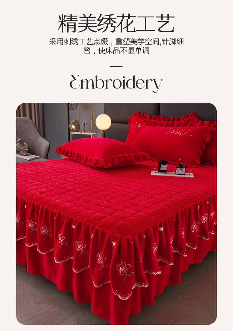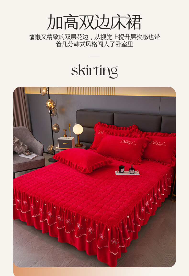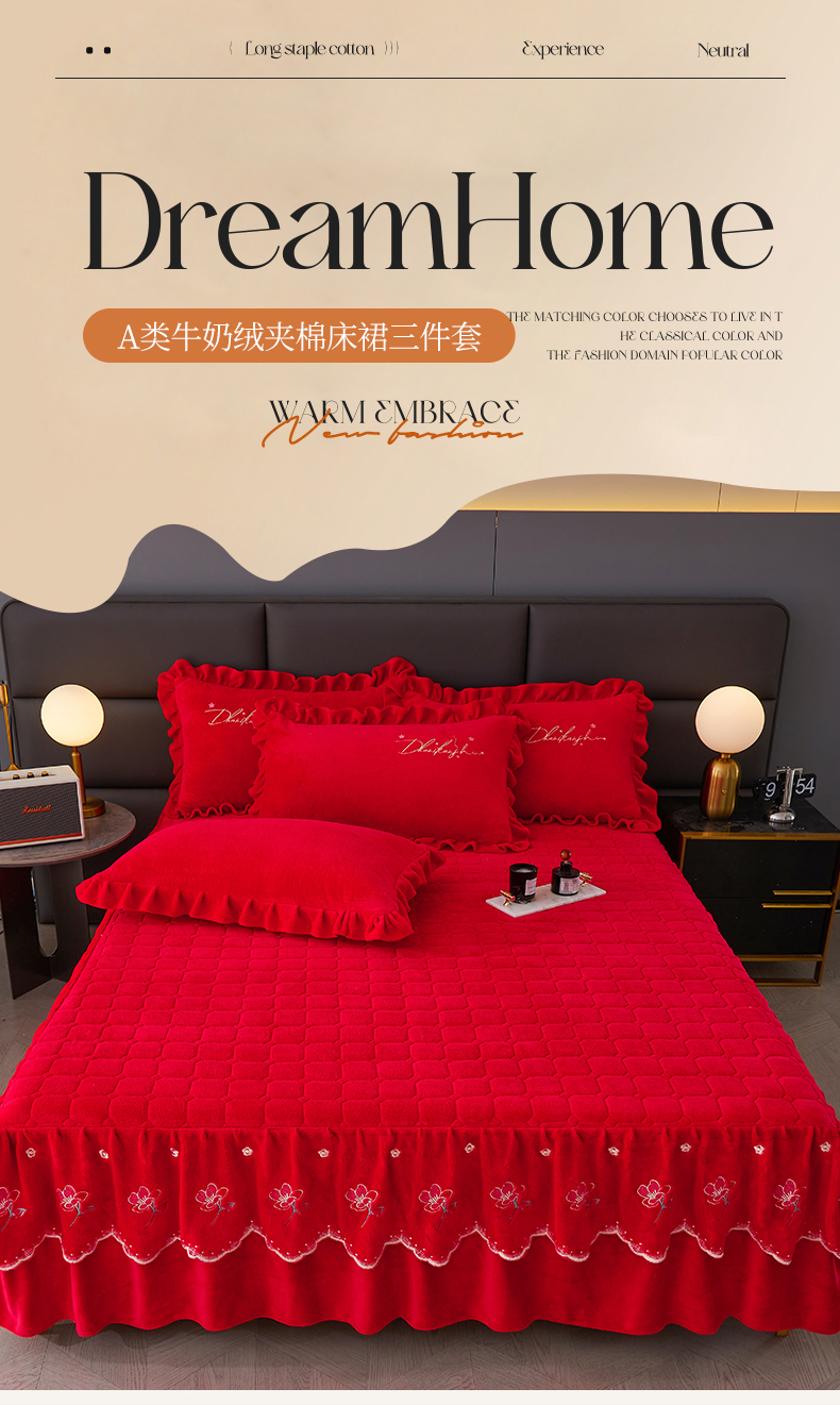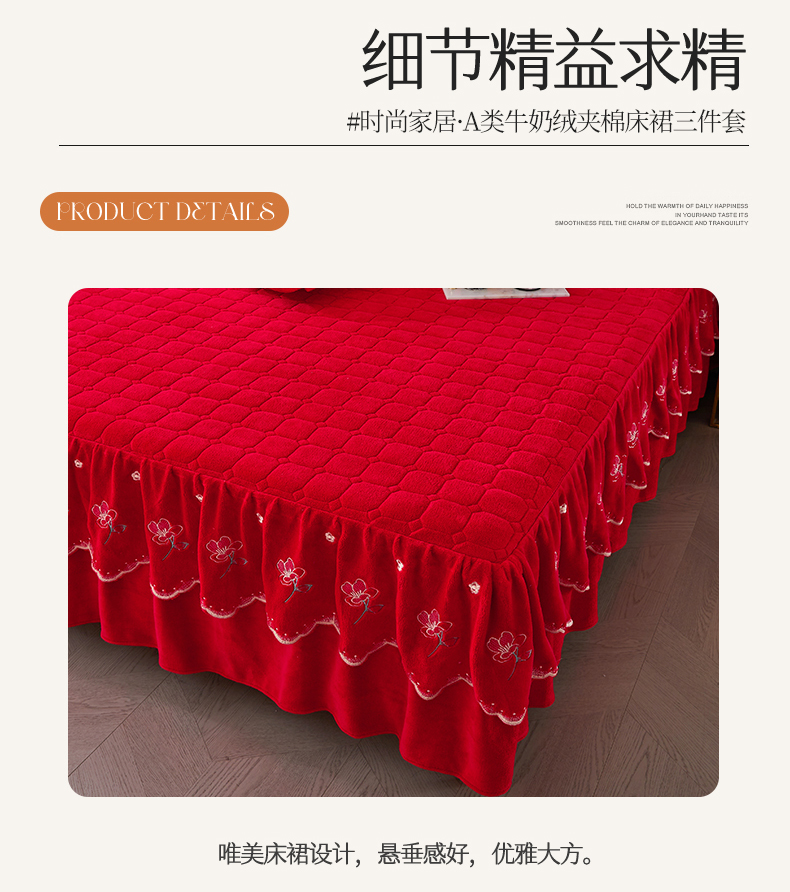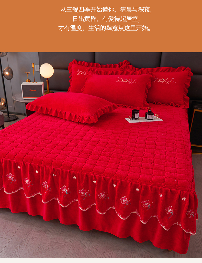 当前位置: 91家纺网 > 商品网购 > 床品套件 > 三件套 > 恒爱家纺 2023新款牡丹花开床裙牛奶绒三件套 大红