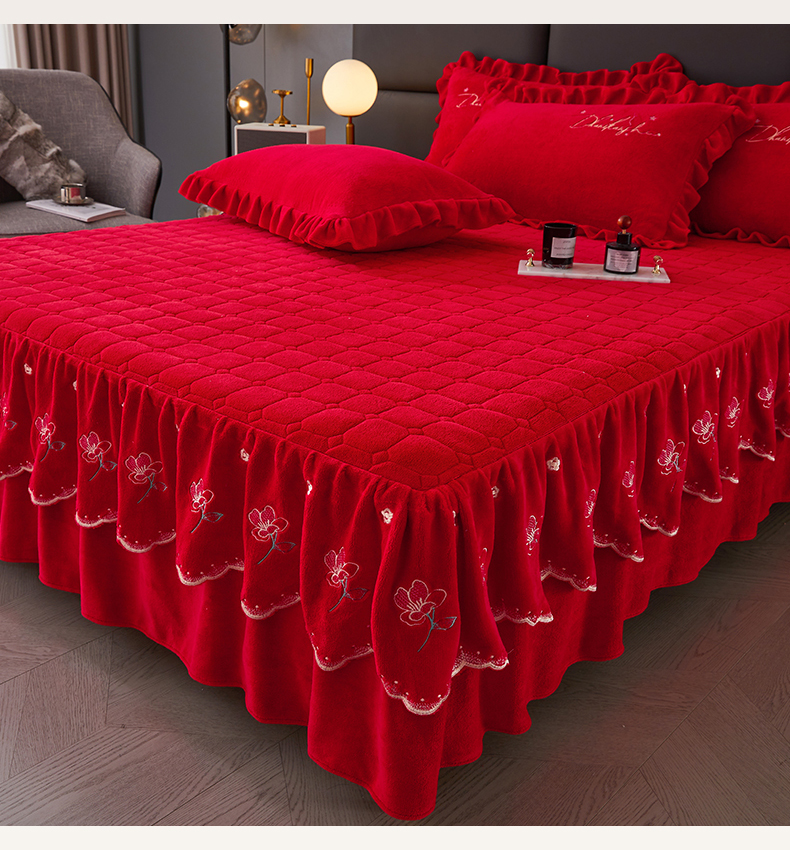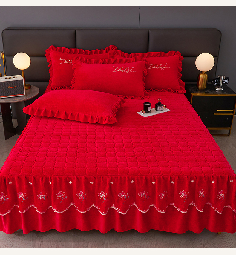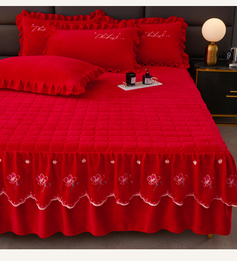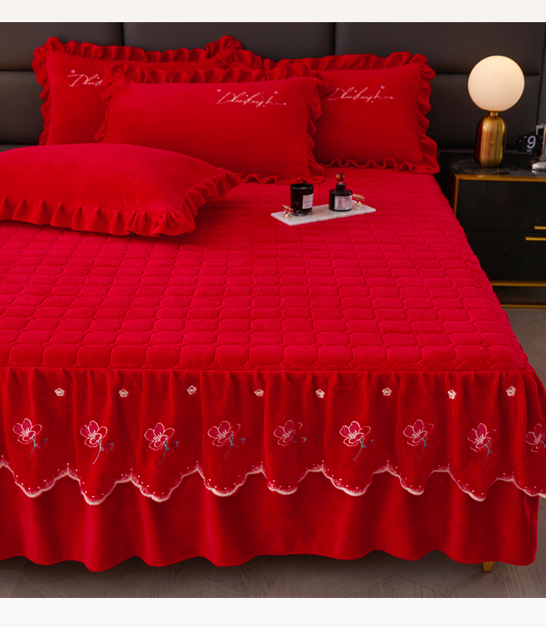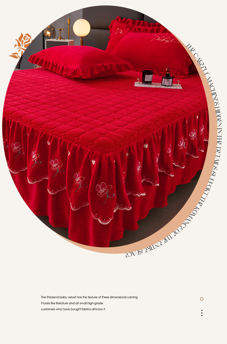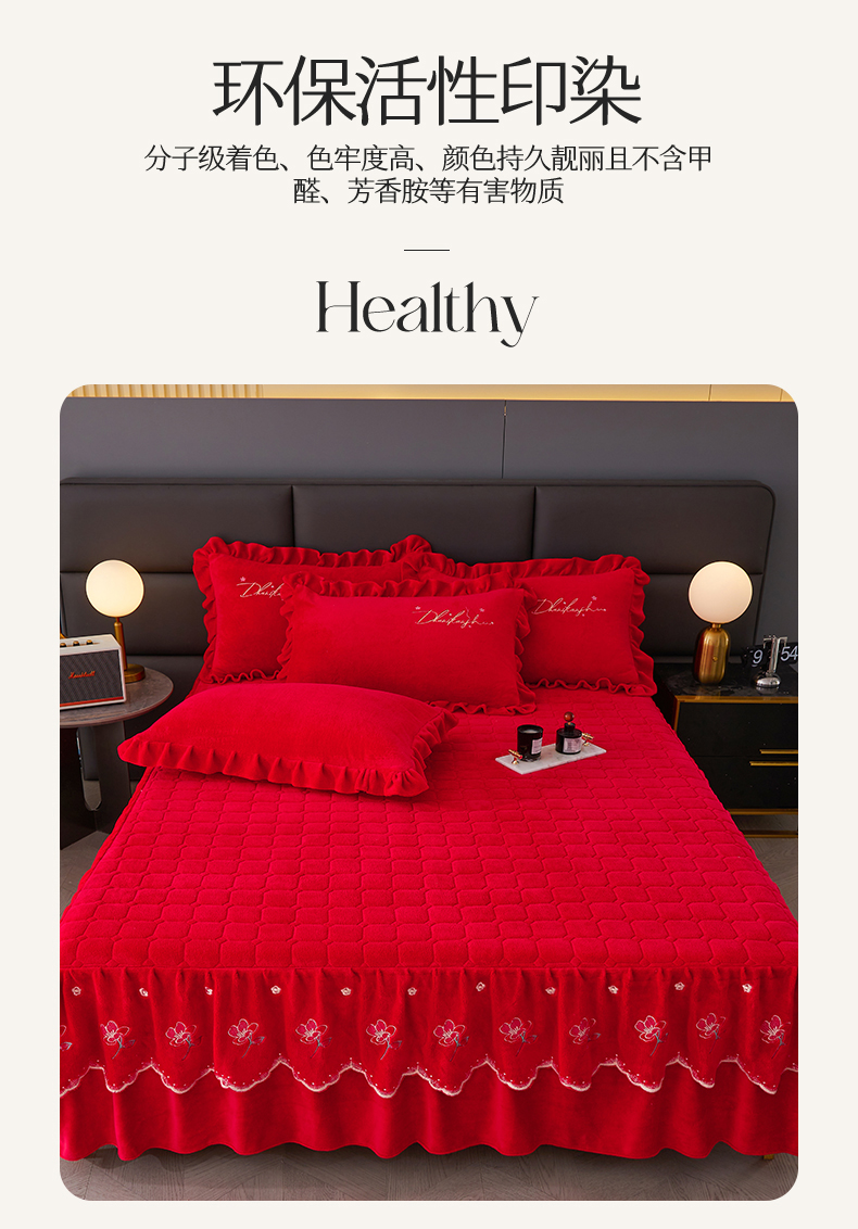 当前位置: 91家纺网 > 商品网购 > 床品套件 > 三件套 > 恒爱家纺 2023新款牡丹花开床裙牛奶绒三件套 大红