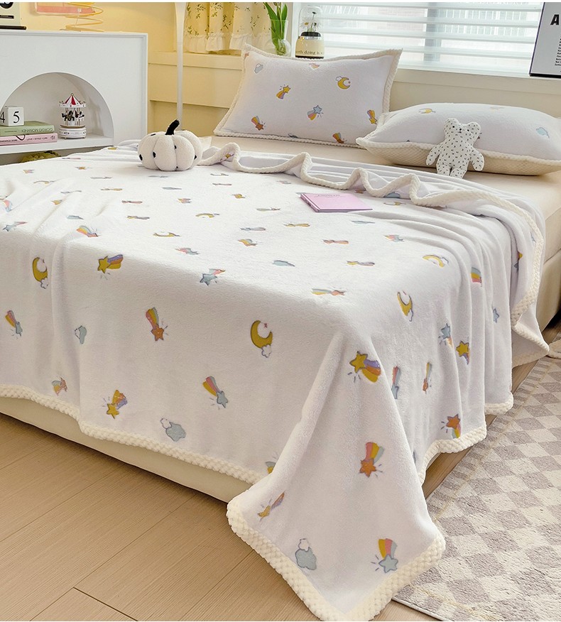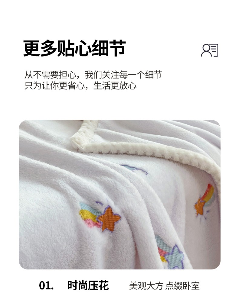 当前位置: 91家纺网 > 商品网购 > 毛毯休闲毯绒毯 > 毛毯 > 锦威郎 2023新款毛毯床单保暖加厚珊瑚绒双面午睡毯云朵绒多功能毛毯 彩虹白