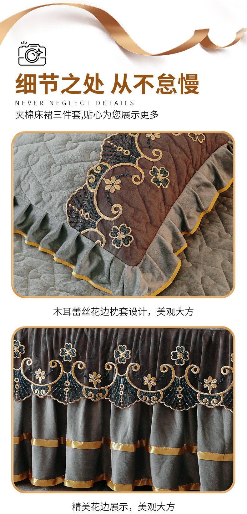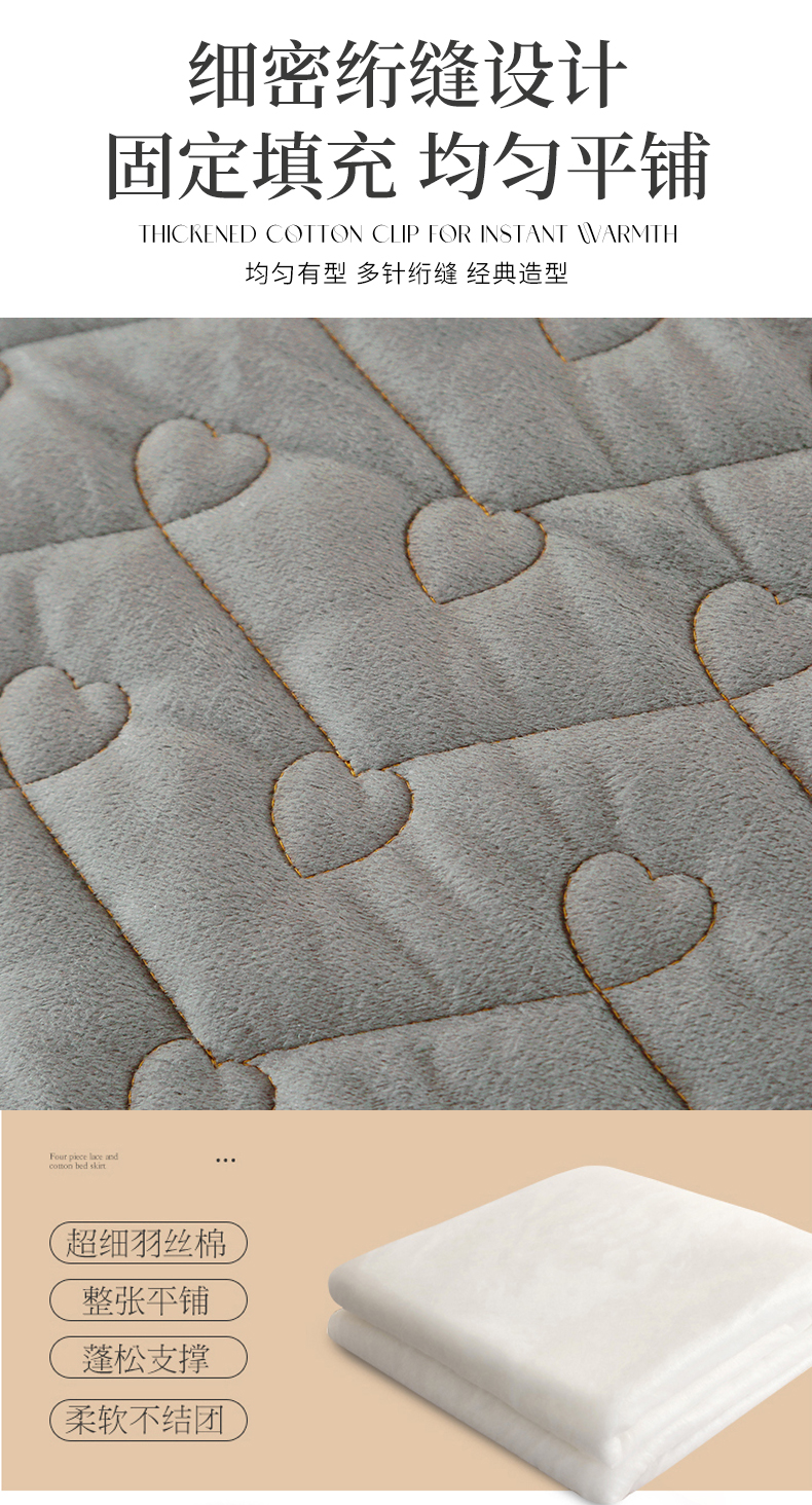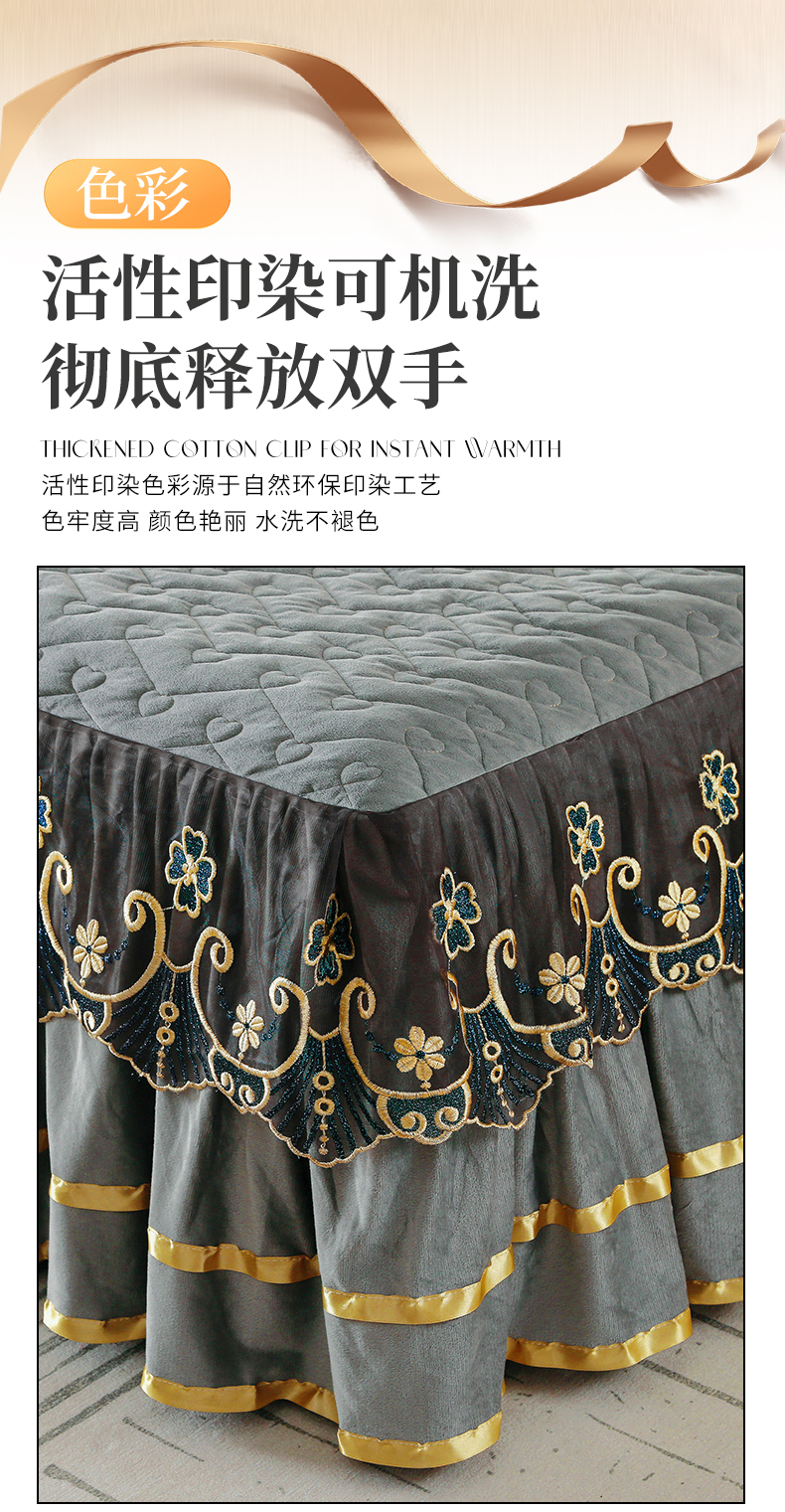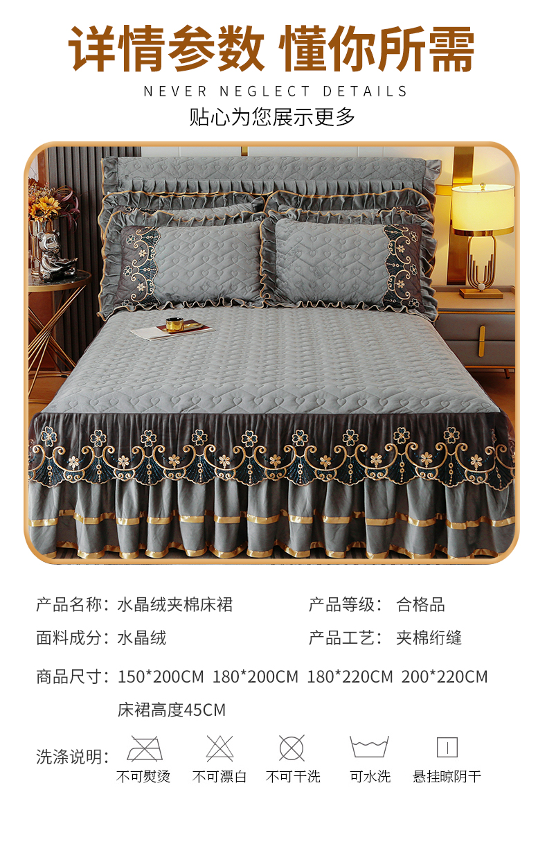 (总)屹成家纺2025新款水晶绒夹棉绗缝蕾丝床裙三件套(塞纳河畔)床裙单件起售价不低于105元,大红,豆沙,翡翠绿,粉玉,橄榄绿,蔚蓝,银灰