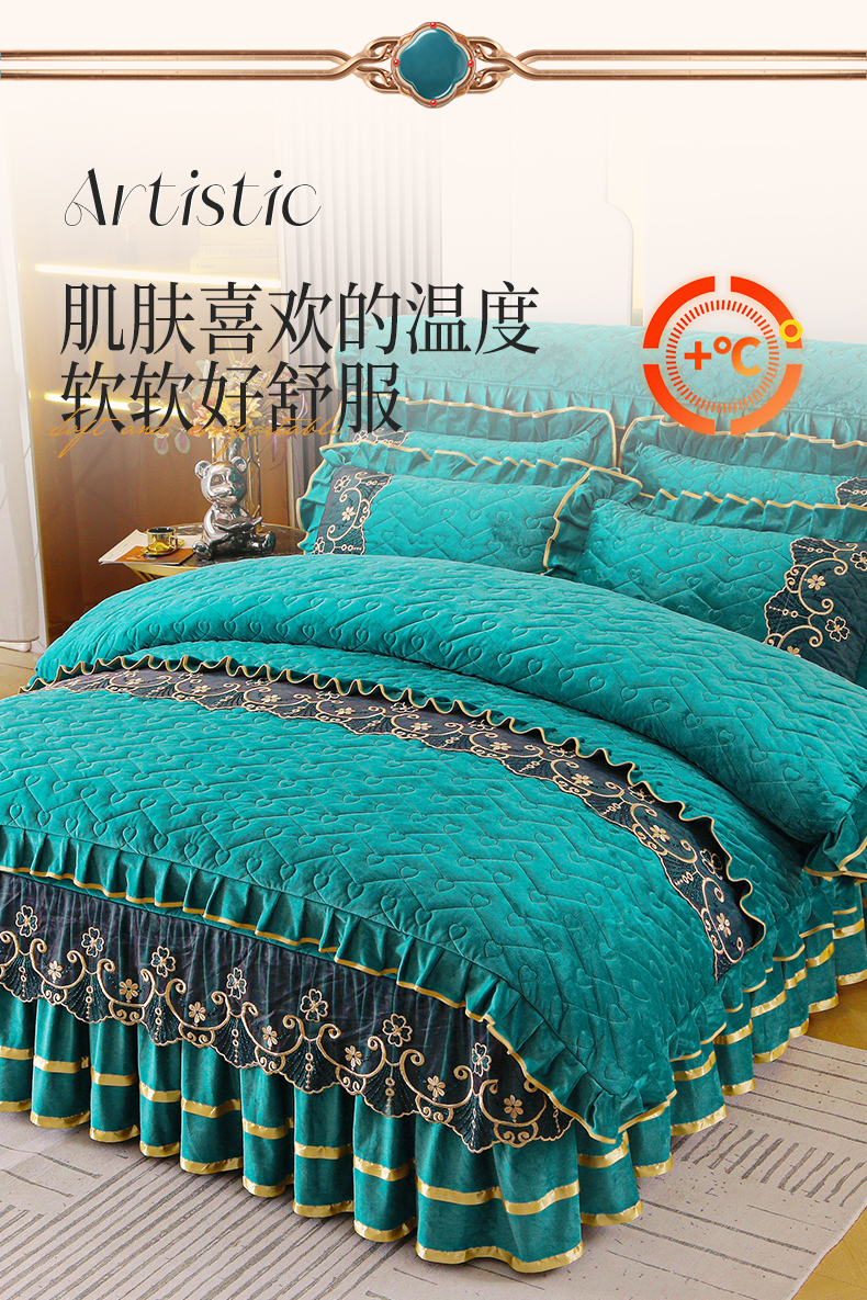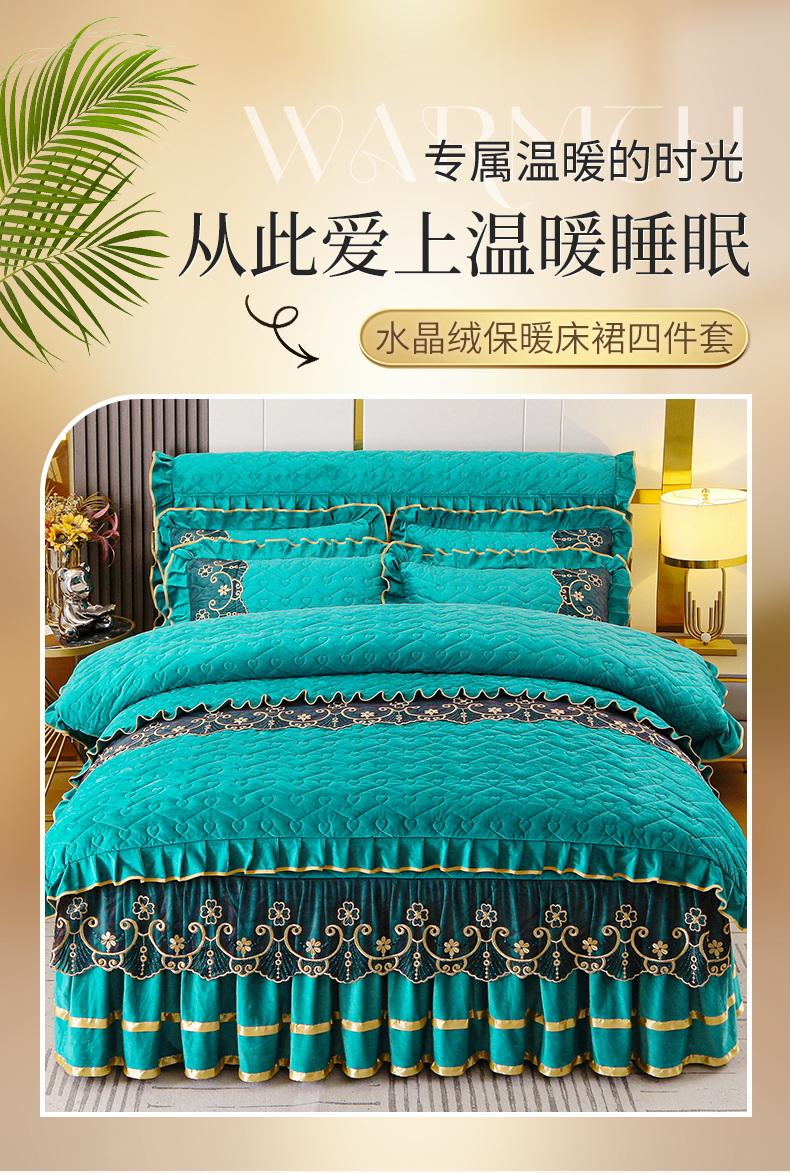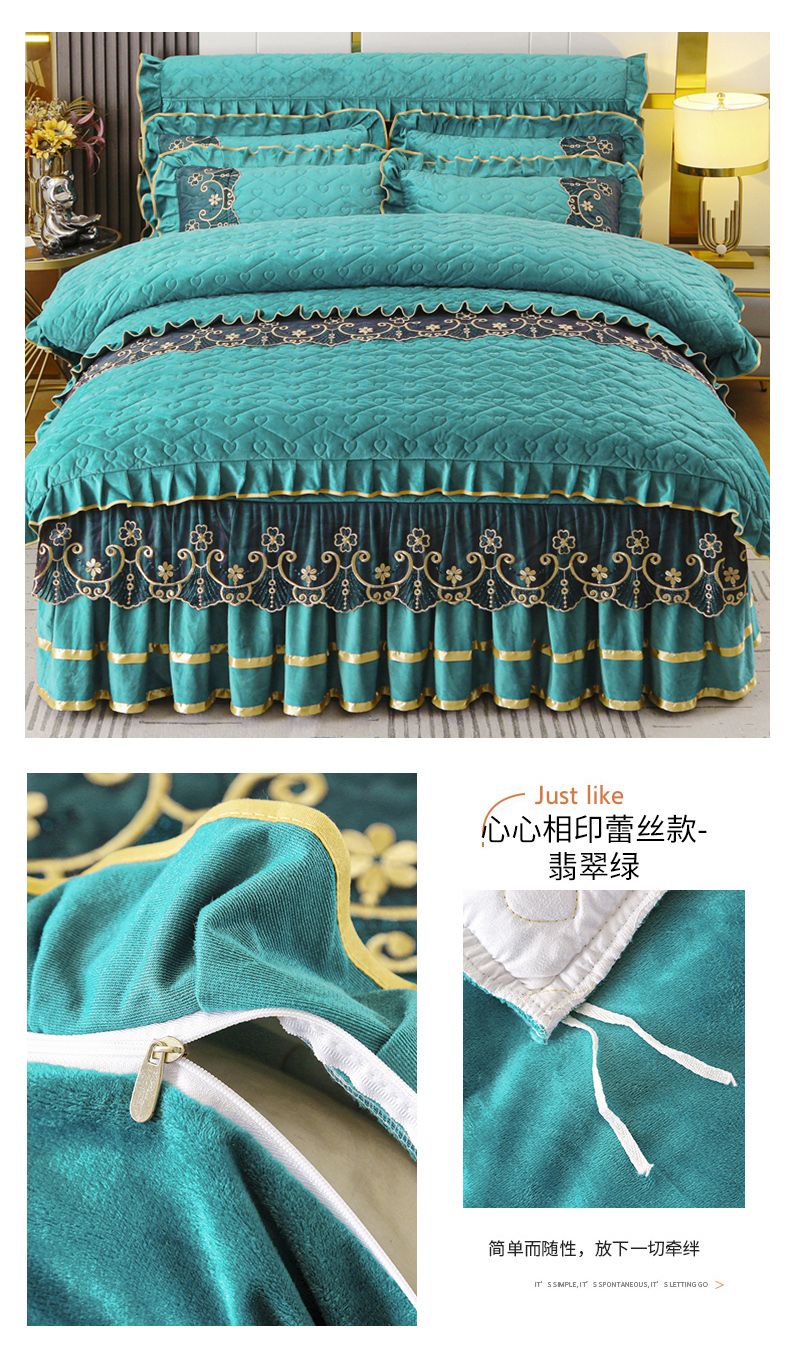 当前位置: 91家纺网 > 商品网购 > 床品套件 > 四件套 > 水晶绒四件套 > 新款心心相印蕾丝款水晶绒保暖床裙四件套 心心相印蕾丝款-翡翠绿
