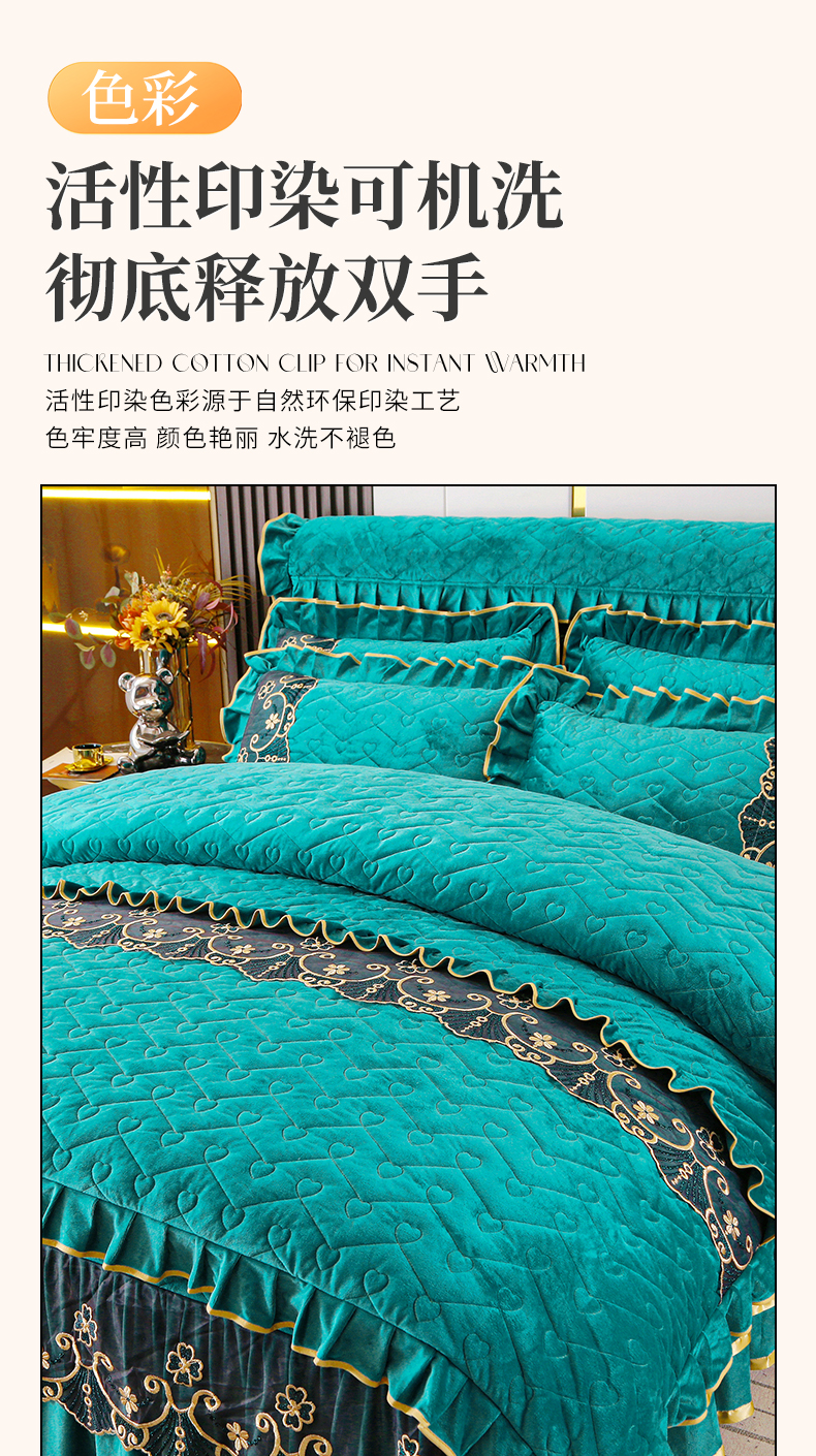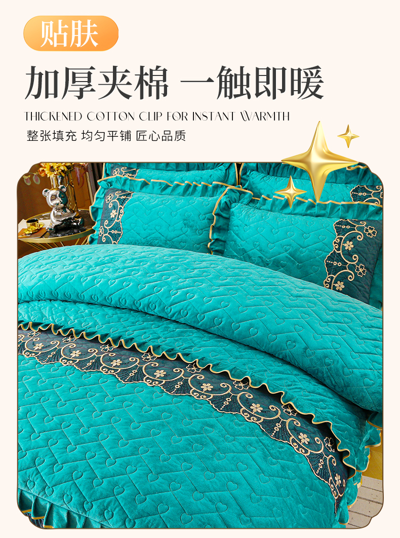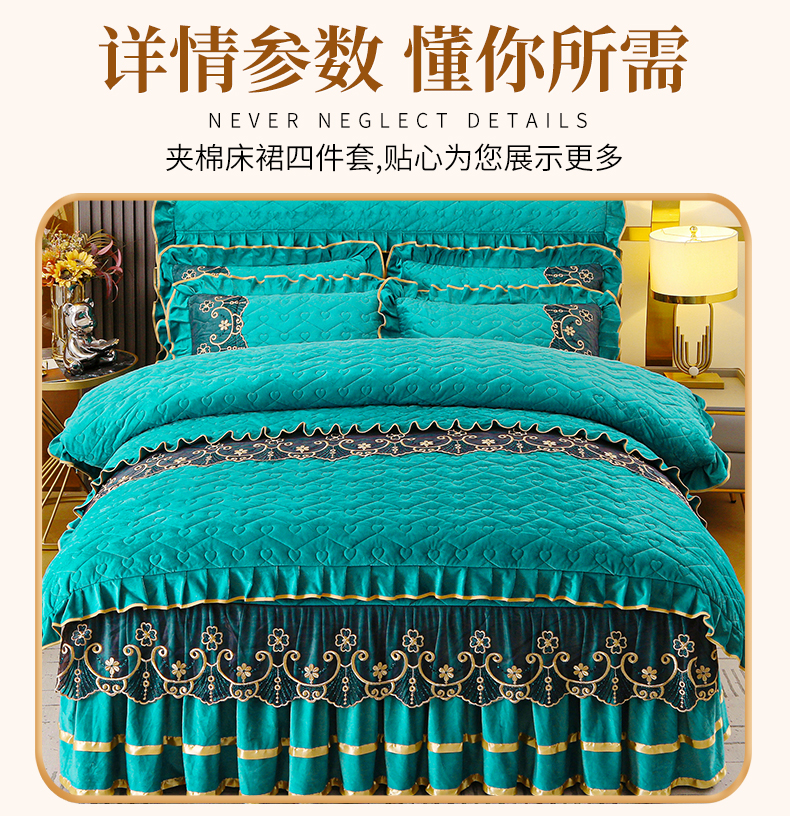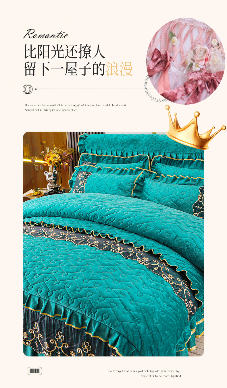 当前位置: 91家纺网 > 商品网购 > 床品套件 > 四件套 > 水晶绒四件套 > 新款心心相印蕾丝款水晶绒保暖床裙四件套 心心相印蕾丝款-翡翠绿