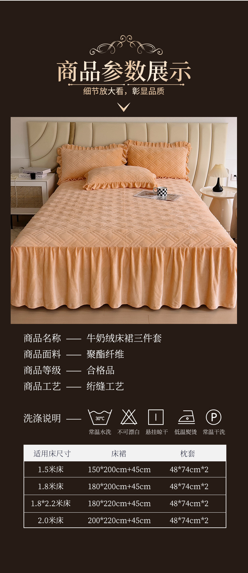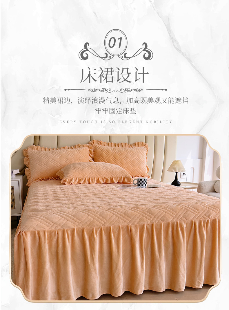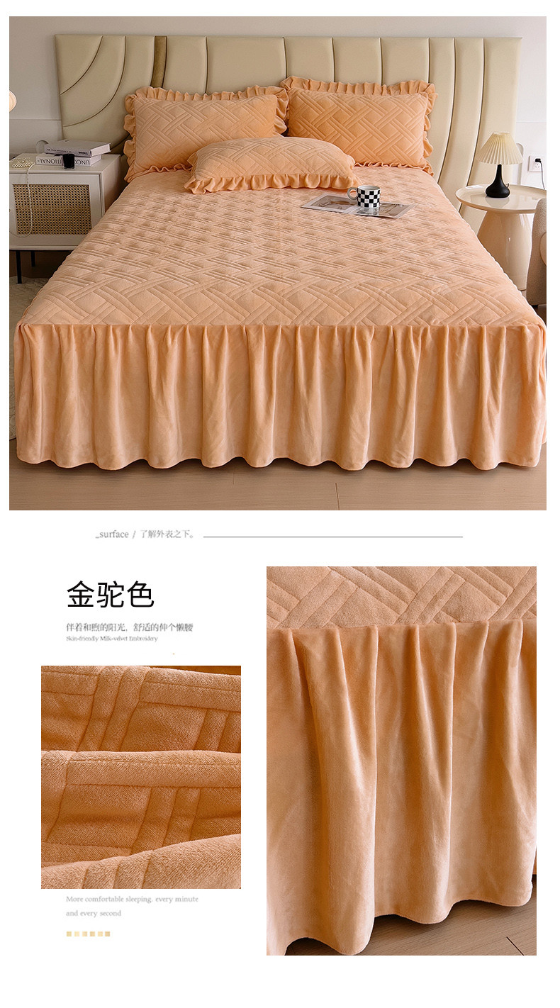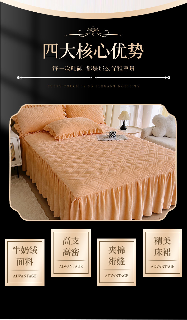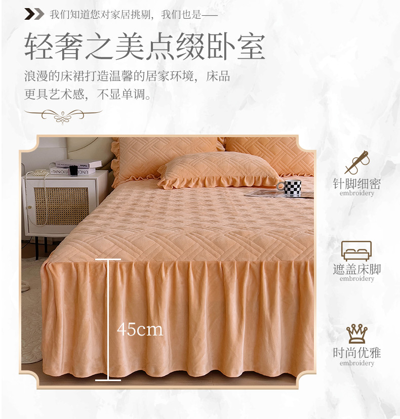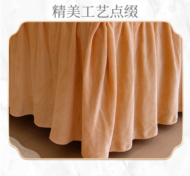 商品名称:十个点家纺 2024新款牛奶绒单床裙-欣雅 金驼色