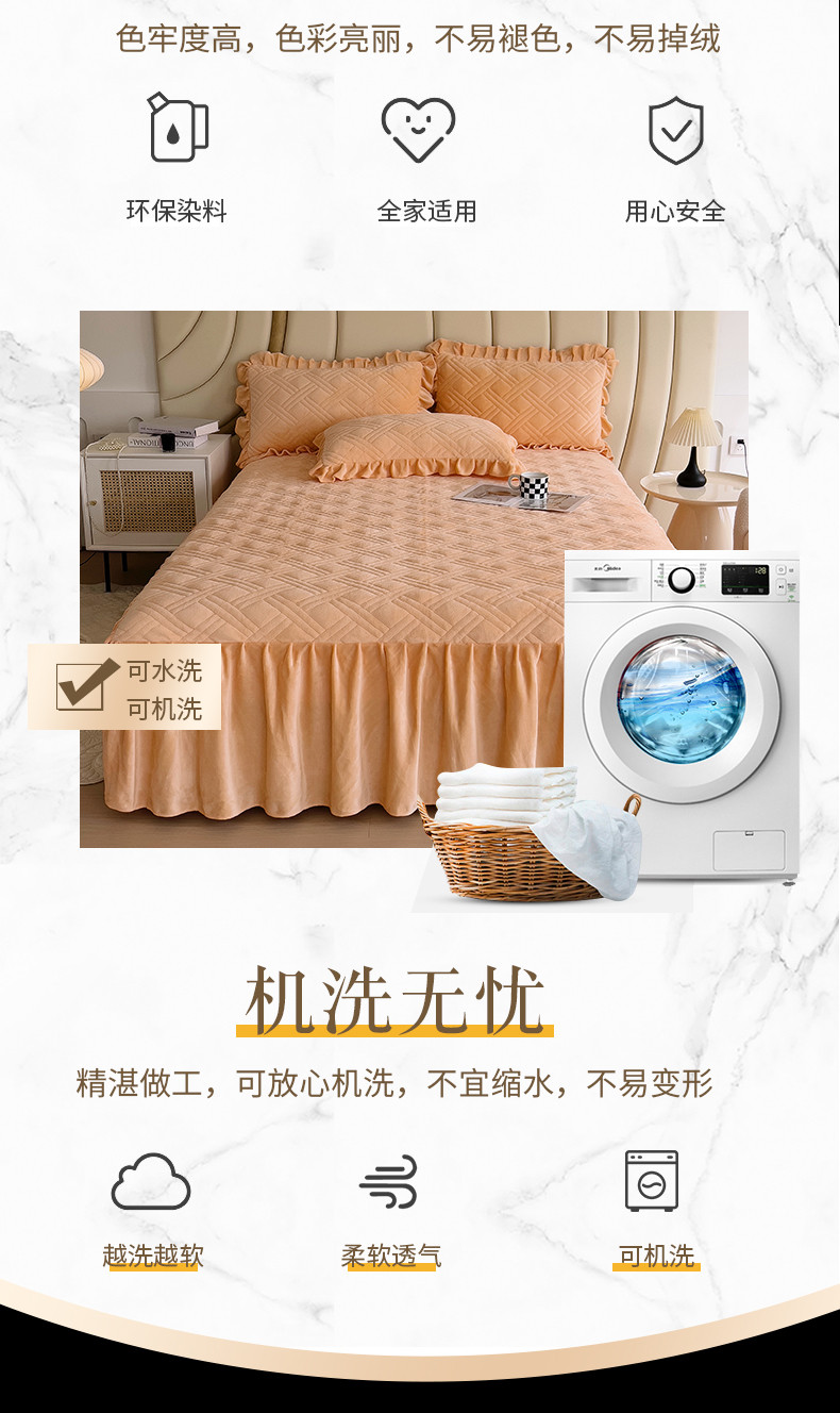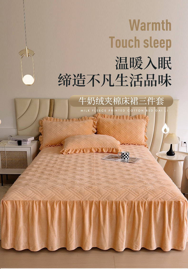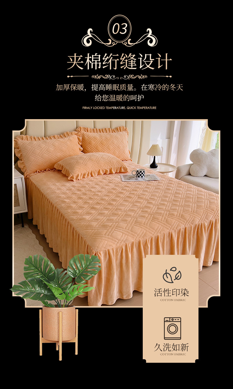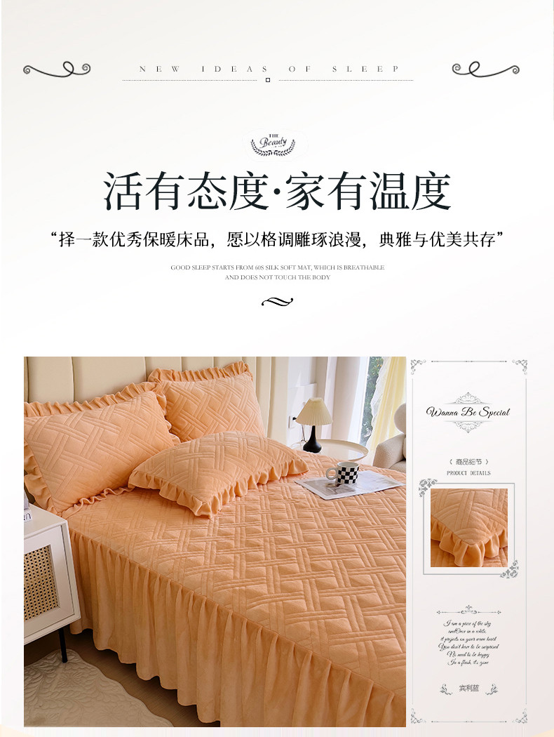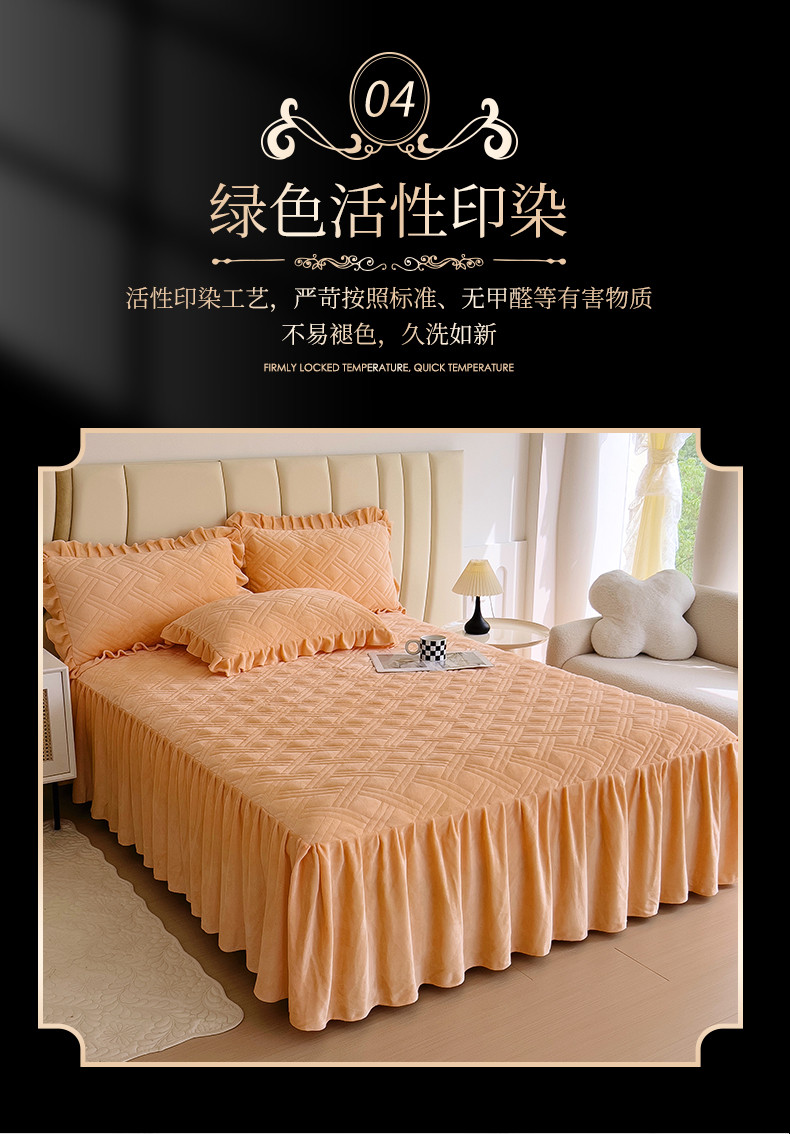商品名称:十个点家纺 2024新款牛奶绒单床裙-欣雅 金驼色