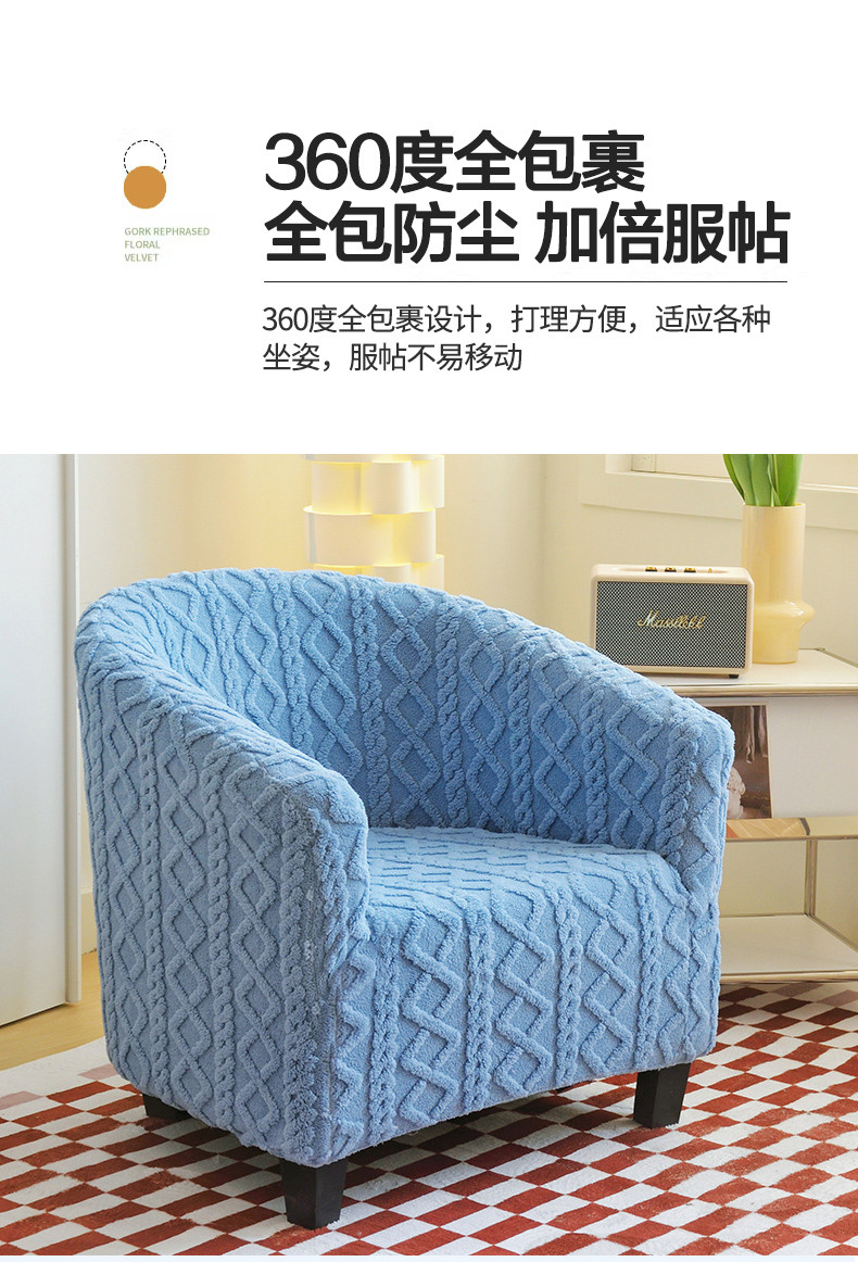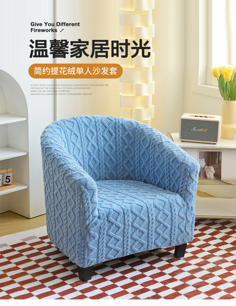 启博家纺 2023新款保暖卡座单人沙发套半圆沙发套 天蓝
