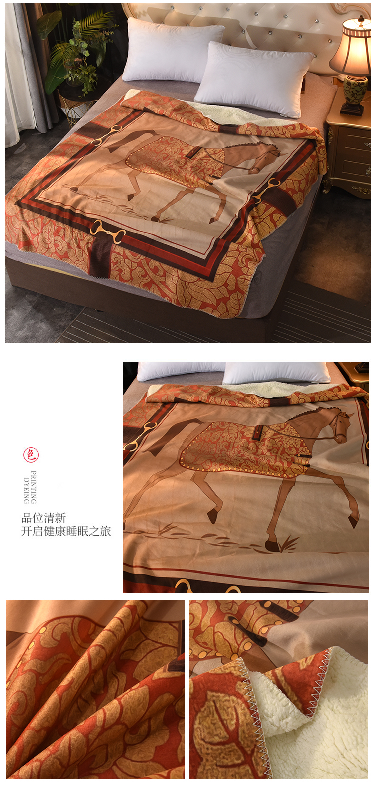 商品名称:爵仕家纺 2023新款羊羔绒毯宫廷风骏马系列 唐马