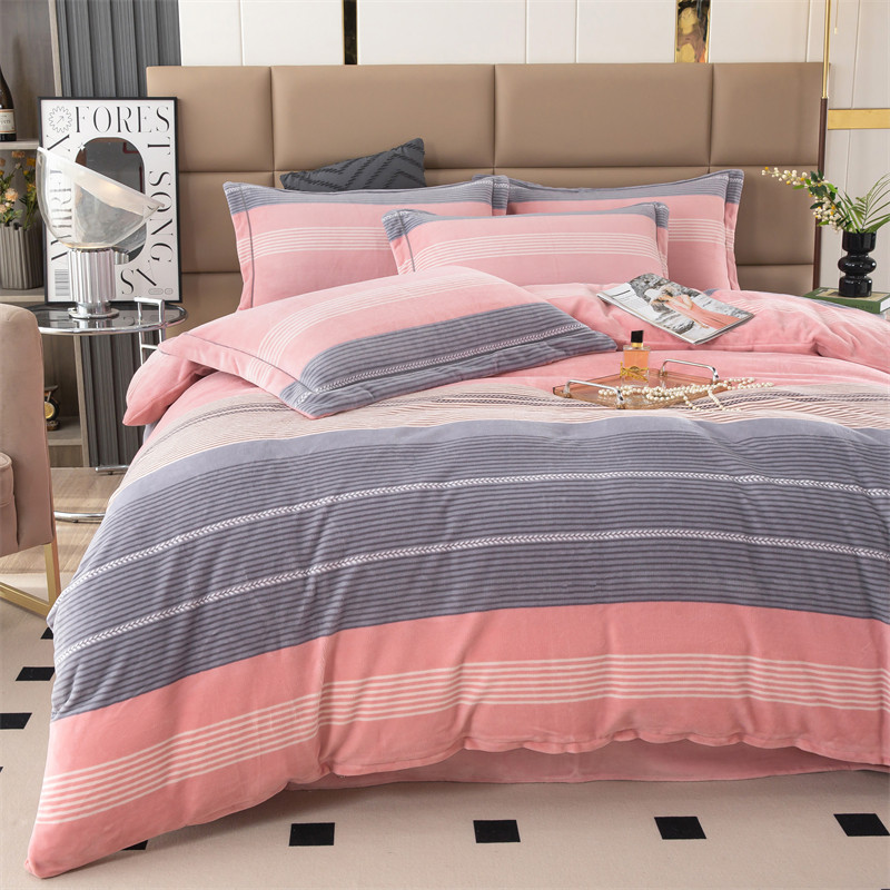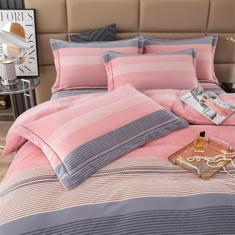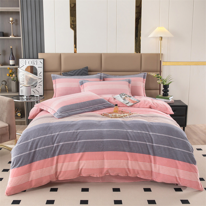 商品名称:畅畅 2023新款加厚260克全消光牛奶棉印花臻棉绒四件套 伊洛克粉
