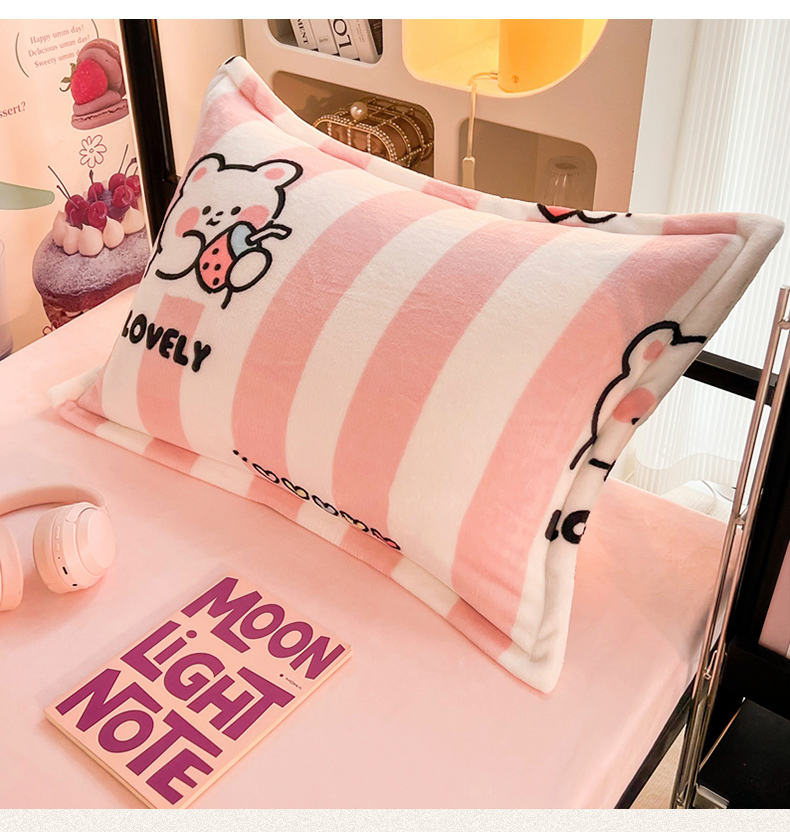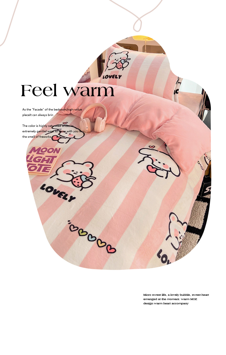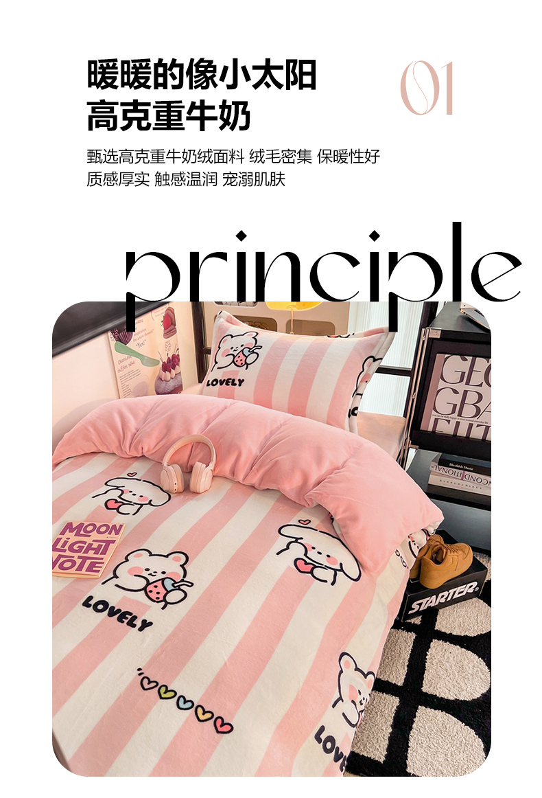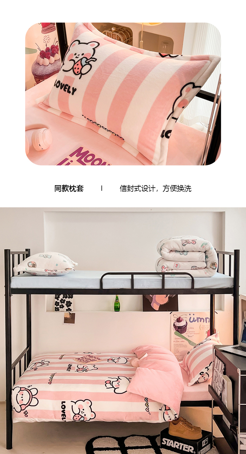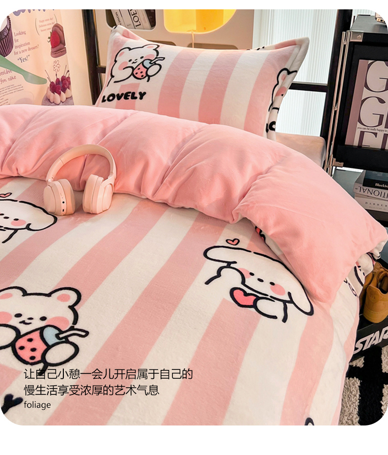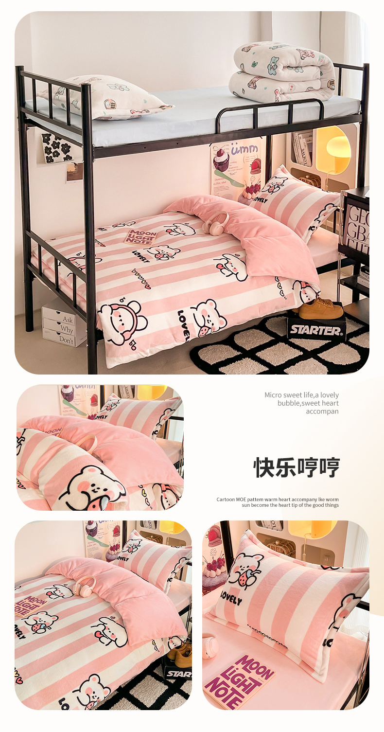 川悦生活 2023新款高克重宿舍牛奶绒三件套四件套 快乐哼哼