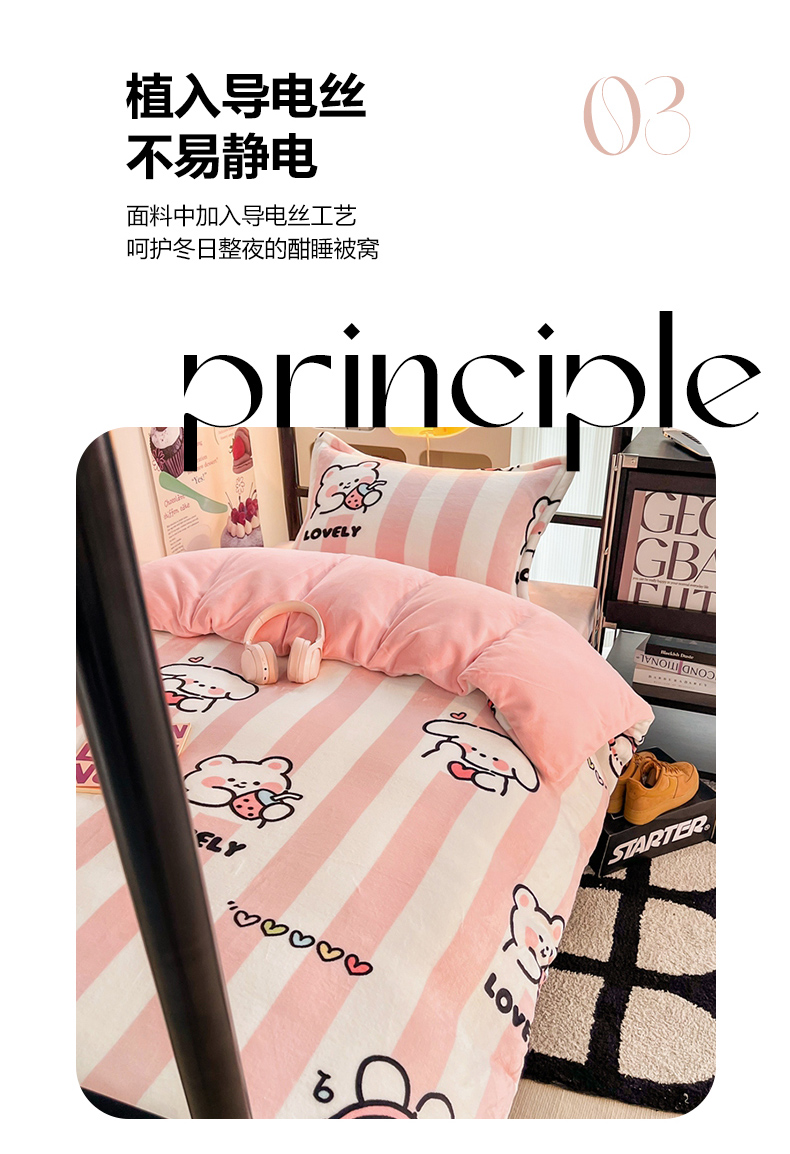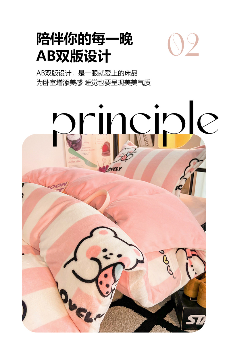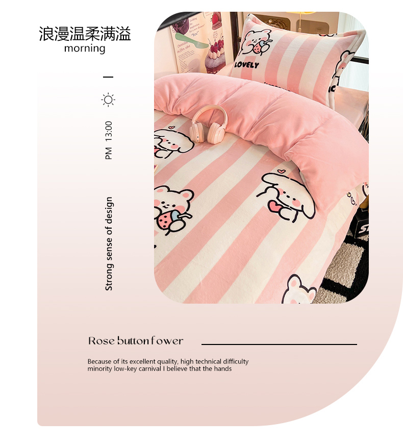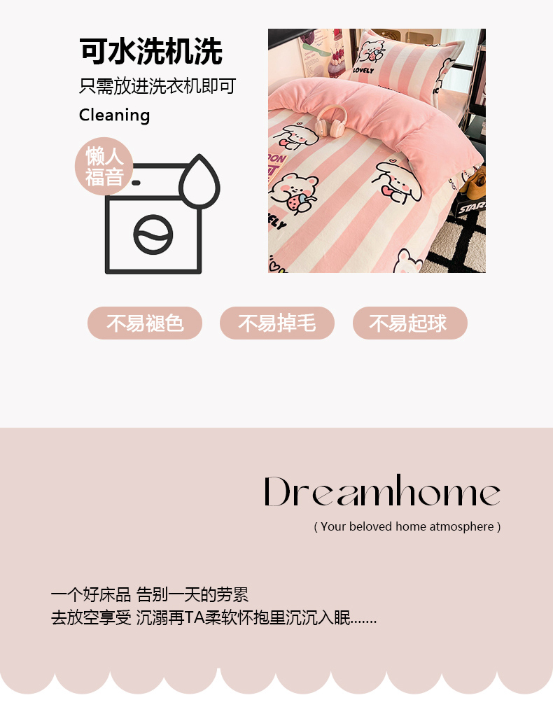 商品名称:川悦生活 2023新款高克重宿舍牛奶绒三件套四件套 快乐哼哼