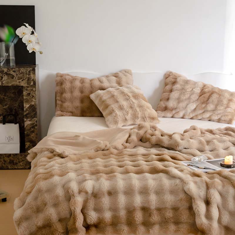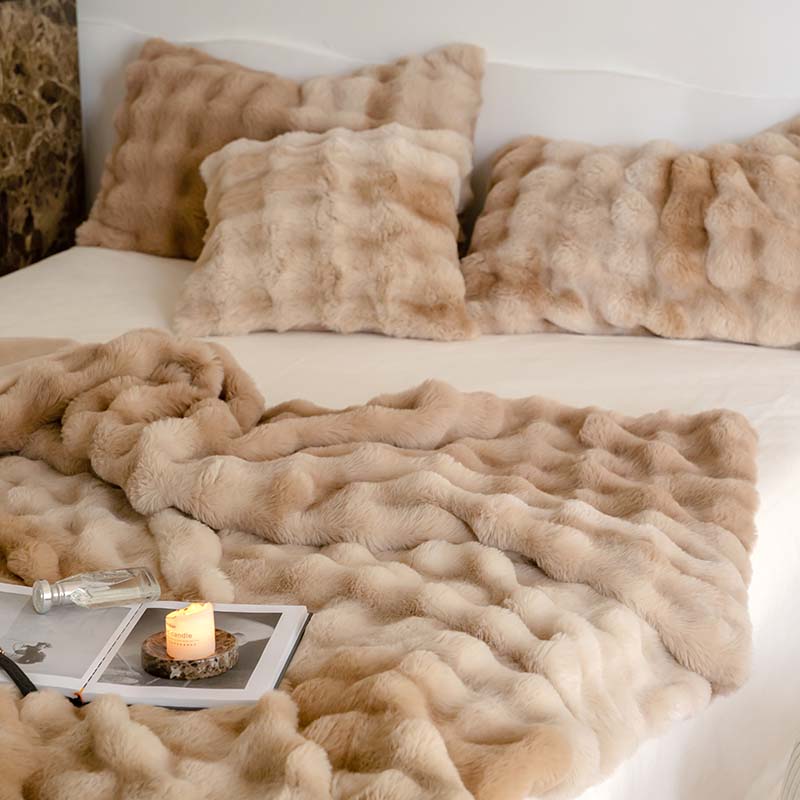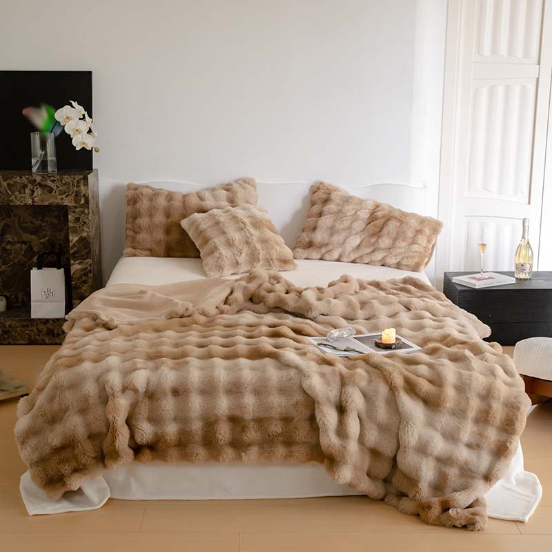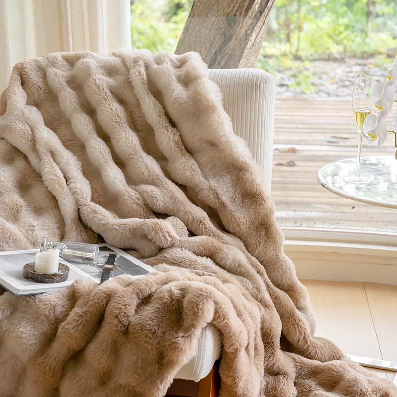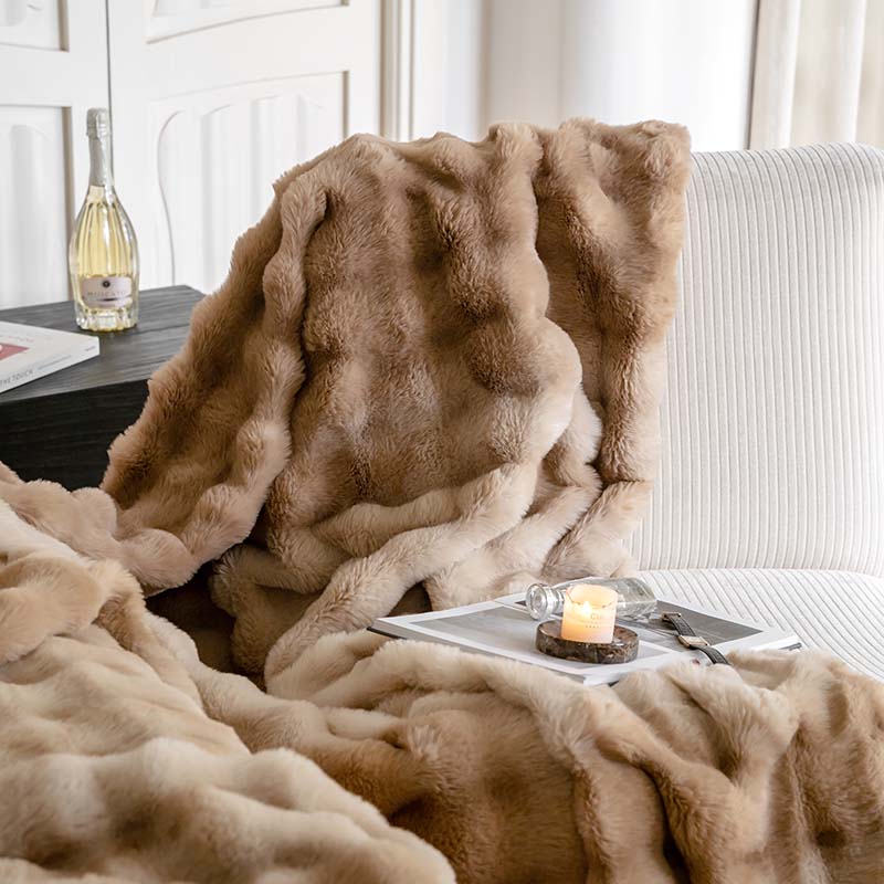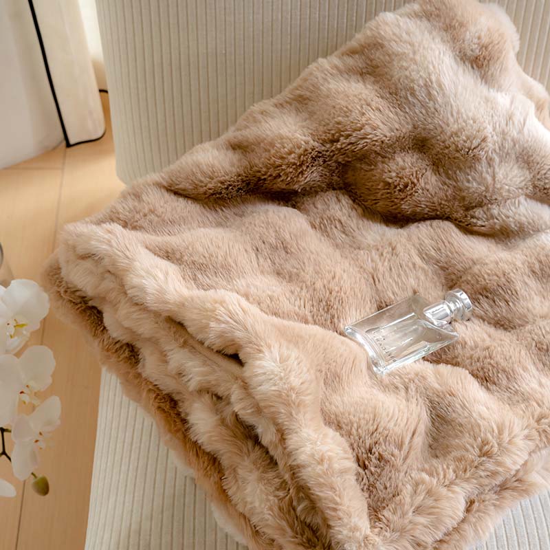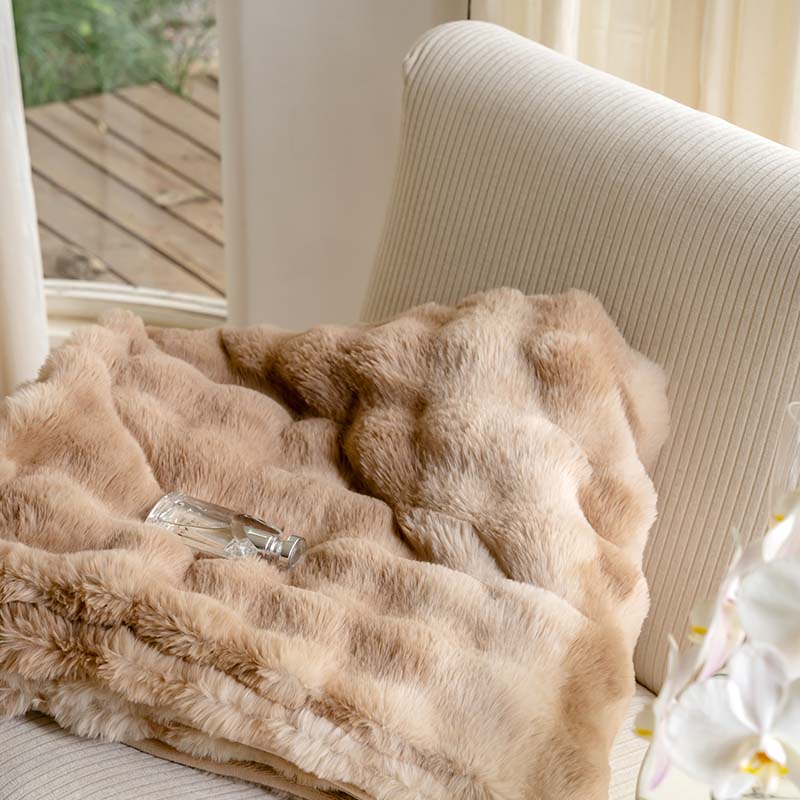 宜代光年 2023新款托斯卡纳仿兔绒毛毯-炫彩 炫彩-咖