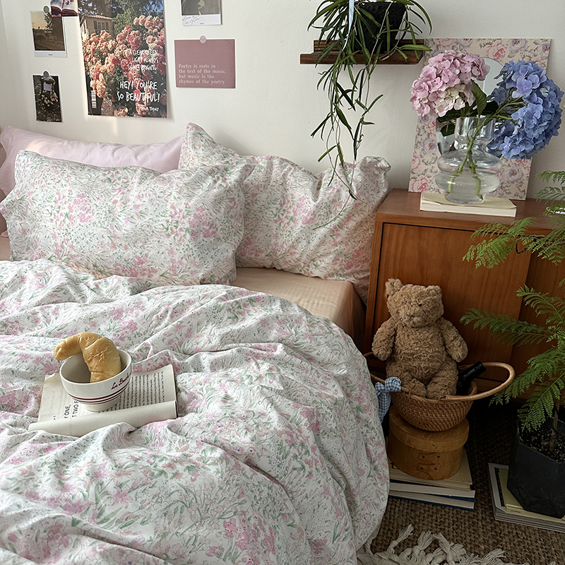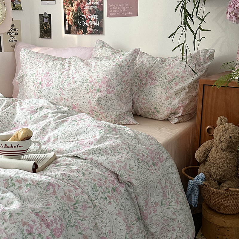 当前位置: 91家纺网 > 商品网购 > 床品套件 > 四件套 > 全棉普通四件套 > 恋恋三季 2024新款40支13372轻法式小清新田园全棉印花四件套-春日信 春日信(风格二)