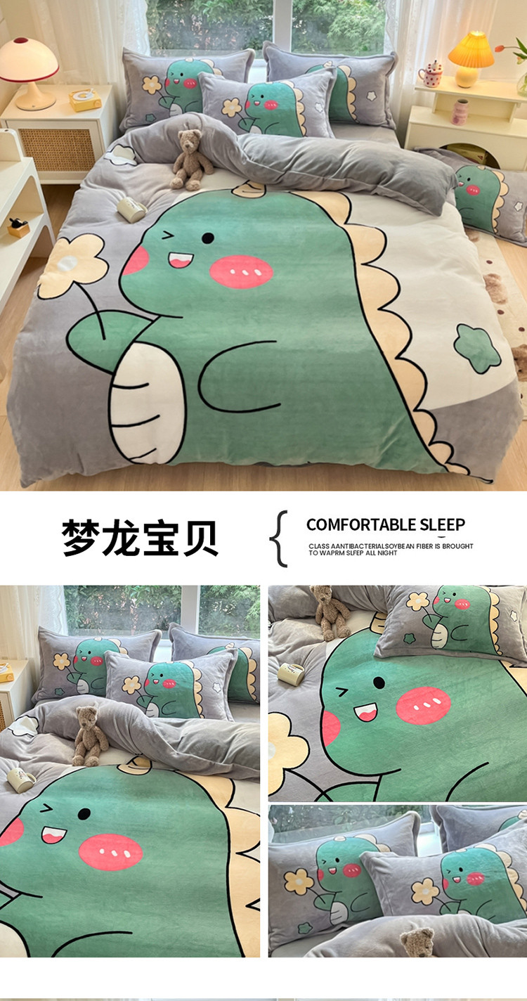 商品名称:喜梦缘 2025新款大版卡通牛奶绒印花四件套 梦龙宝贝