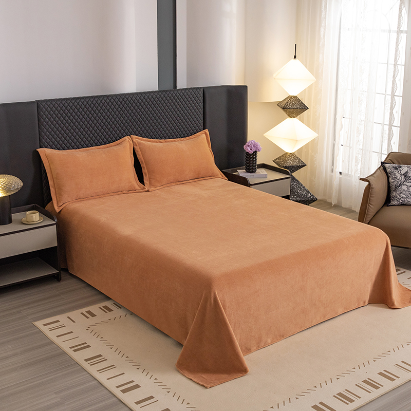 商品名称:馨乐家纺 2025新款加厚保暖透气纯色牛奶绒床单 橙色