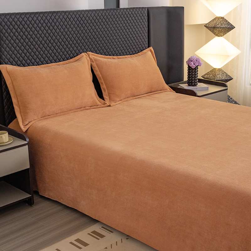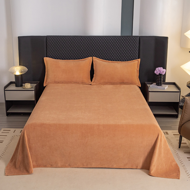 馨乐家纺 2025新款加厚保暖透气纯色牛奶绒床单 橙色