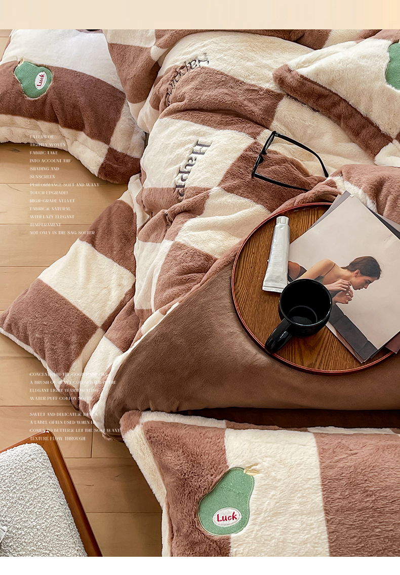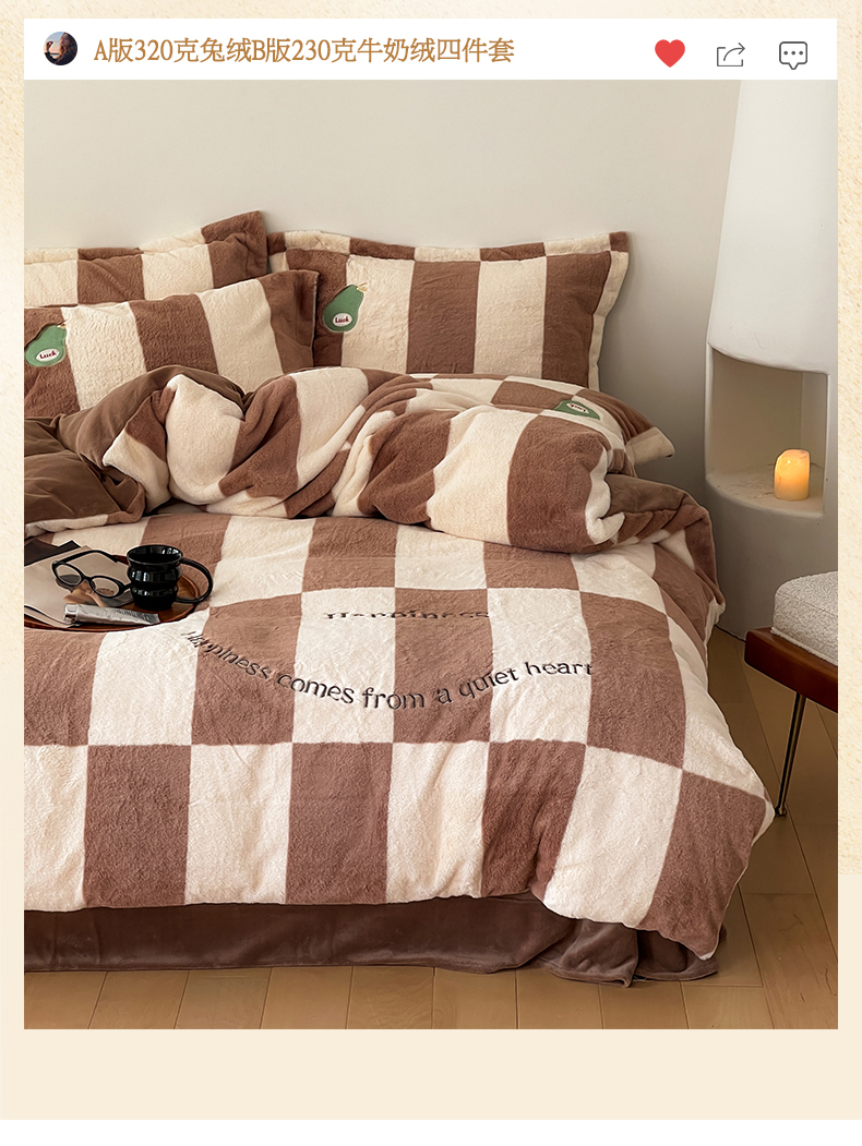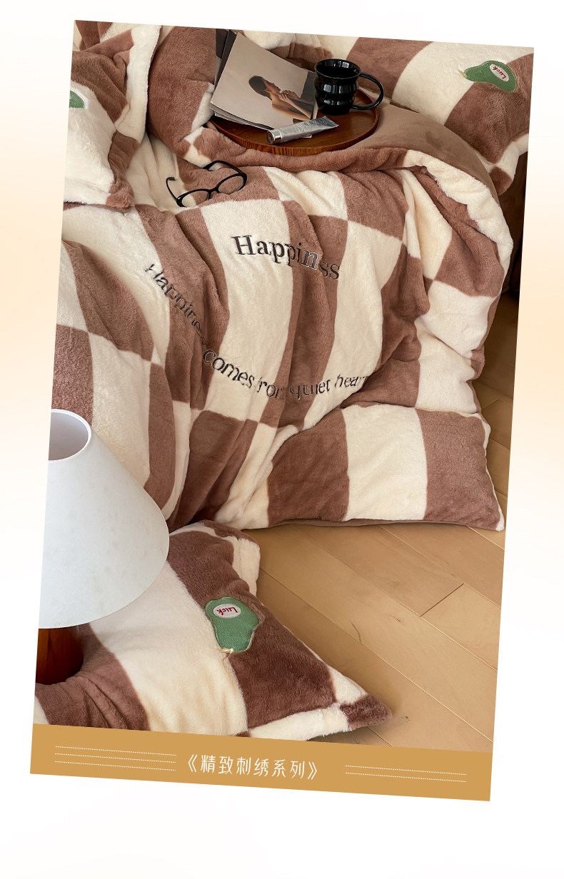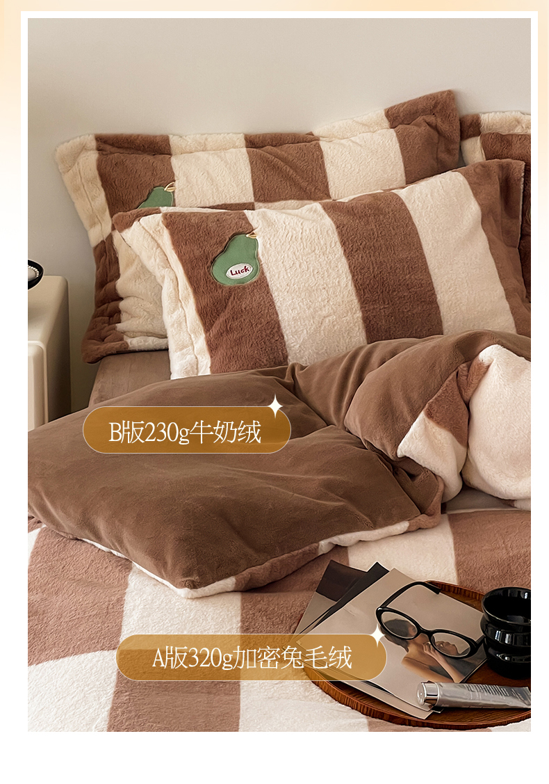 商品名称:名品优仓 2024新款兔毛绒牛奶绒绣花四件套 兔绒伽罗-贵族咖