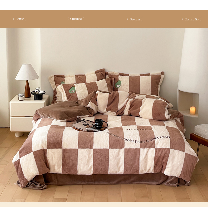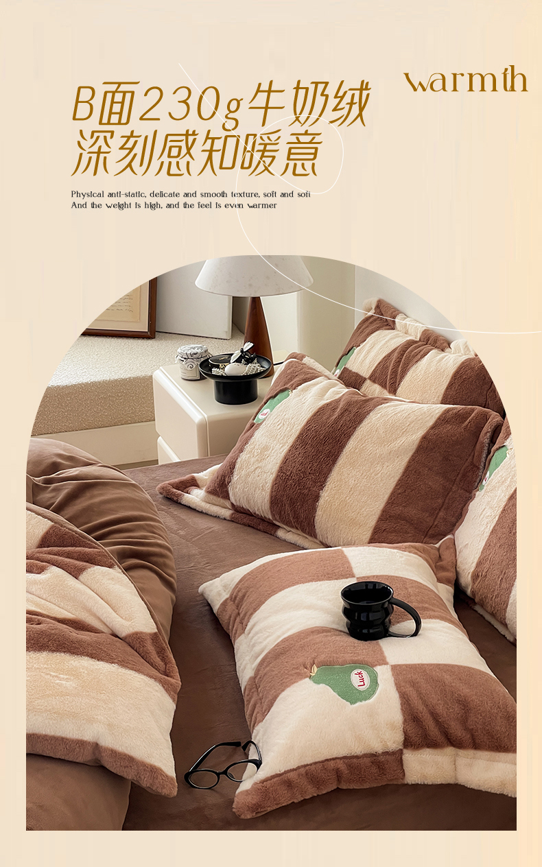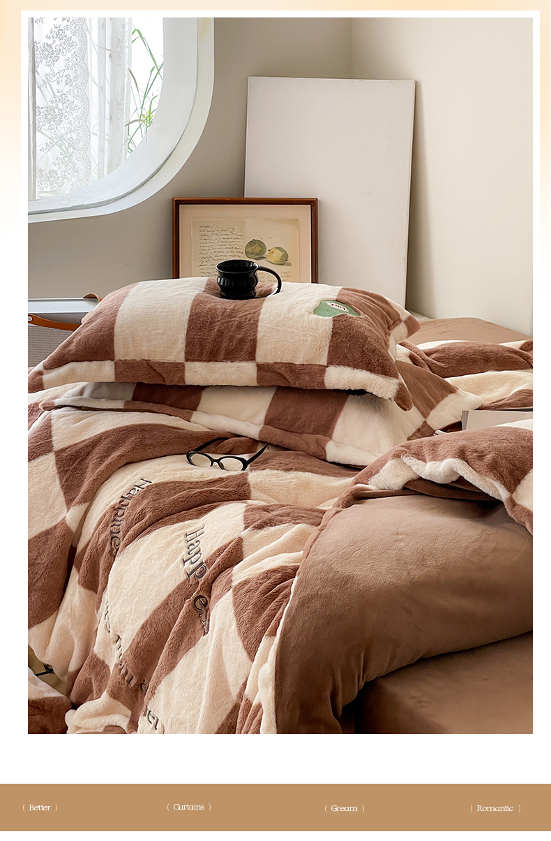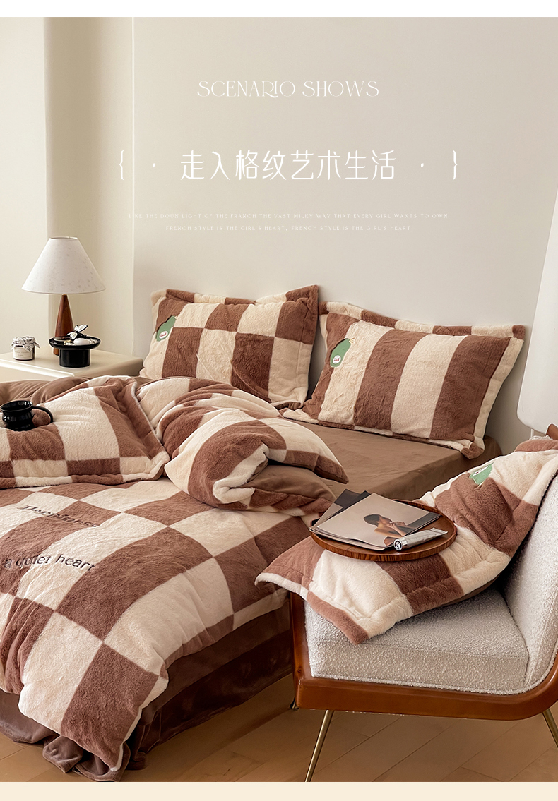 商品名称:名品优仓 2024新款兔毛绒牛奶绒绣花四件套 兔绒伽罗-贵族咖