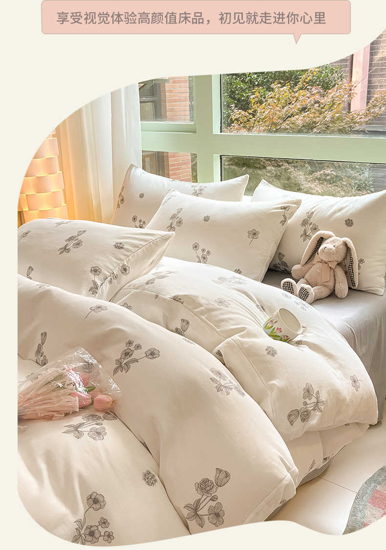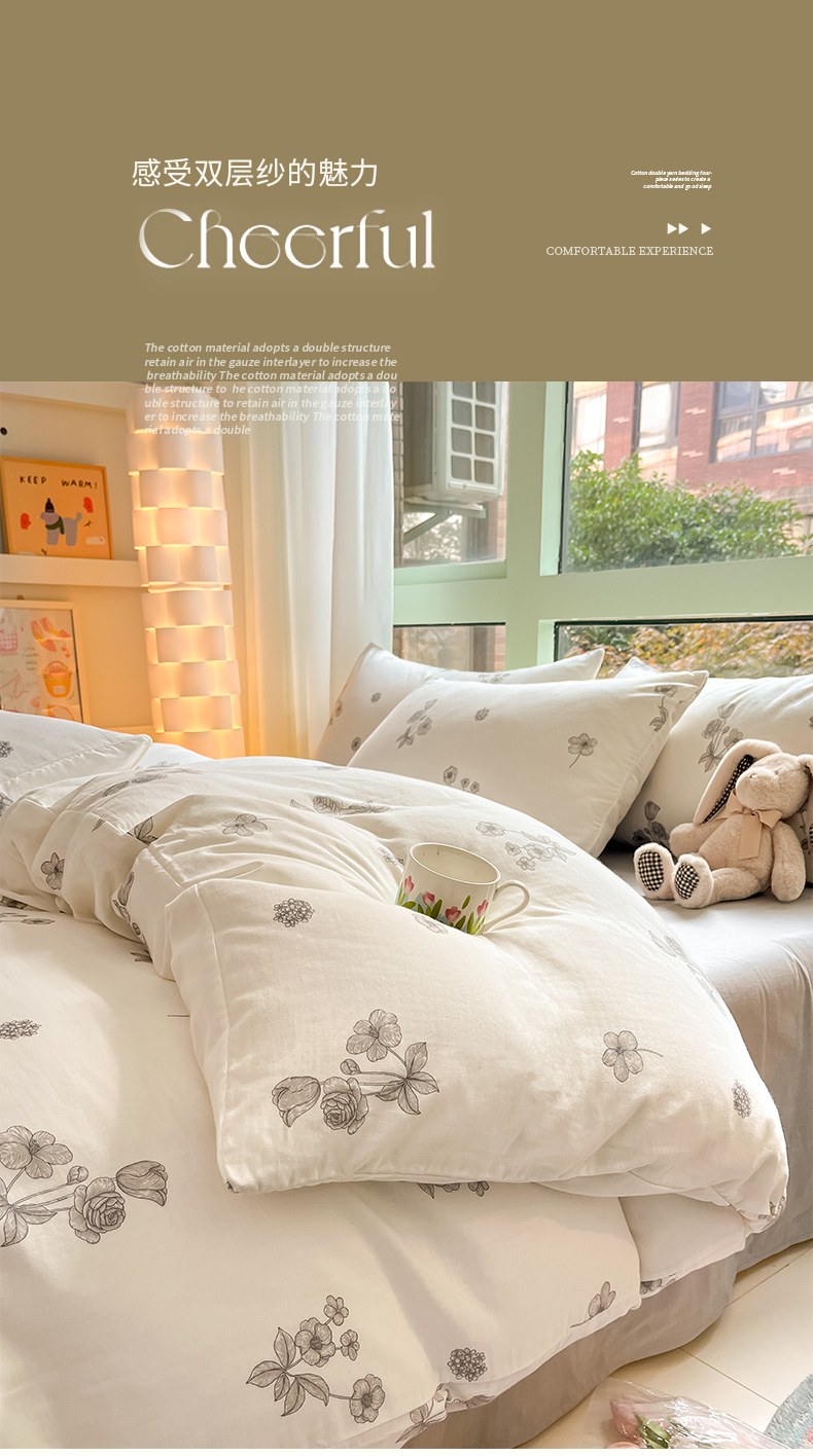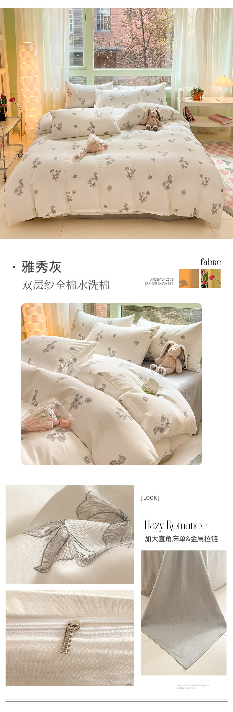 商品名称:ab家纺 2024新款全棉双层纱印花四件套 雅秀灰