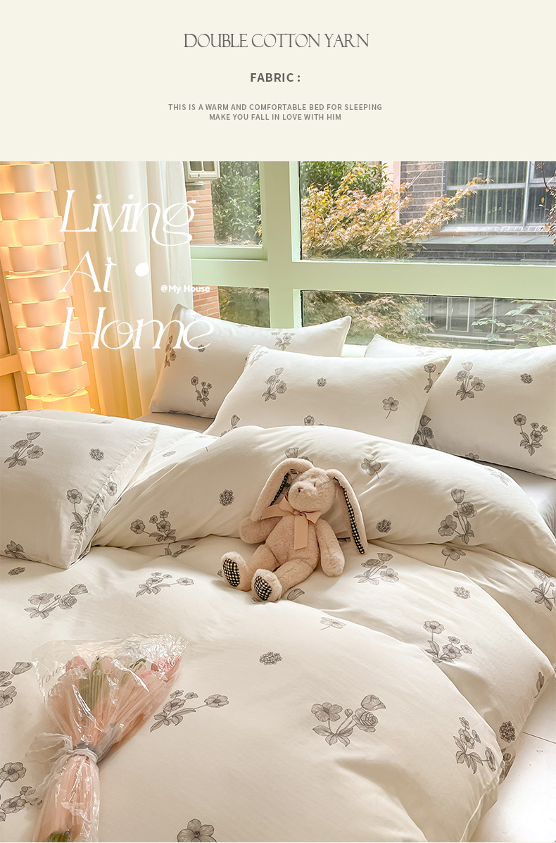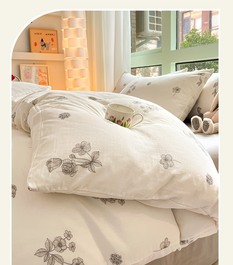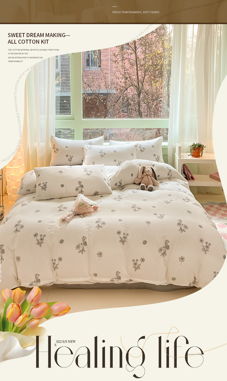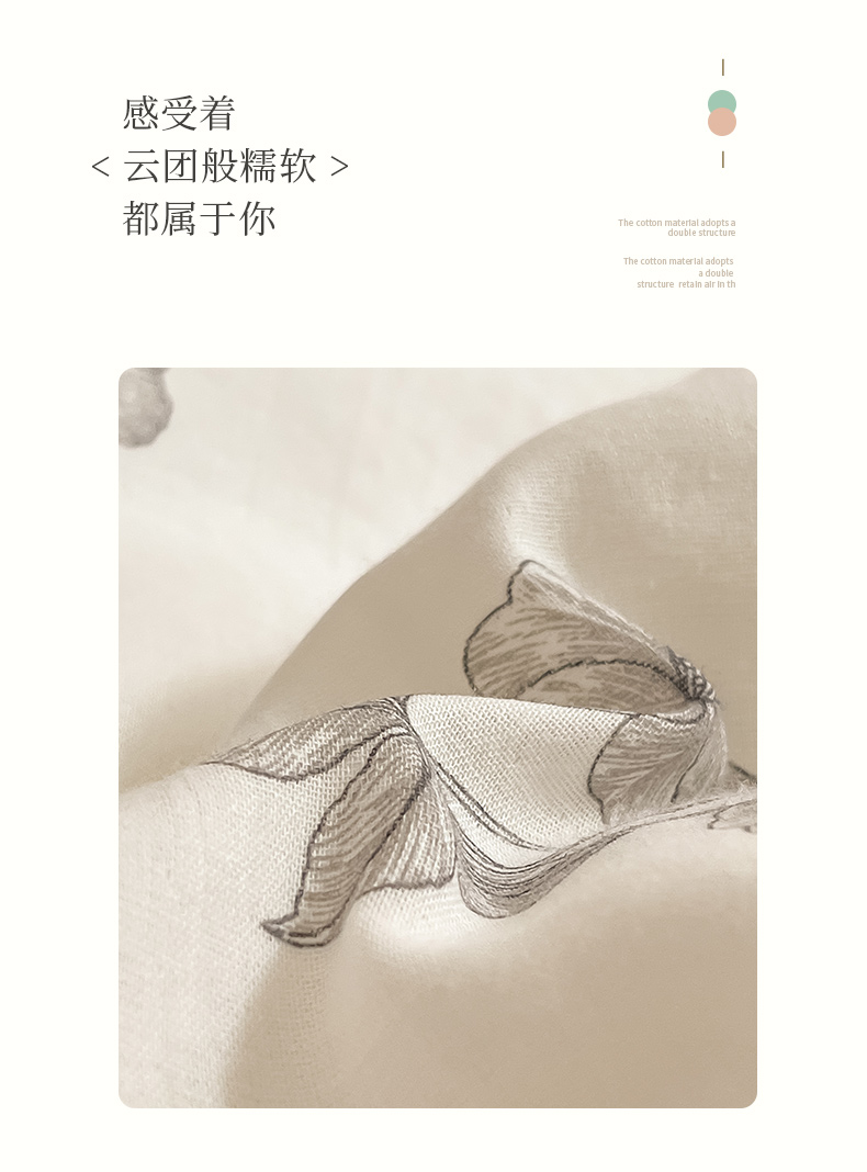 商品名称:ab家纺 2024新款全棉双层纱印花四件套 雅秀灰