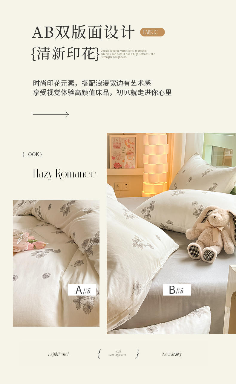 ab家纺 2024新款全棉双层纱印花四件套 雅秀灰