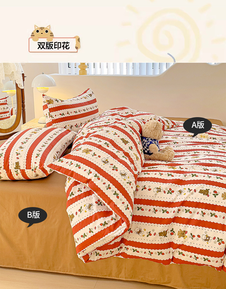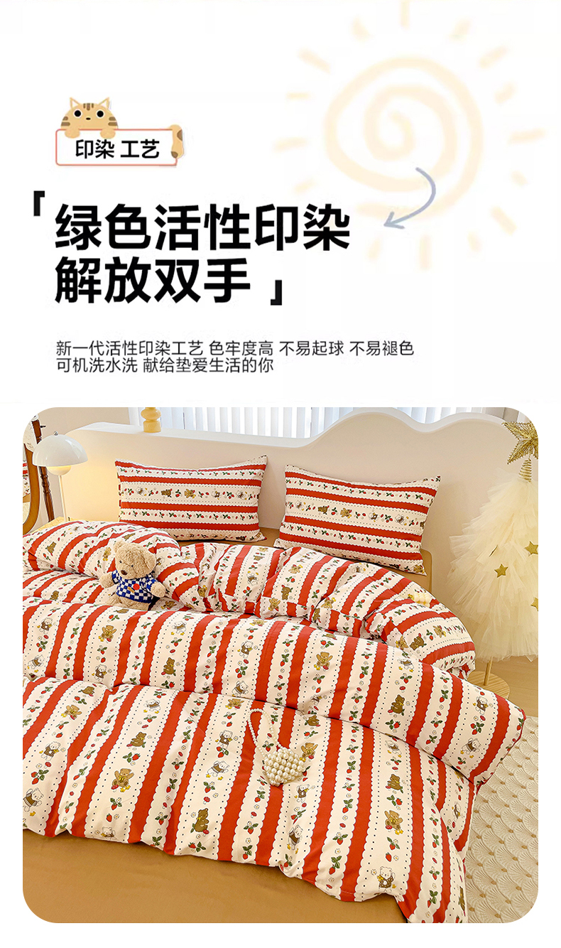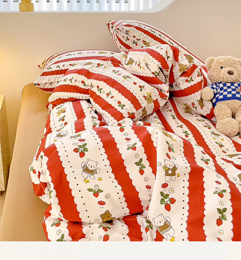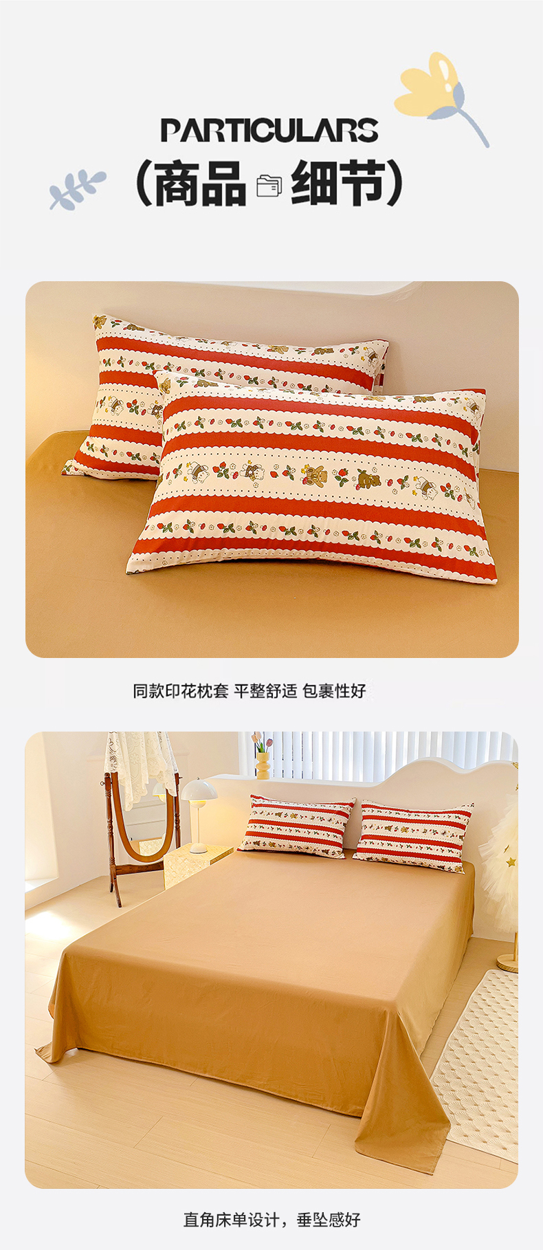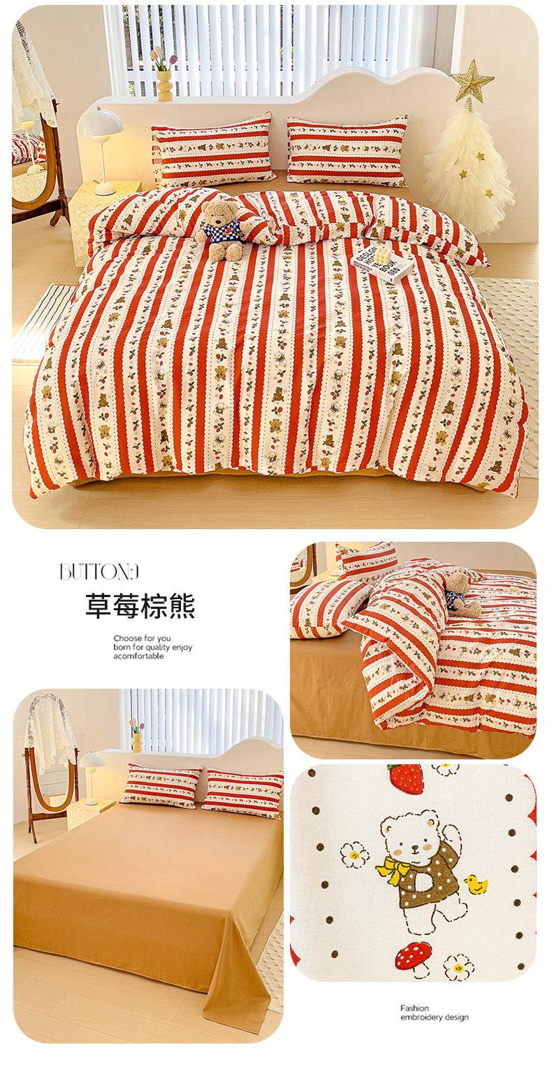 珺柔家纺 2024新款40支13070全棉印花四件套 草莓棕熊