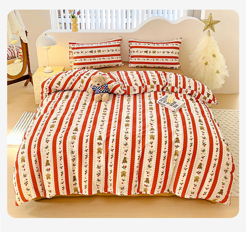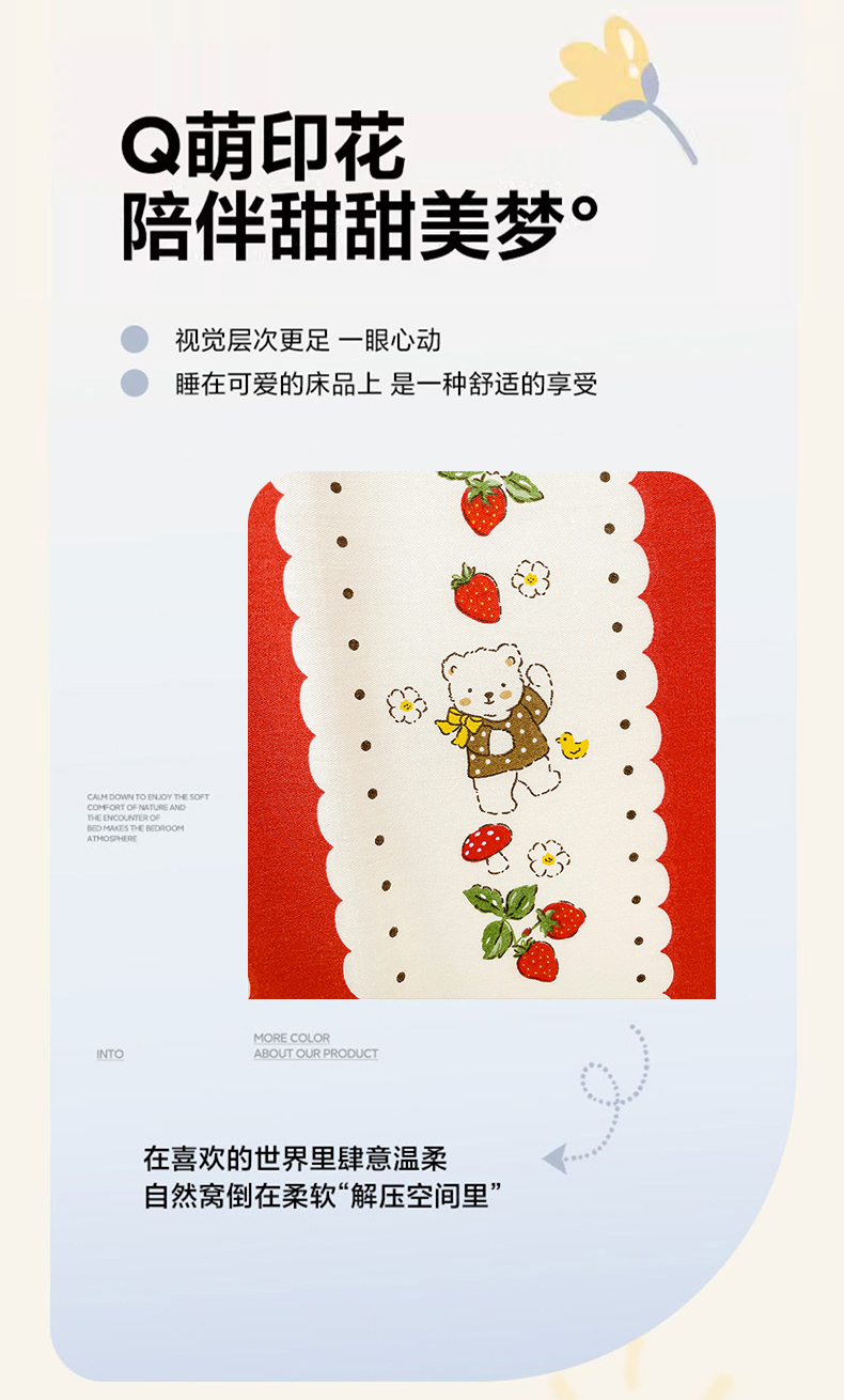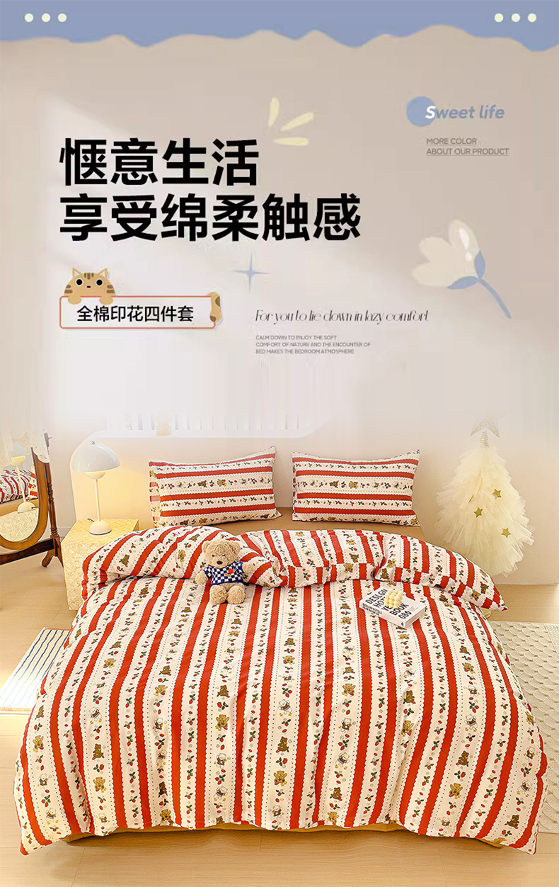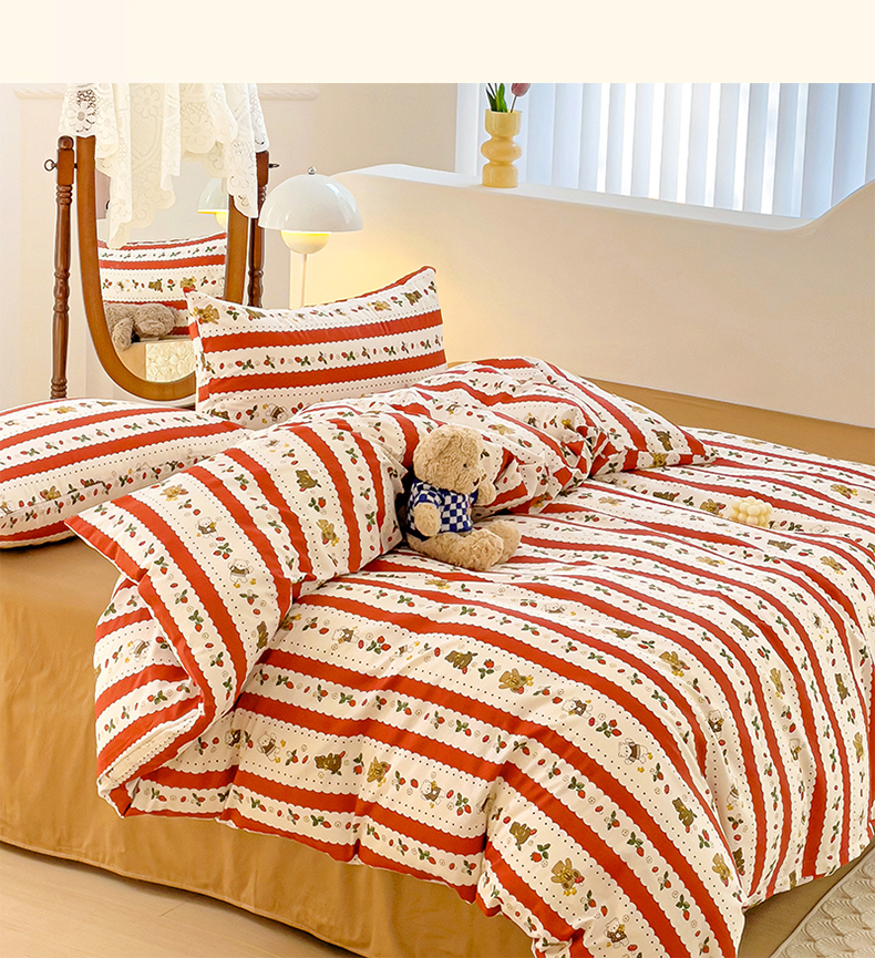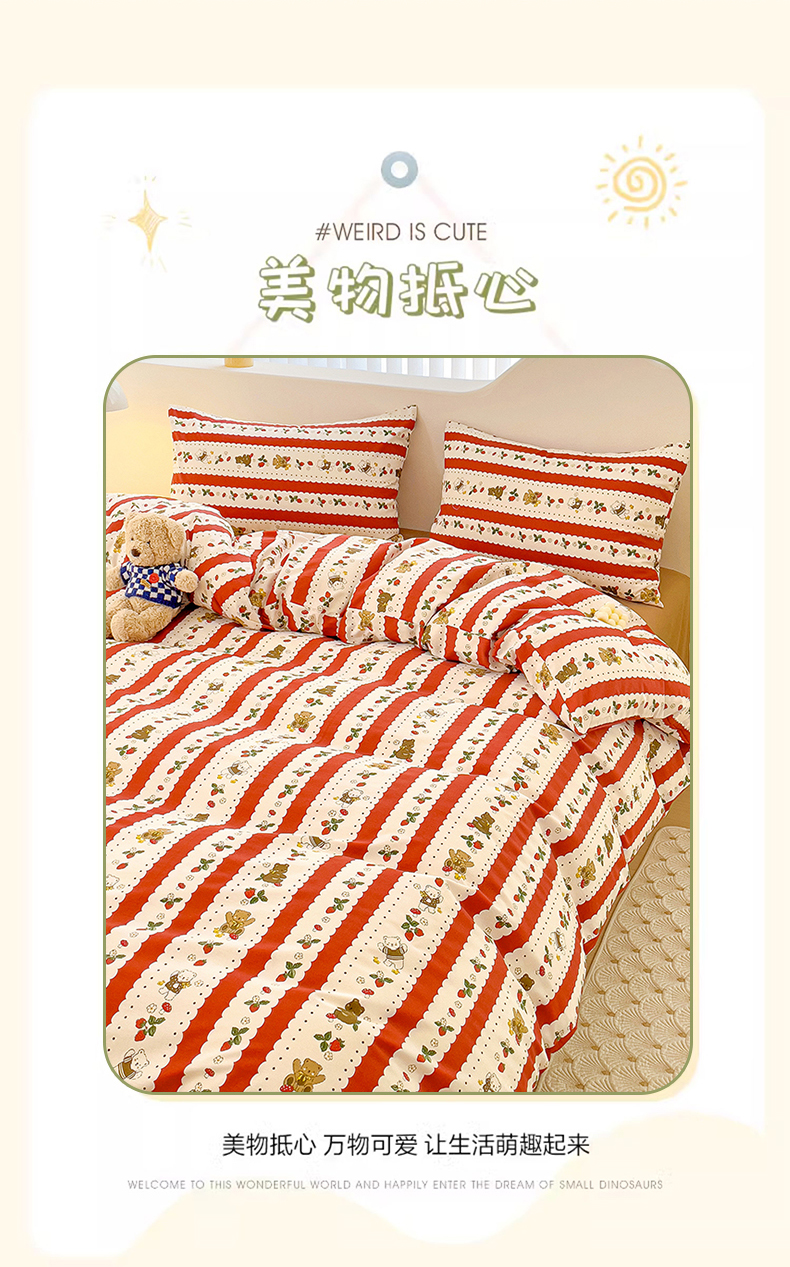 珺柔家纺 2024新款40支13070全棉印花四件套 草莓棕熊