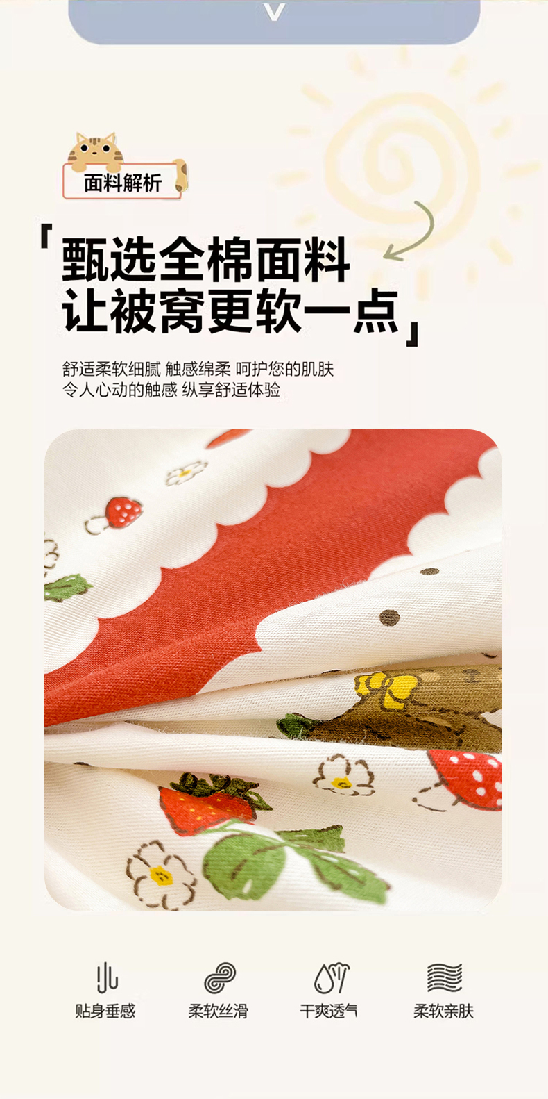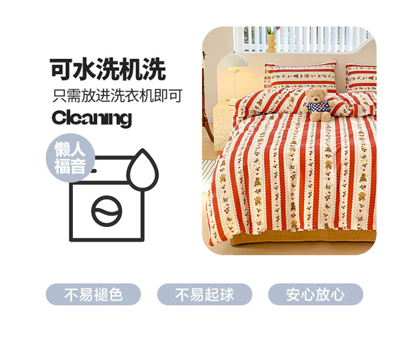 商品名称:珺柔家纺 2024新款40支13070全棉印花四件套 草莓棕熊