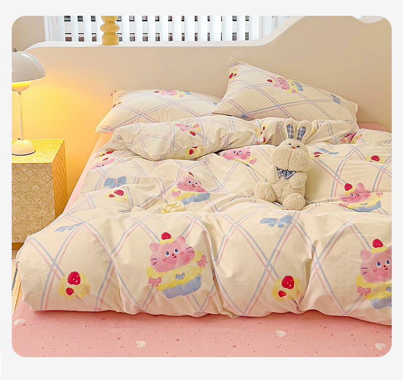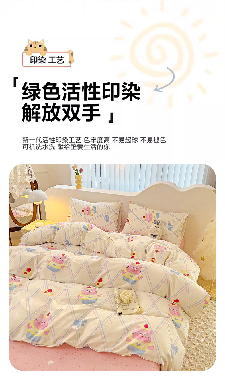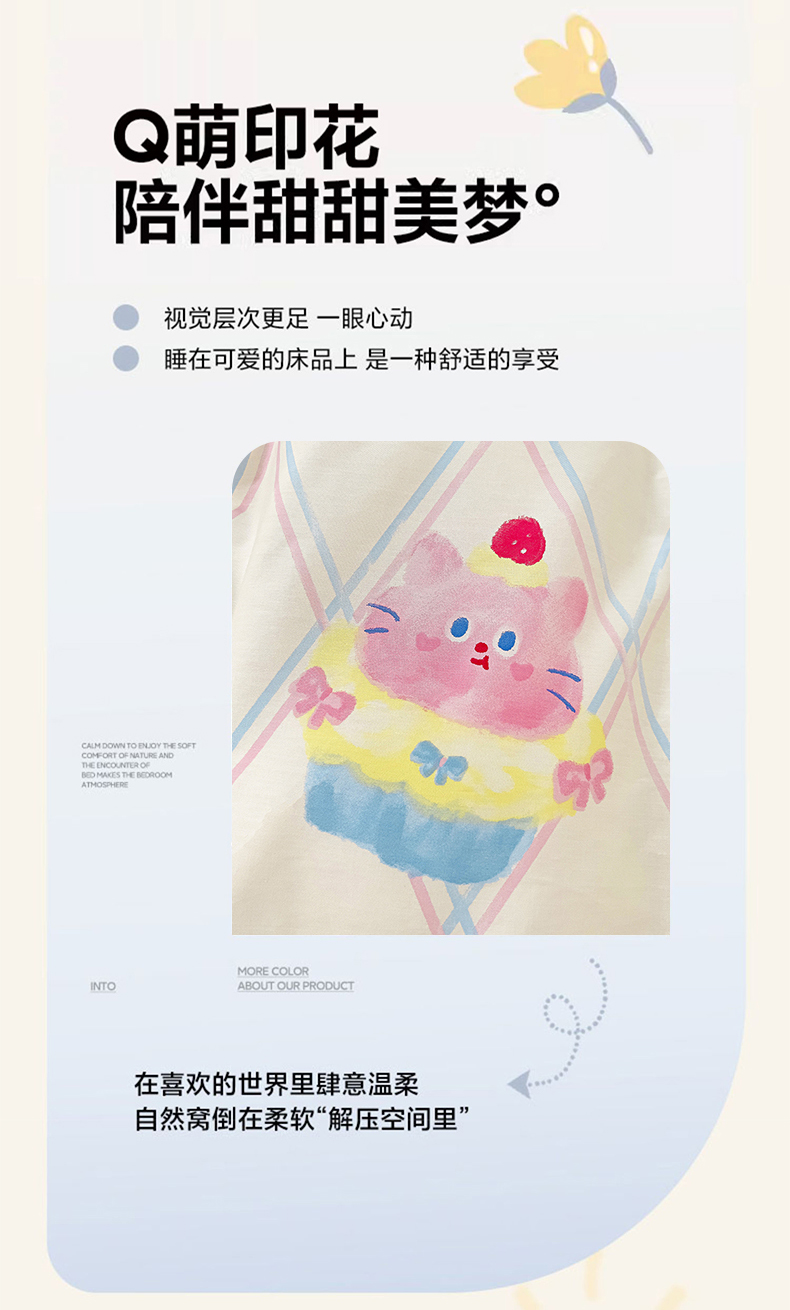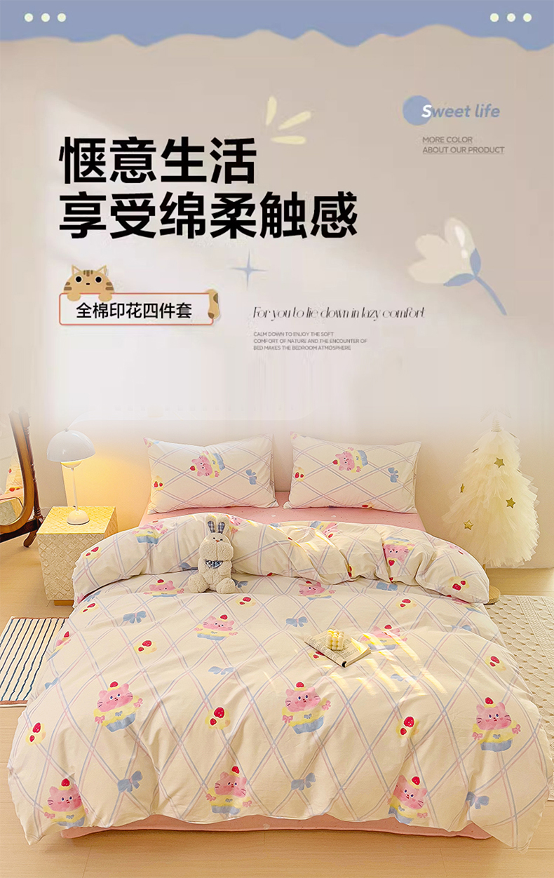 商品名称:珺柔家纺 2024新款40支13070全棉印花四件套 甜心猫
