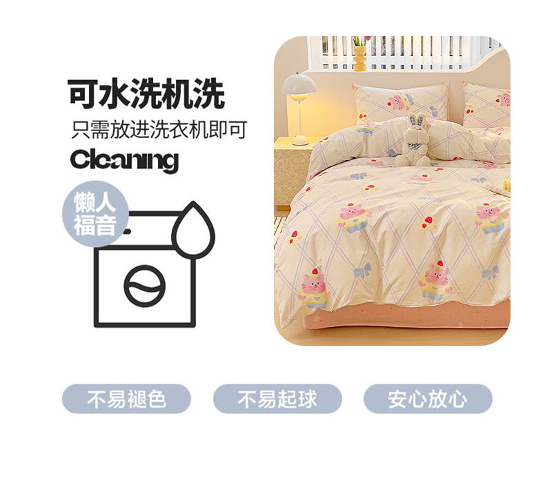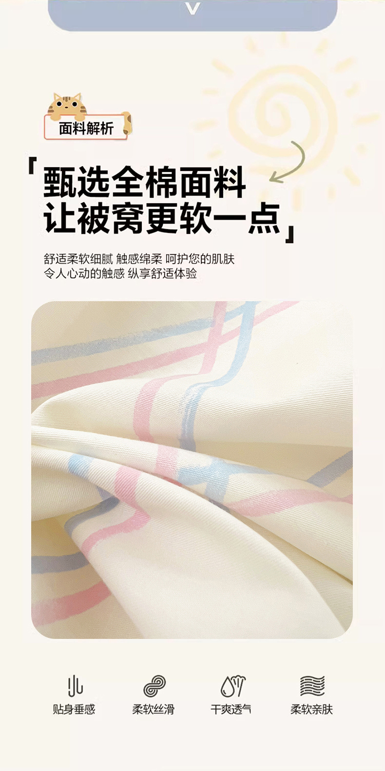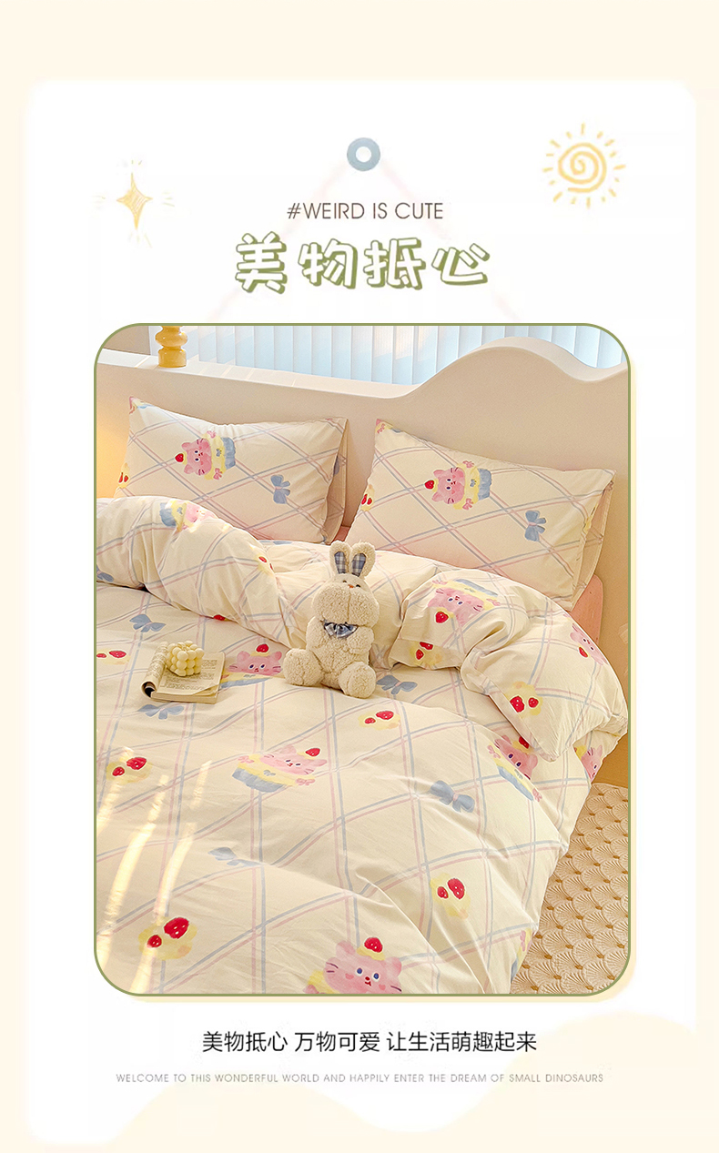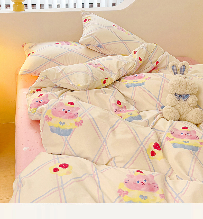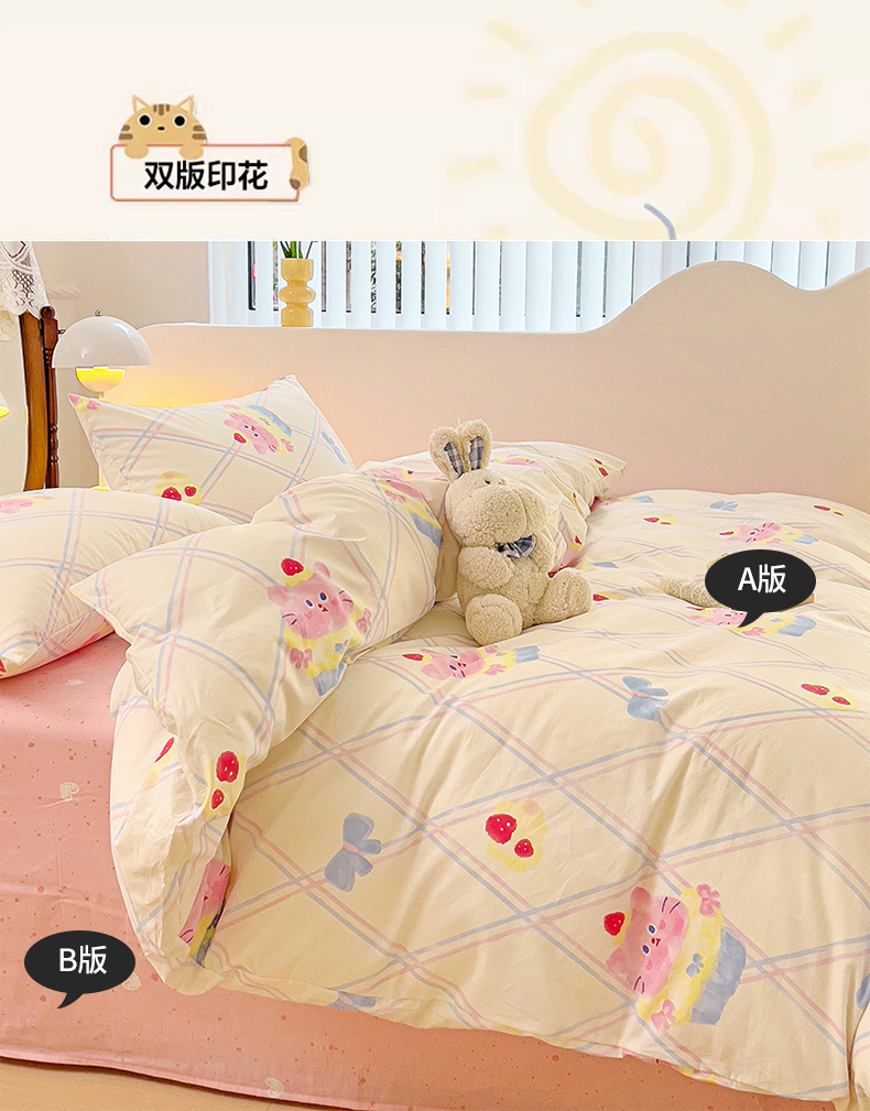 商品名称:珺柔家纺 2024新款40支13070全棉印花四件套 甜心猫
