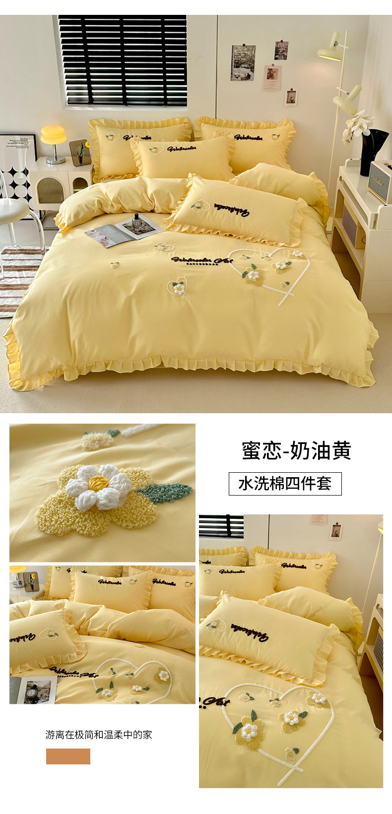 金米诺 2024新款水洗磨毛花边四件套夏被四件套-蜜恋 蜜恋-奶油黄