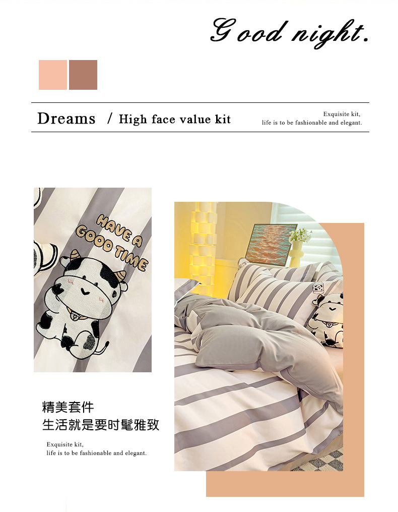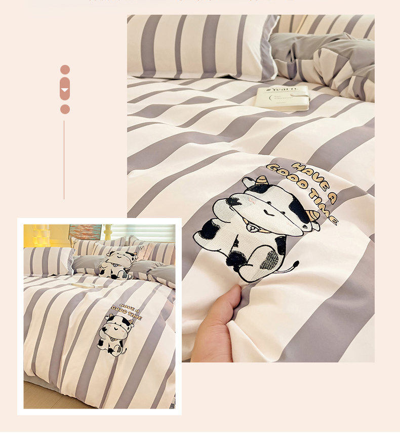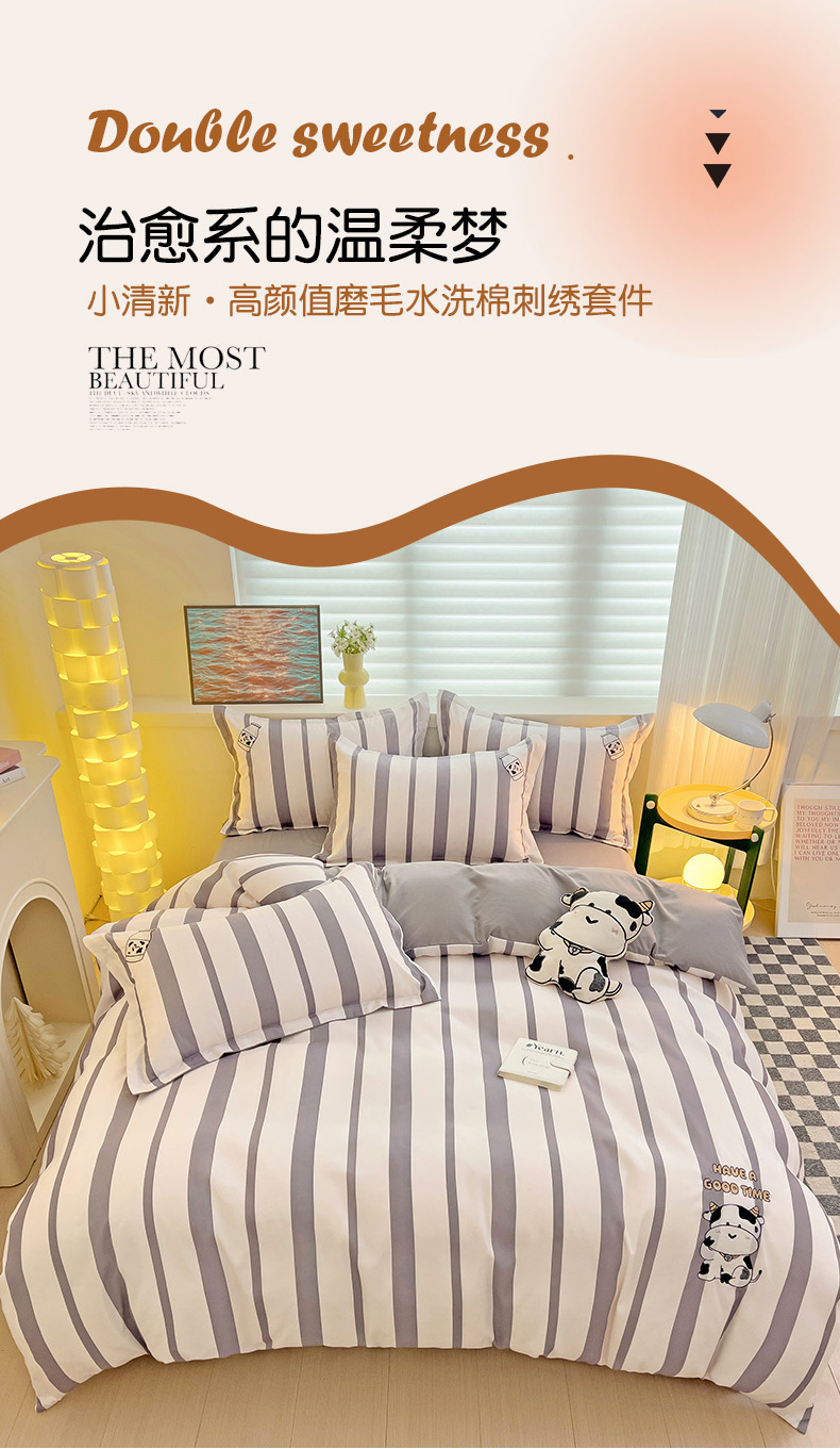 当前位置: 91家纺网 > 商品网购 > 床品套件 > 四件套 > 普通磨毛四件套 > 娜娜 2024新款磨毛水洗棉刺绣四件套 牛牛怪-灰