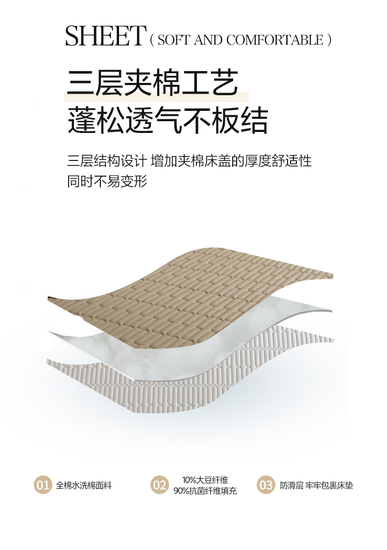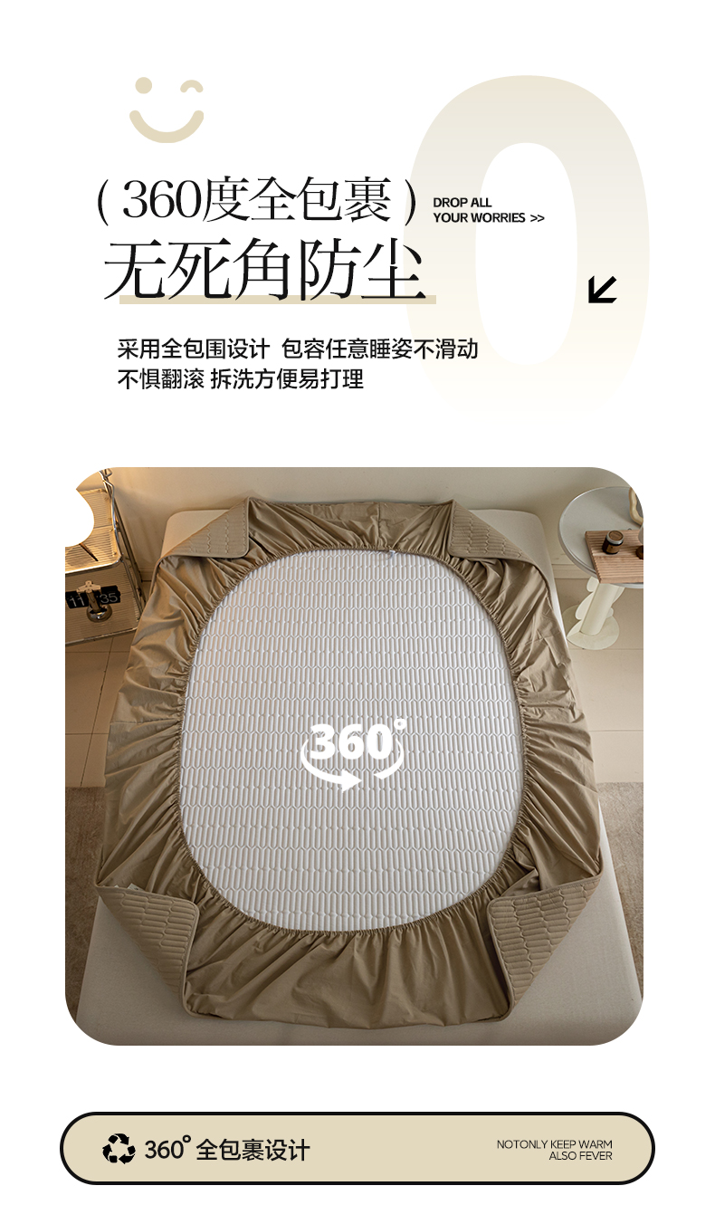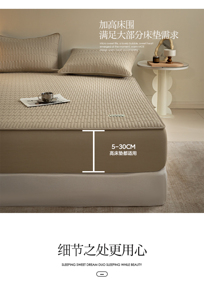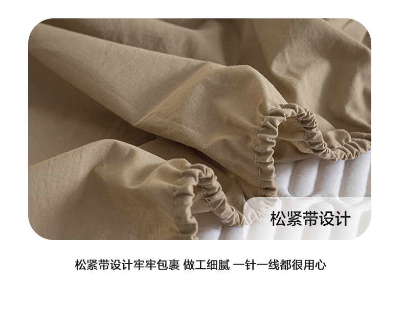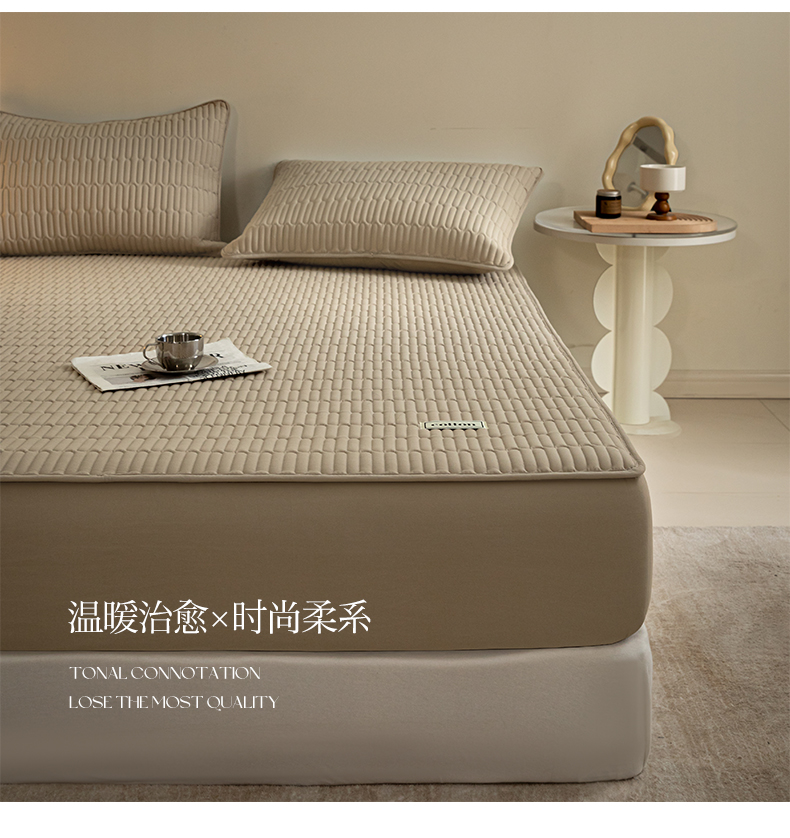 • 91家纺网 家纺一手货源 找家纺 芬晴家纺 2024新款纯棉水洗棉纯色夹棉床笠 漫游-奶茶