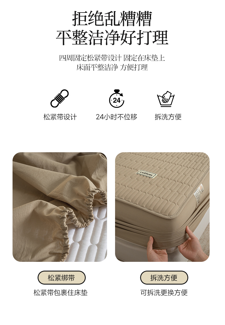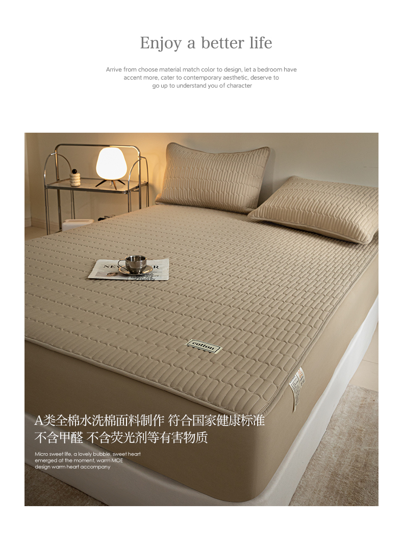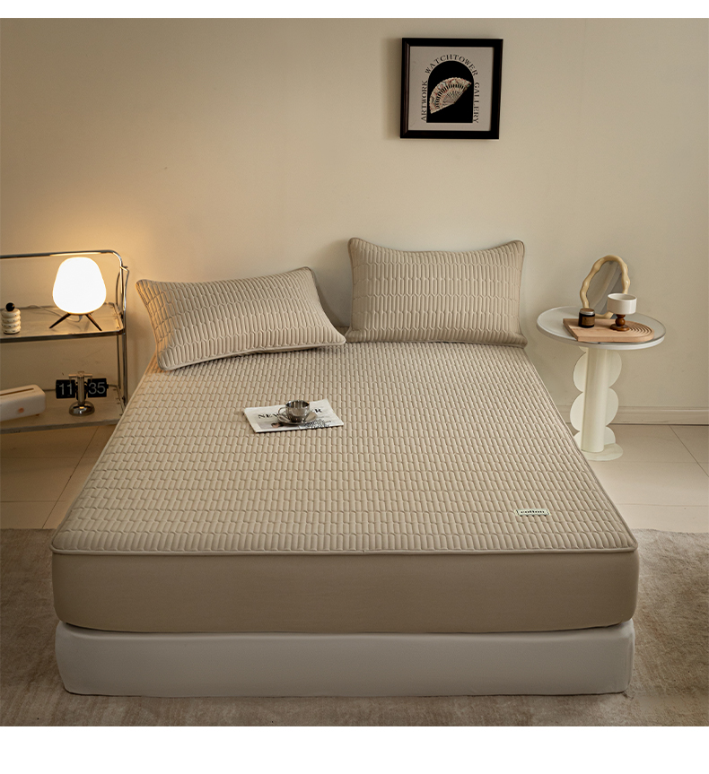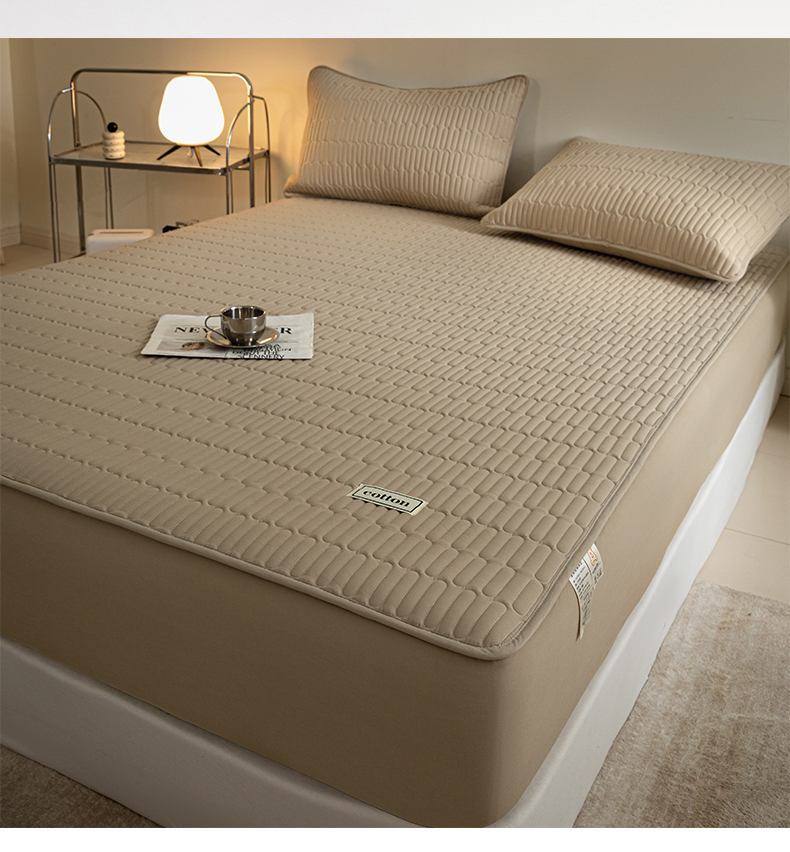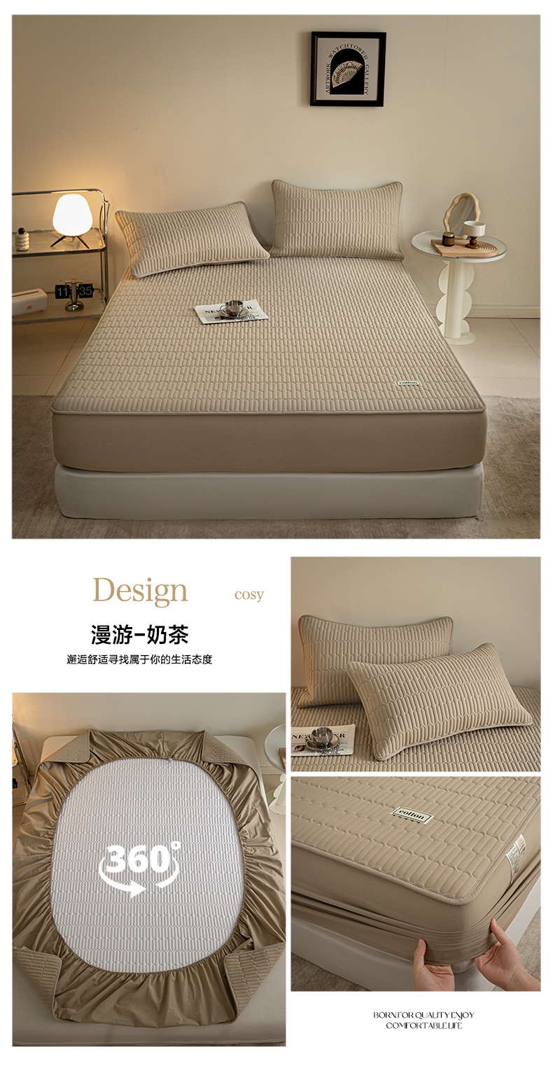 芬晴家纺 2024新款纯棉水洗棉纯色夹棉床笠 漫游-奶茶