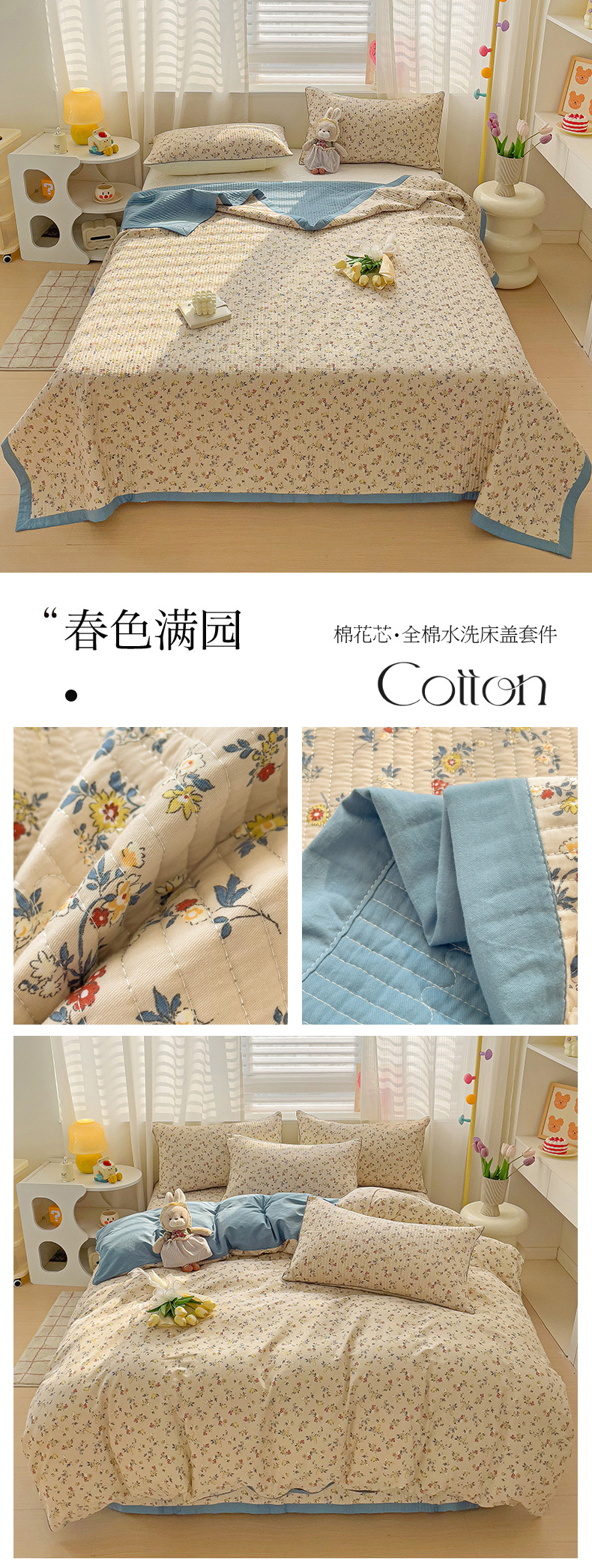 羽爱家纺 2024新款全棉水洗棉花芯床盖套件 春色满园