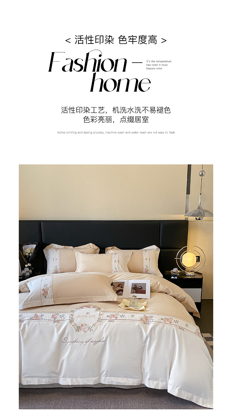 (总)理想家家纺 2025新款纯棉轻奢刺绣四件套--心愿系列场景二,心愿粉,心愿红,心愿黄,心愿蓝